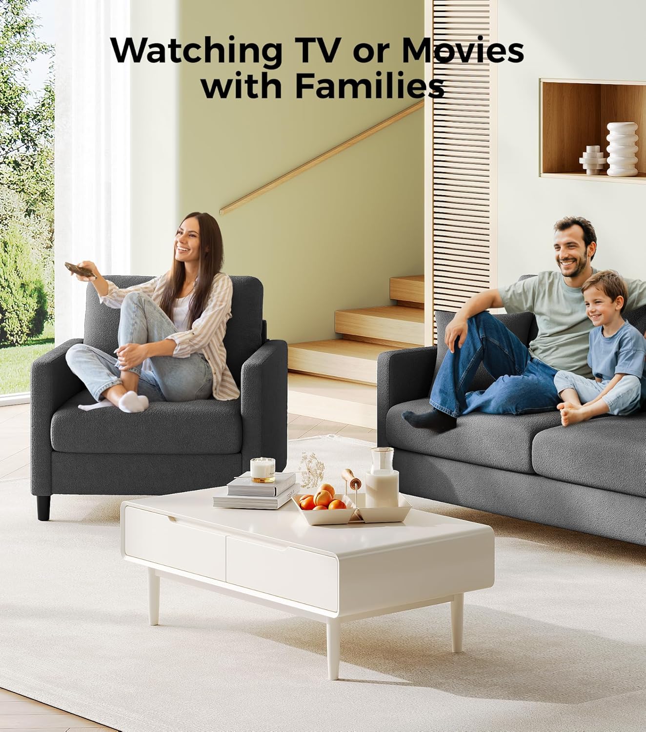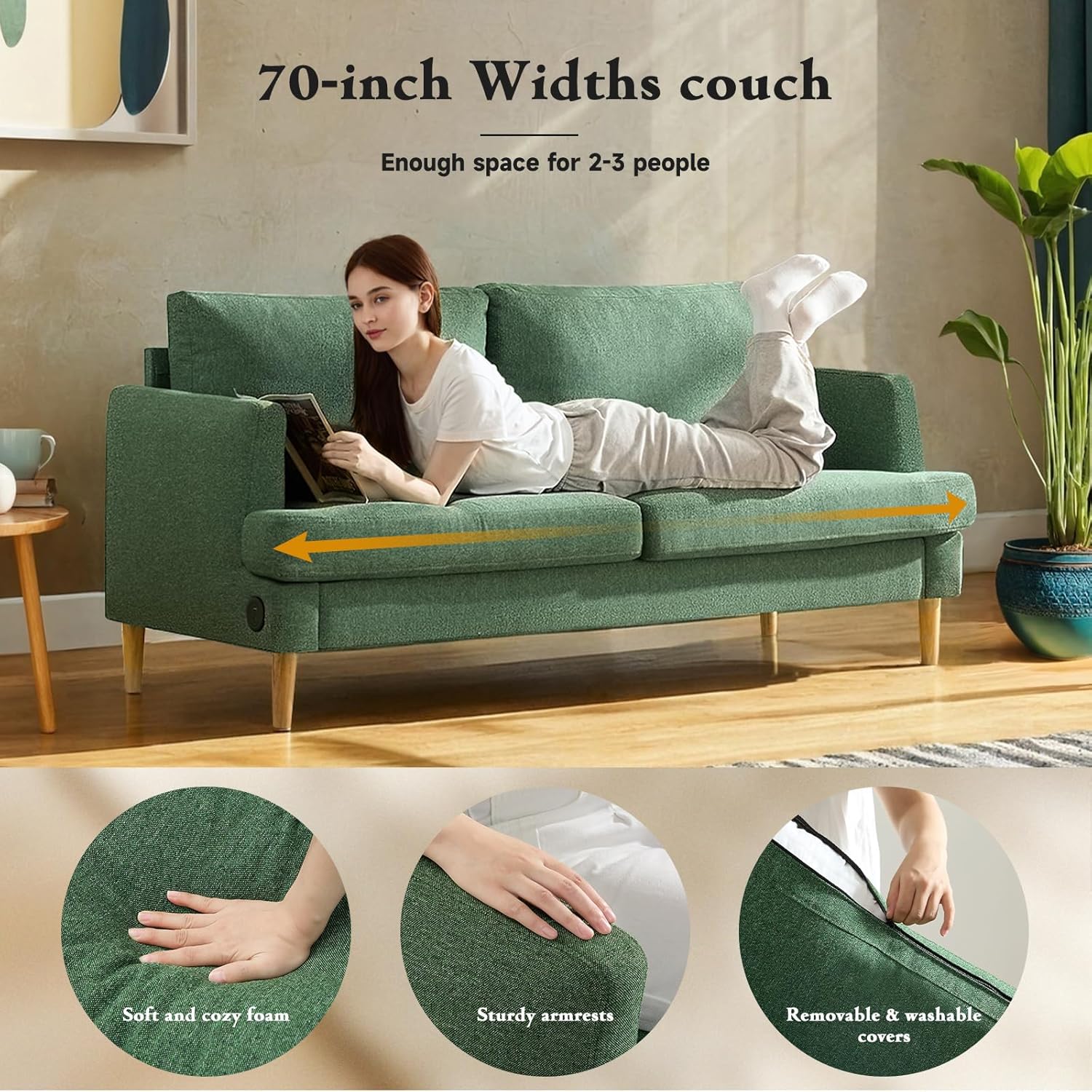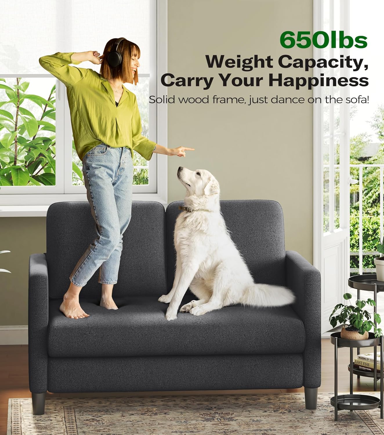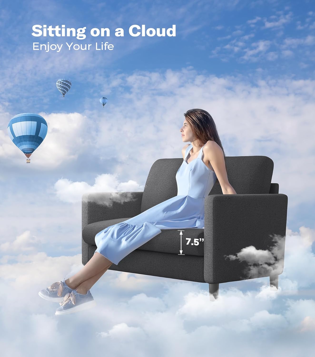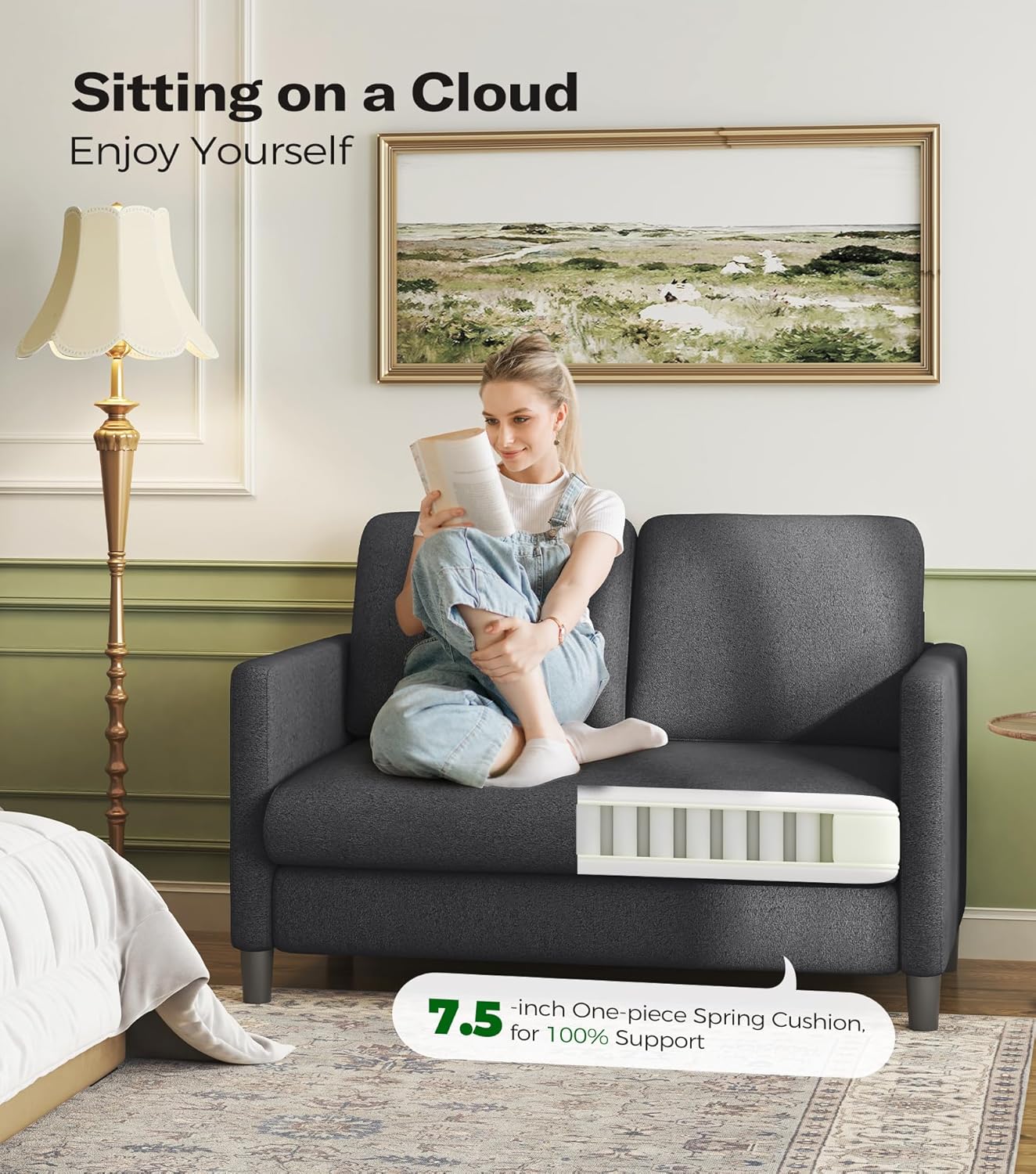 Loveseat Sofa Couch for Living Room with USB Type C Ports – Dark Gray Upholstered 70" Small Couches for Bedroom, Office or Apartment–Modern 2-Seater Deep Seating with Soft Cushions & Sturdy Frame
