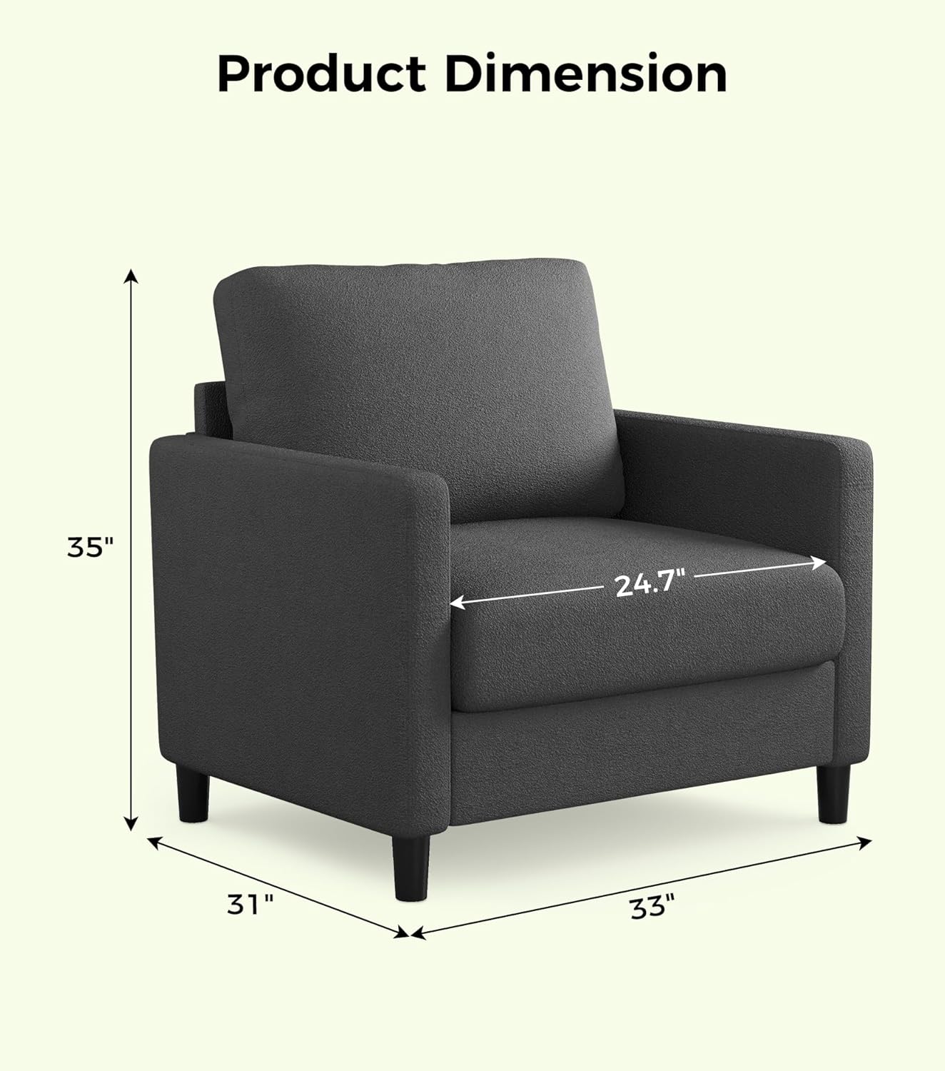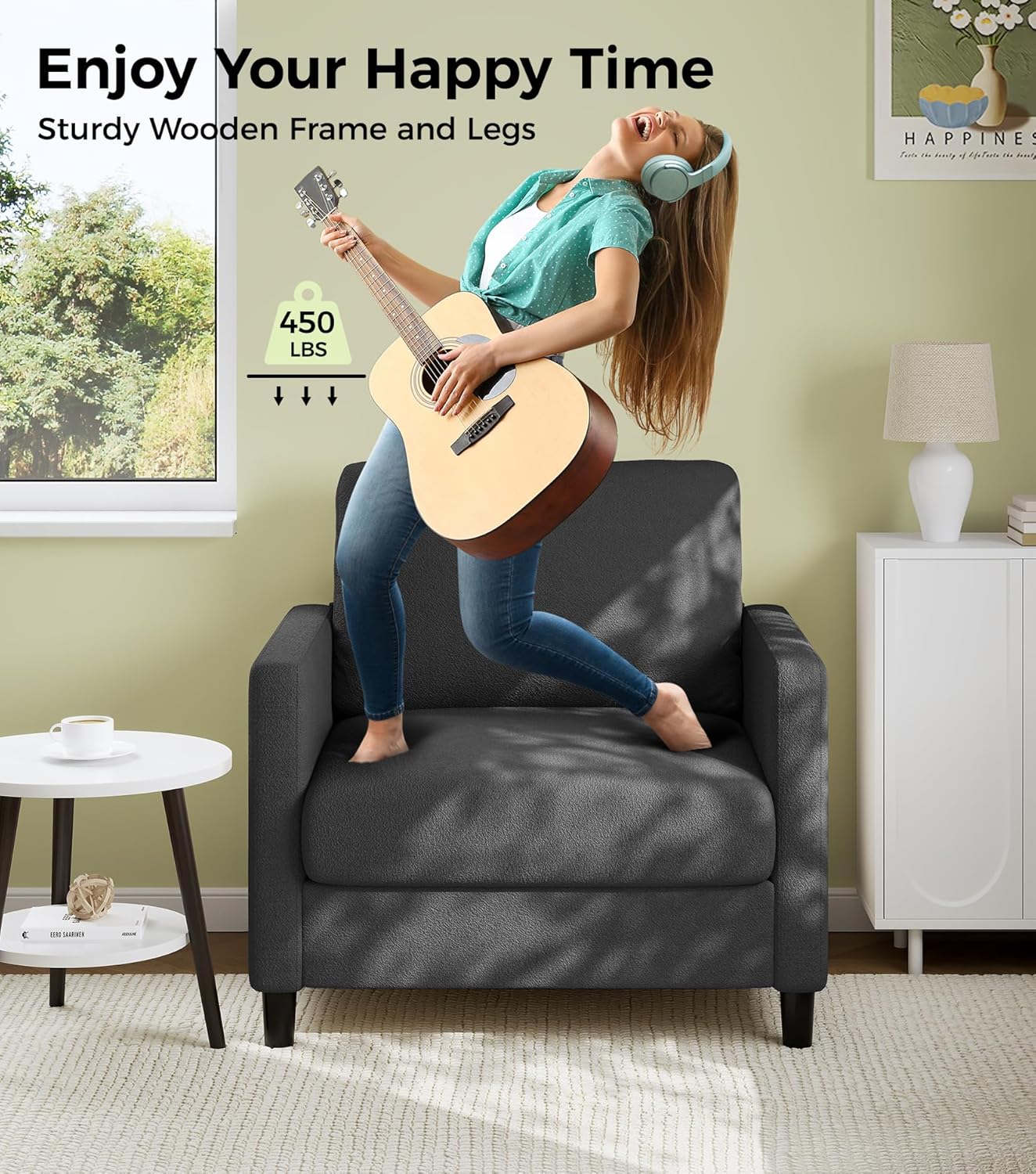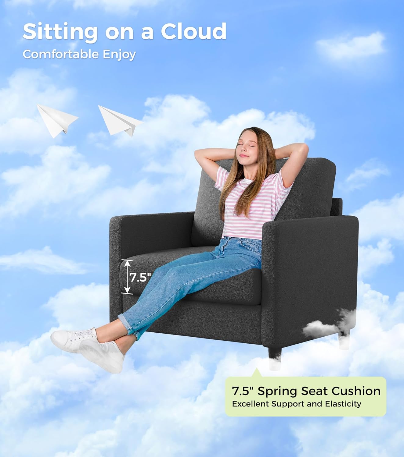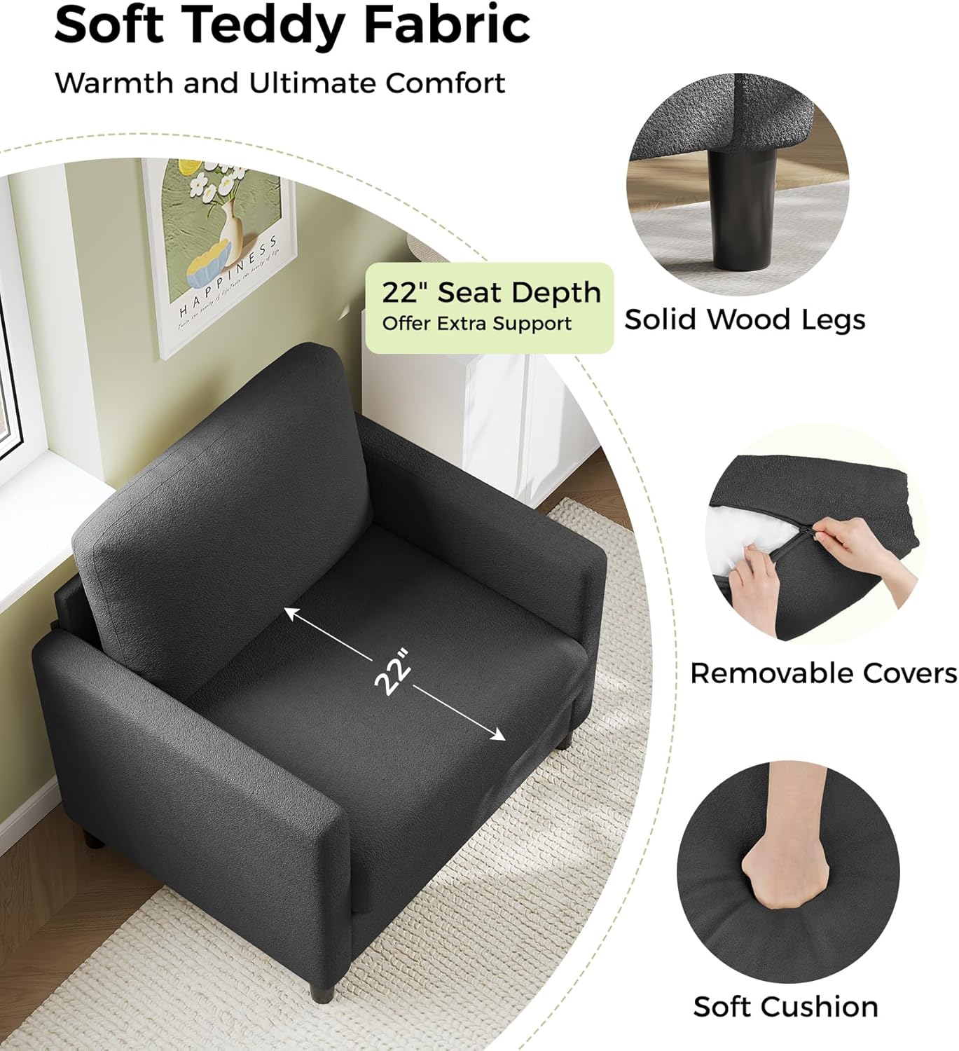 Loveseat Sofa Couch for Living Room with USB Type C Ports – Dark Gray Upholstered 70" Small Couches for Bedroom, Office or Apartment–Modern 2-Seater Deep Seating with Soft Cushions & Sturdy Frame