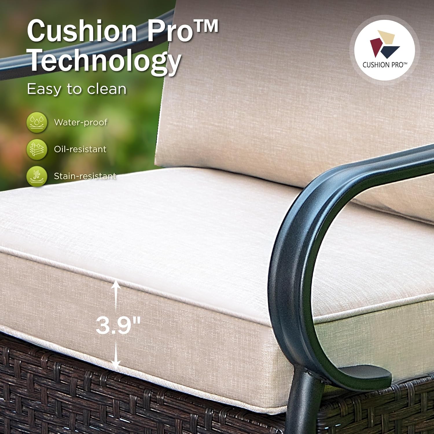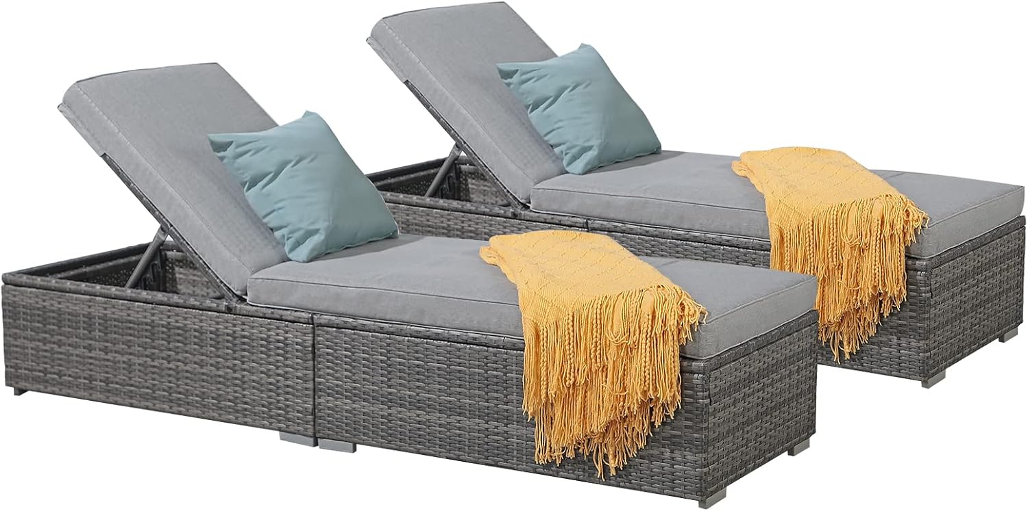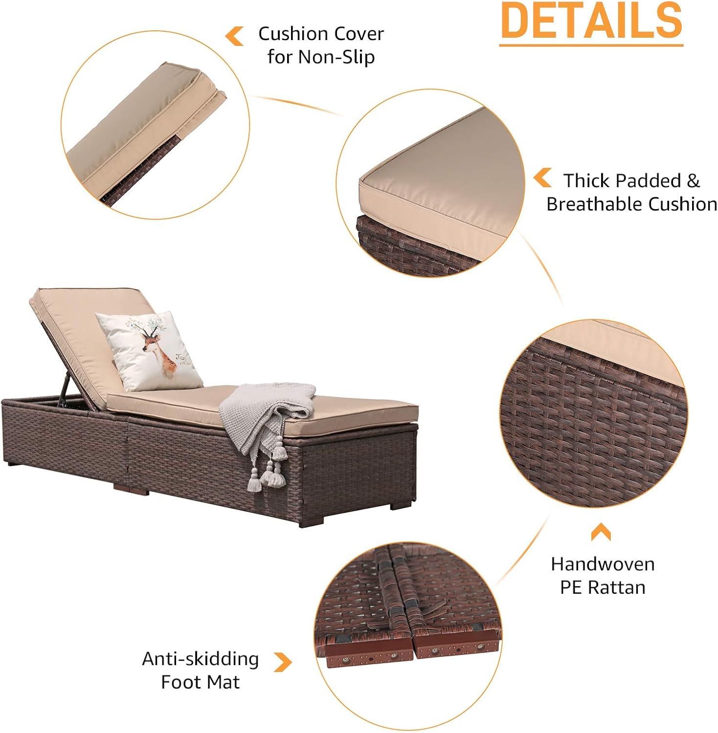 Patiorama Outdoor Patio Lounge Chair, Elegant Reclining Adjustable Pool Rattan Chaise Chair with Beige Cushion, Brown PE Wicker, Steel Frame, Set of 2