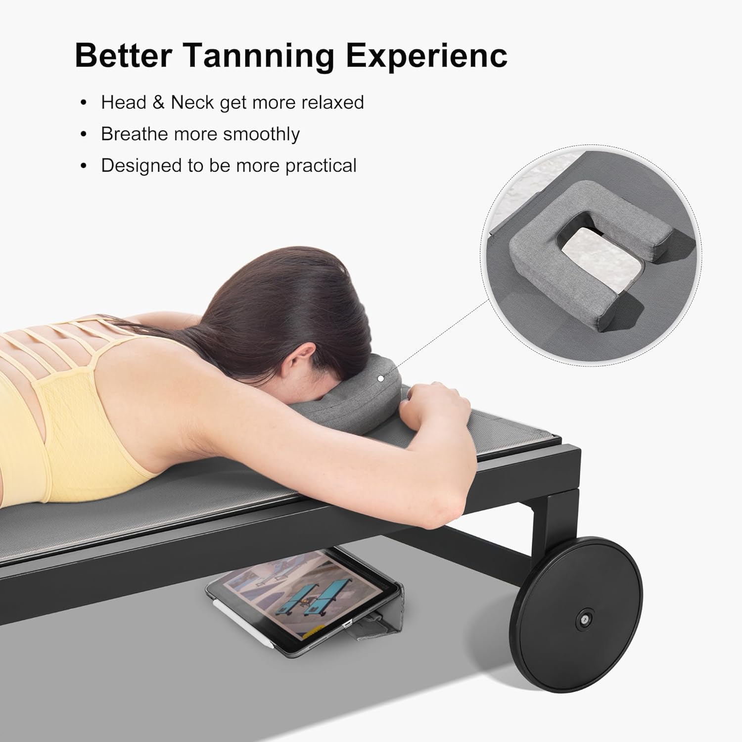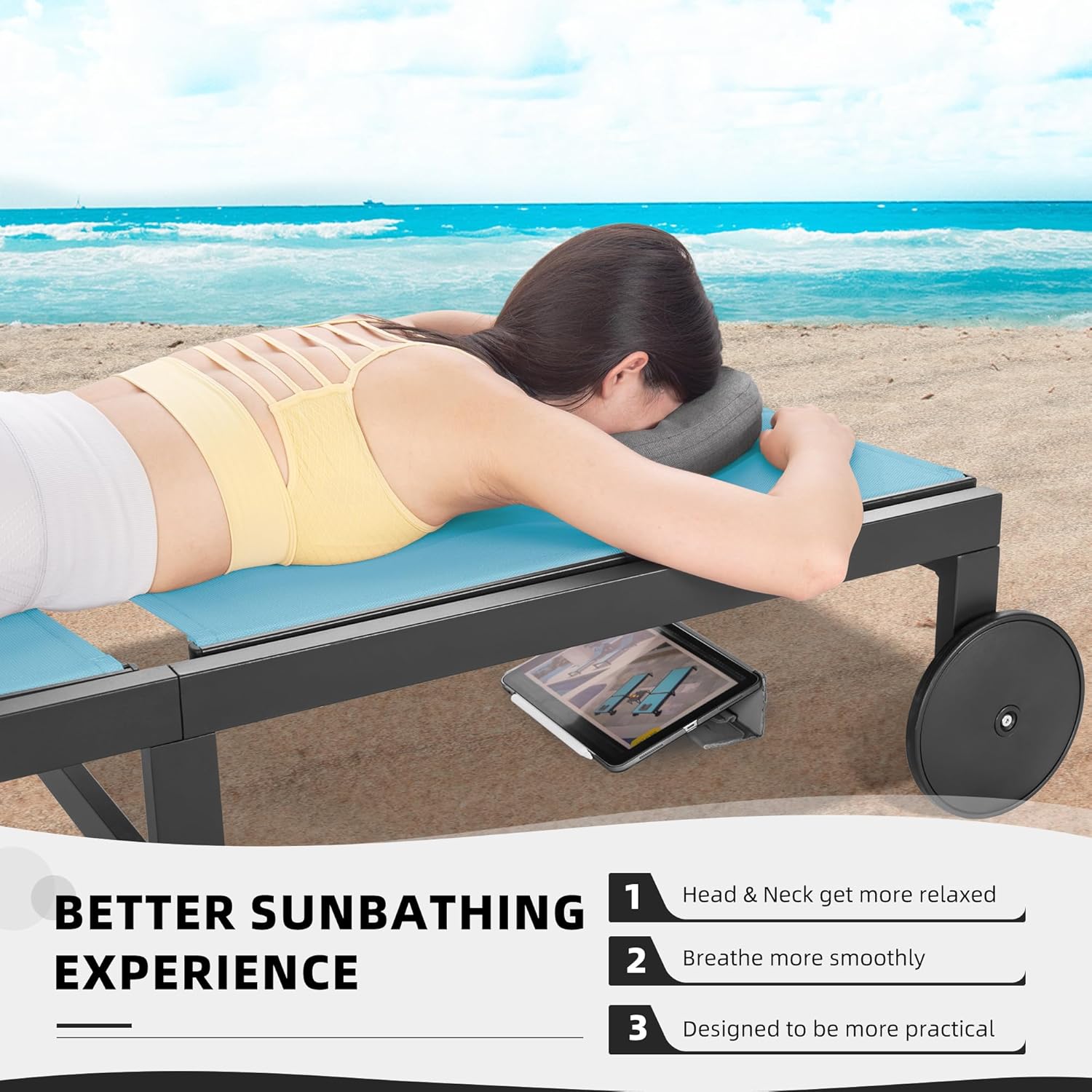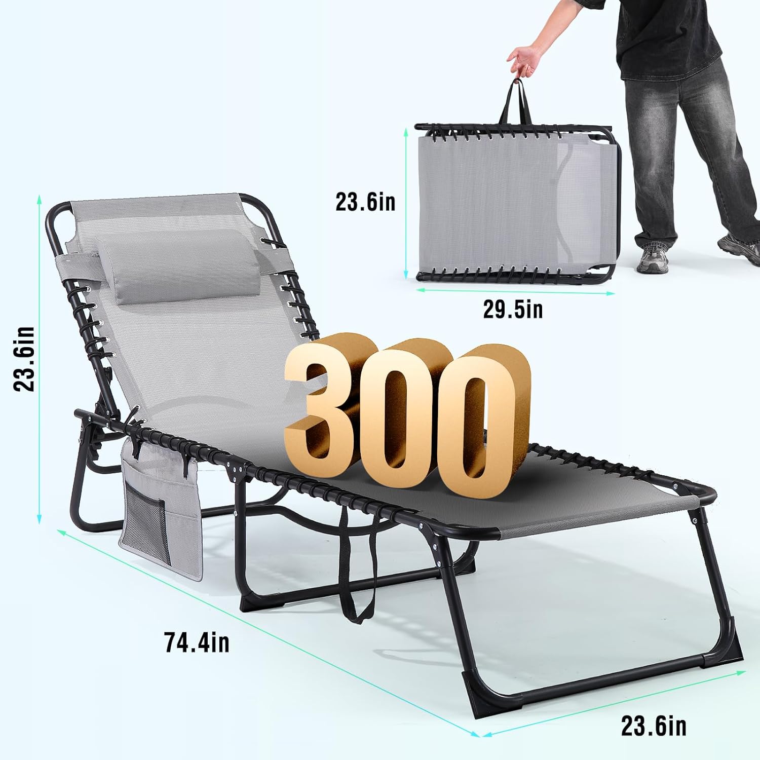 Tanning Chair with Sun Canopy Face Hole, Heavy Duty Folding Chaise Lounge Chair 5 Position Reclining for Adults Outside Reading Sunbathing Poolside Camping Beach, UPF 50+ Sun Shade, 300 LBS