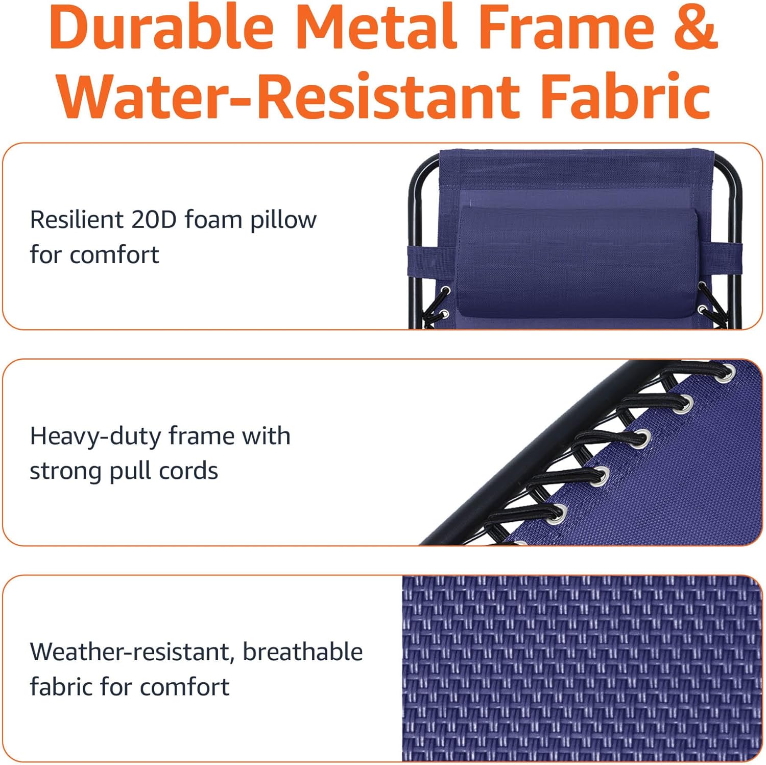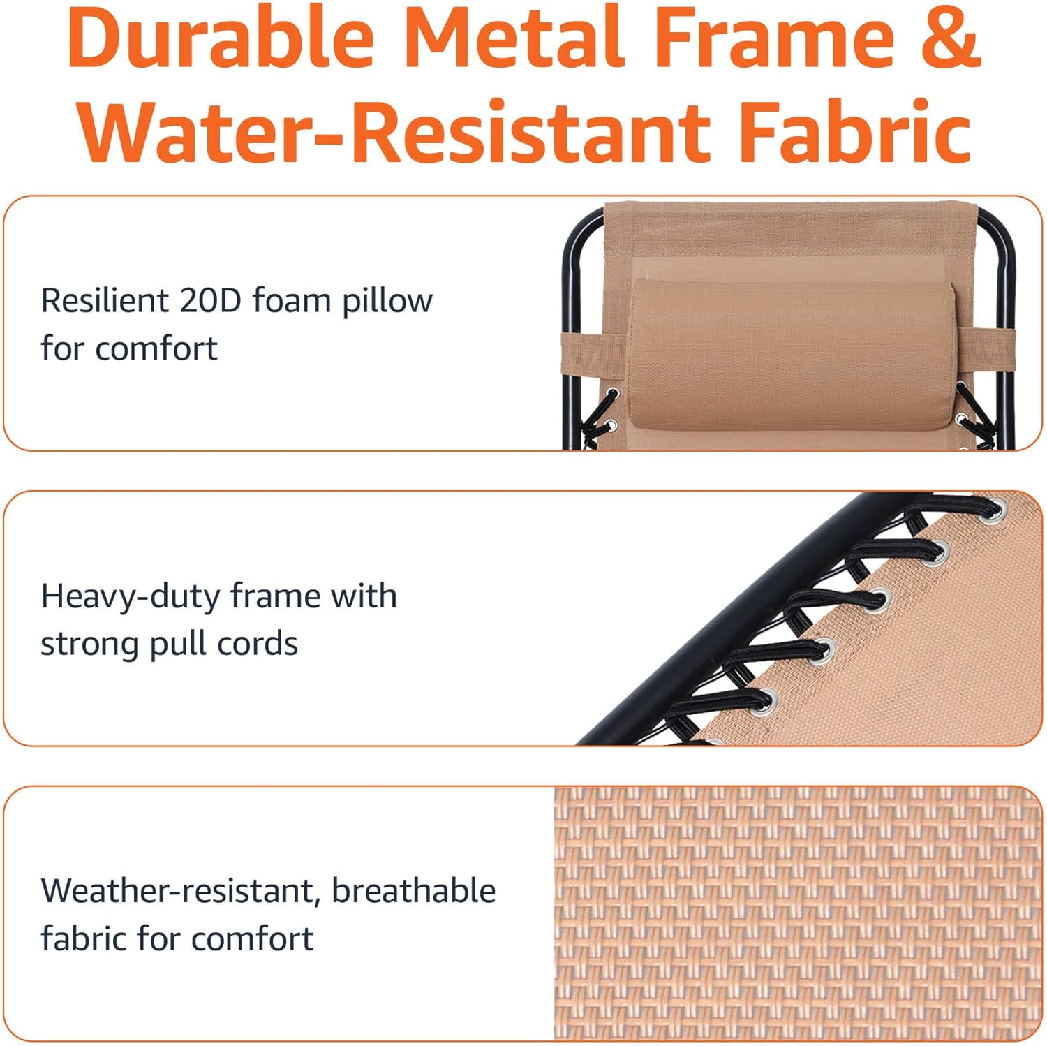 Amazon Basics Outdoor Patio Mesh Adjustable Zero Gravity Lounge Chair Recliners set of 2 with Side Table, 35 x 26 x 43 inches, Beige