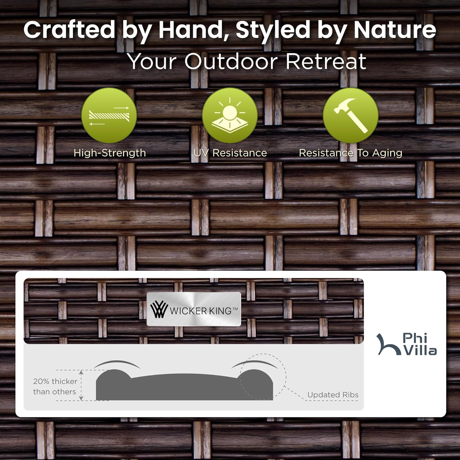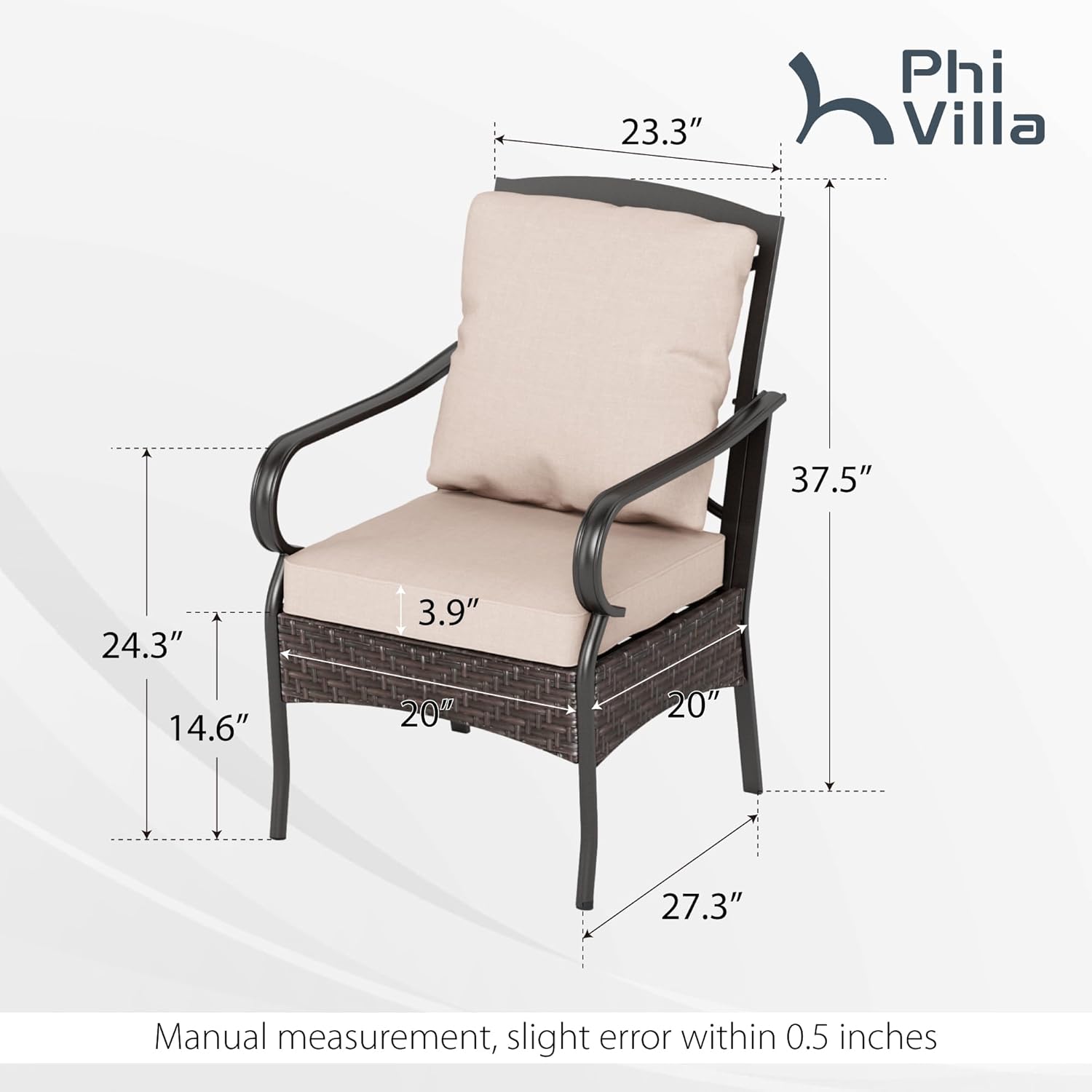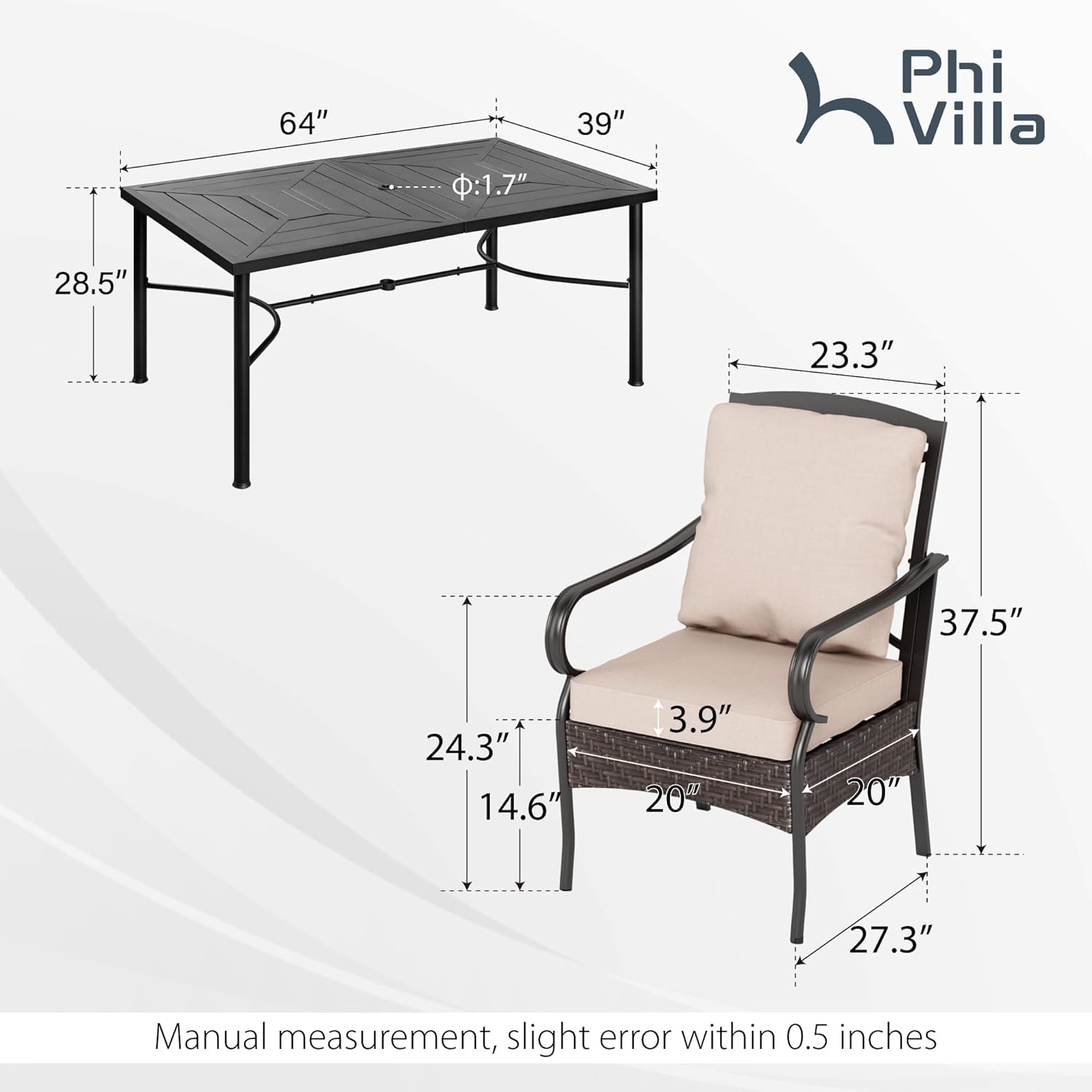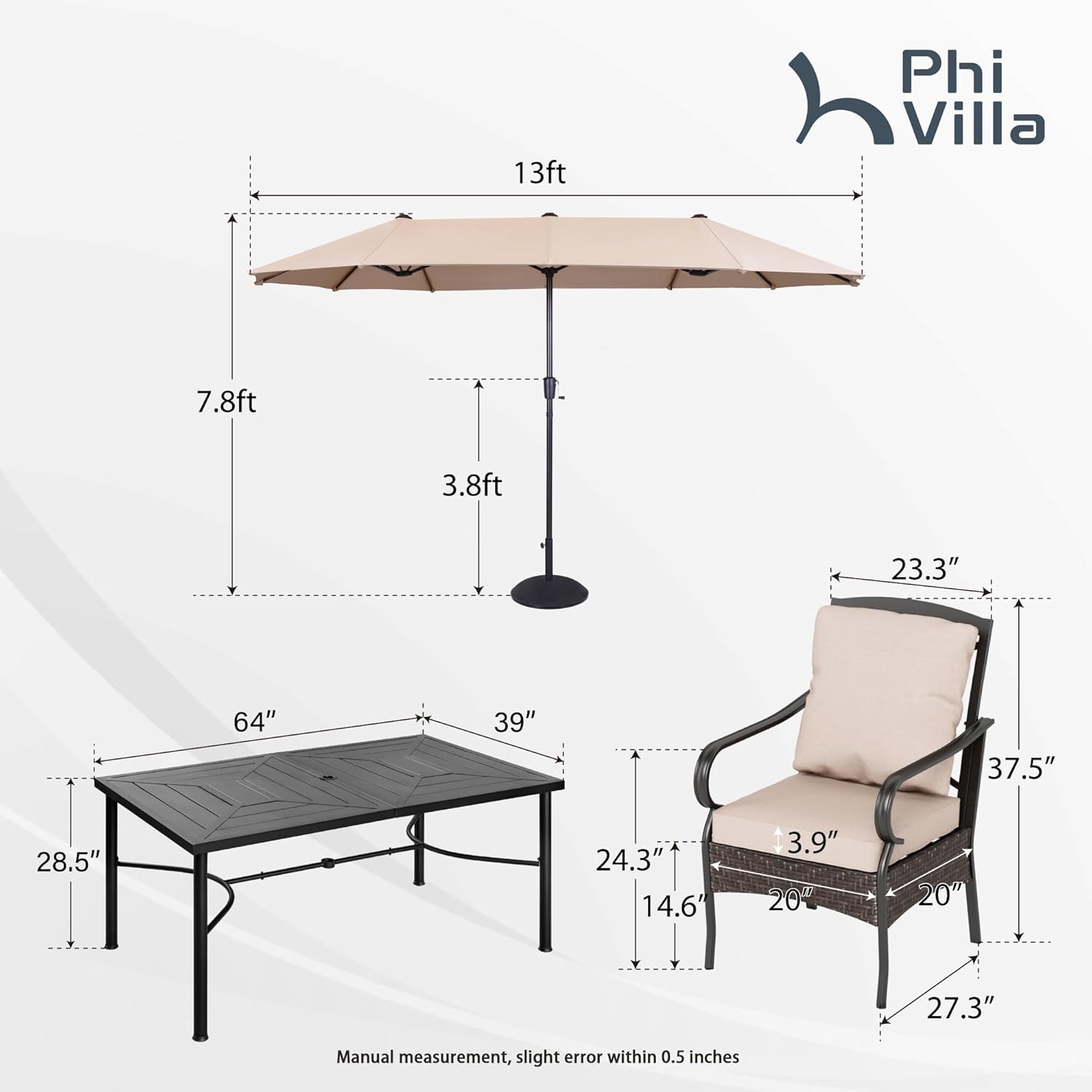 PHI VILLA 6-Piece Outdoor Dining Sets, All-Weather Patio Table and Chairs Set with Umbrella for 4, Heavy Duty Patio Round Table Set for Deck, 4 Extra Large Outdoor Swivel Chairs with Thick Cushions