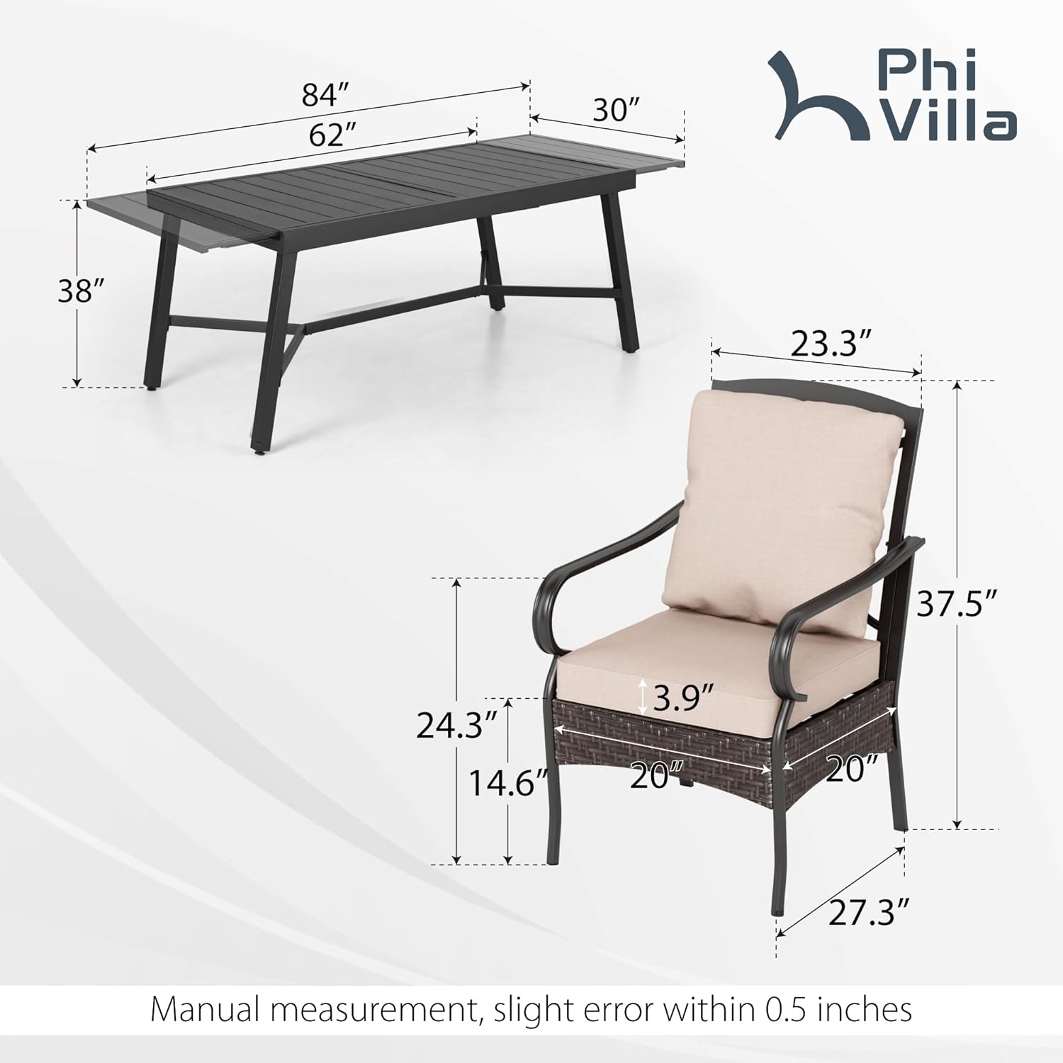Homall Patio Dining Set 7 Pieces Outdoor Furniture with Large Table and 6 Textilene Chairs for Porch, Brown
