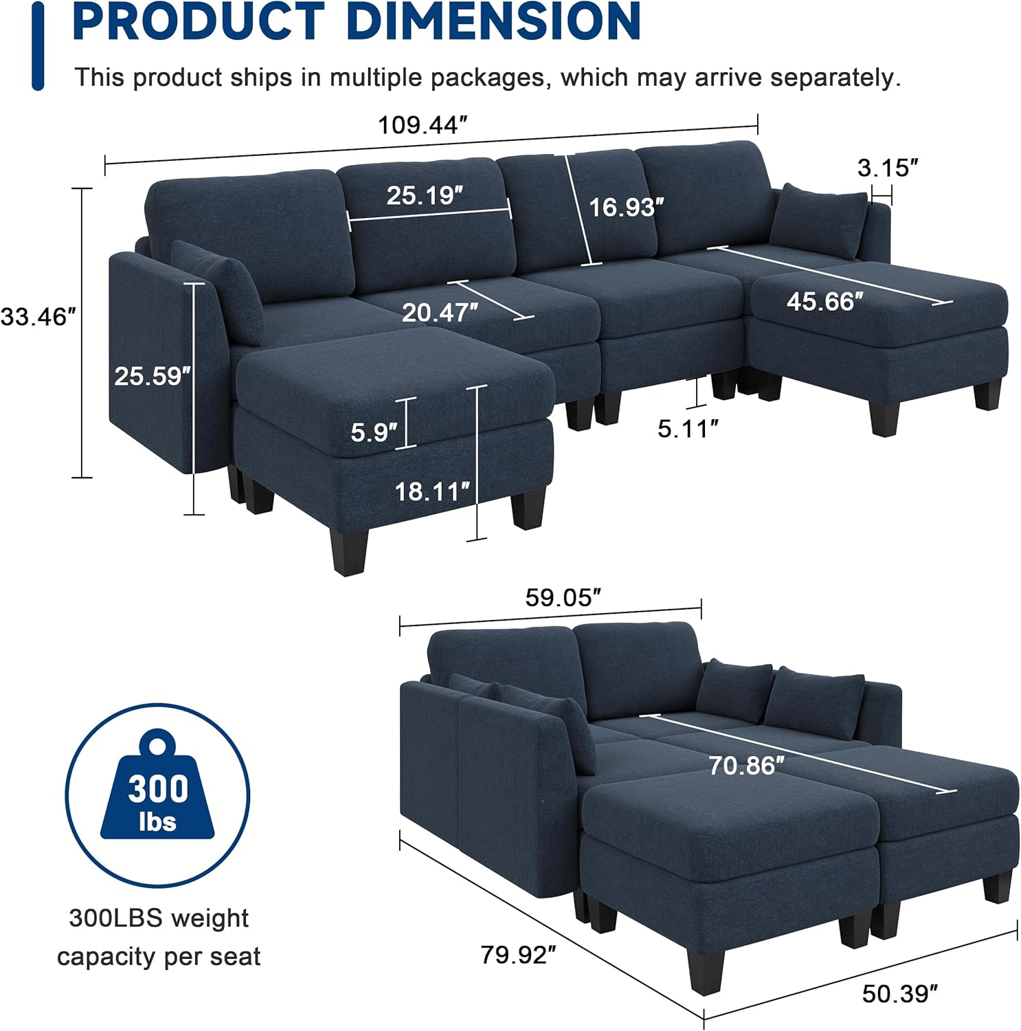 Modular Sectional Sof Convertible U Shaped Sofa Couch with High Density Memory Foam, 6 Seat Comfy Modular Sofa Couch for Living Room, Modern U Shaped Sectional Sofa, Dimgrey