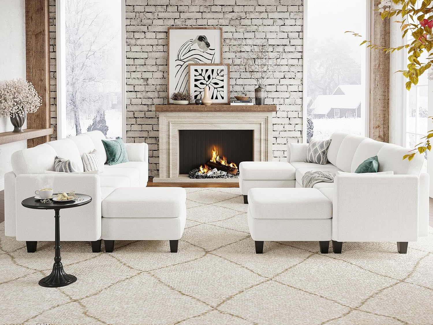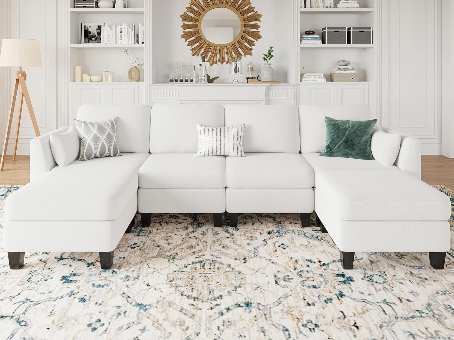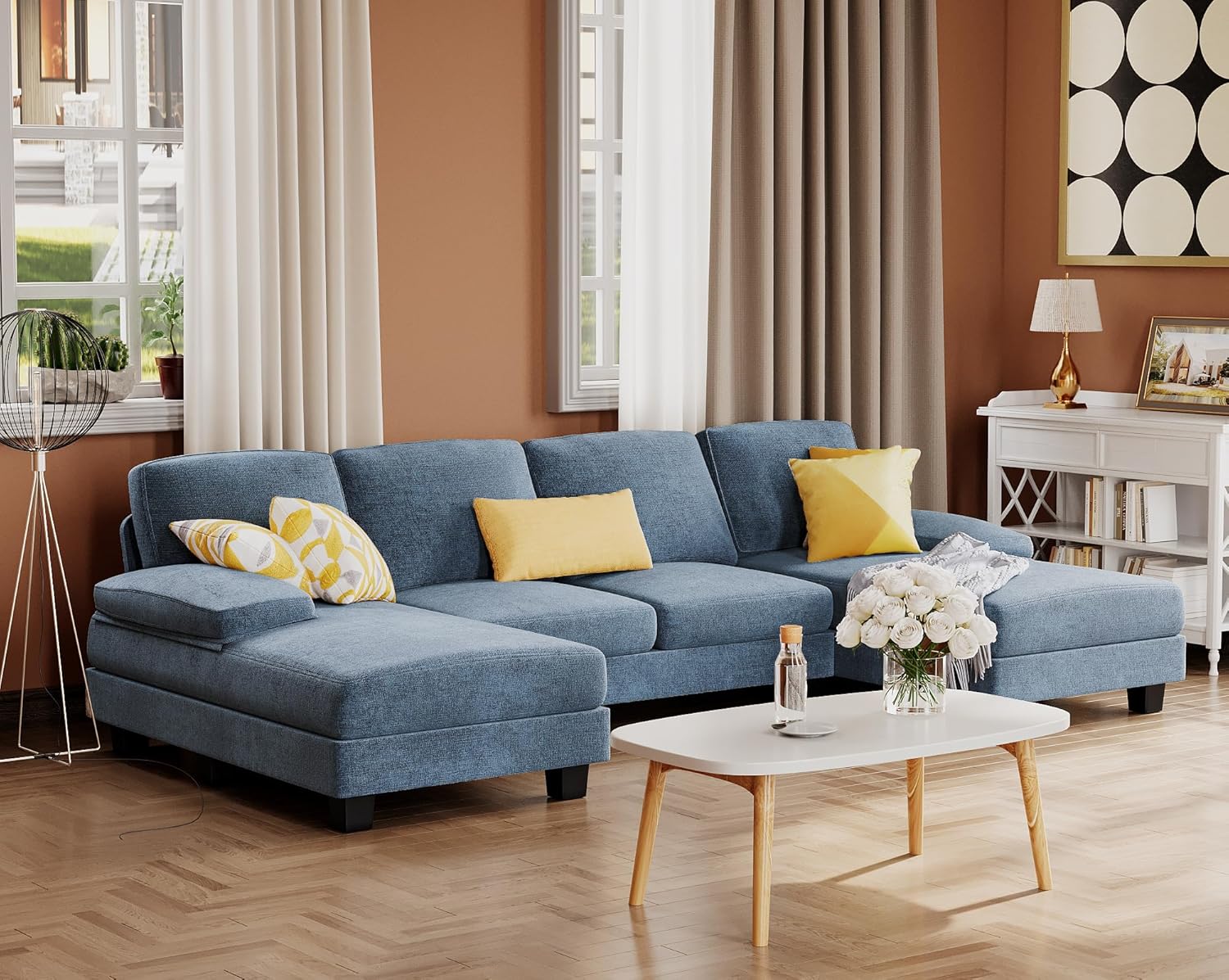 Furmax Sectional Couches for Living Room, U-Shaped Sofa Couch with Linen Fabric, 4 Seat Sofa Set with Double Chaise for Apartment (Fabric, Grey)