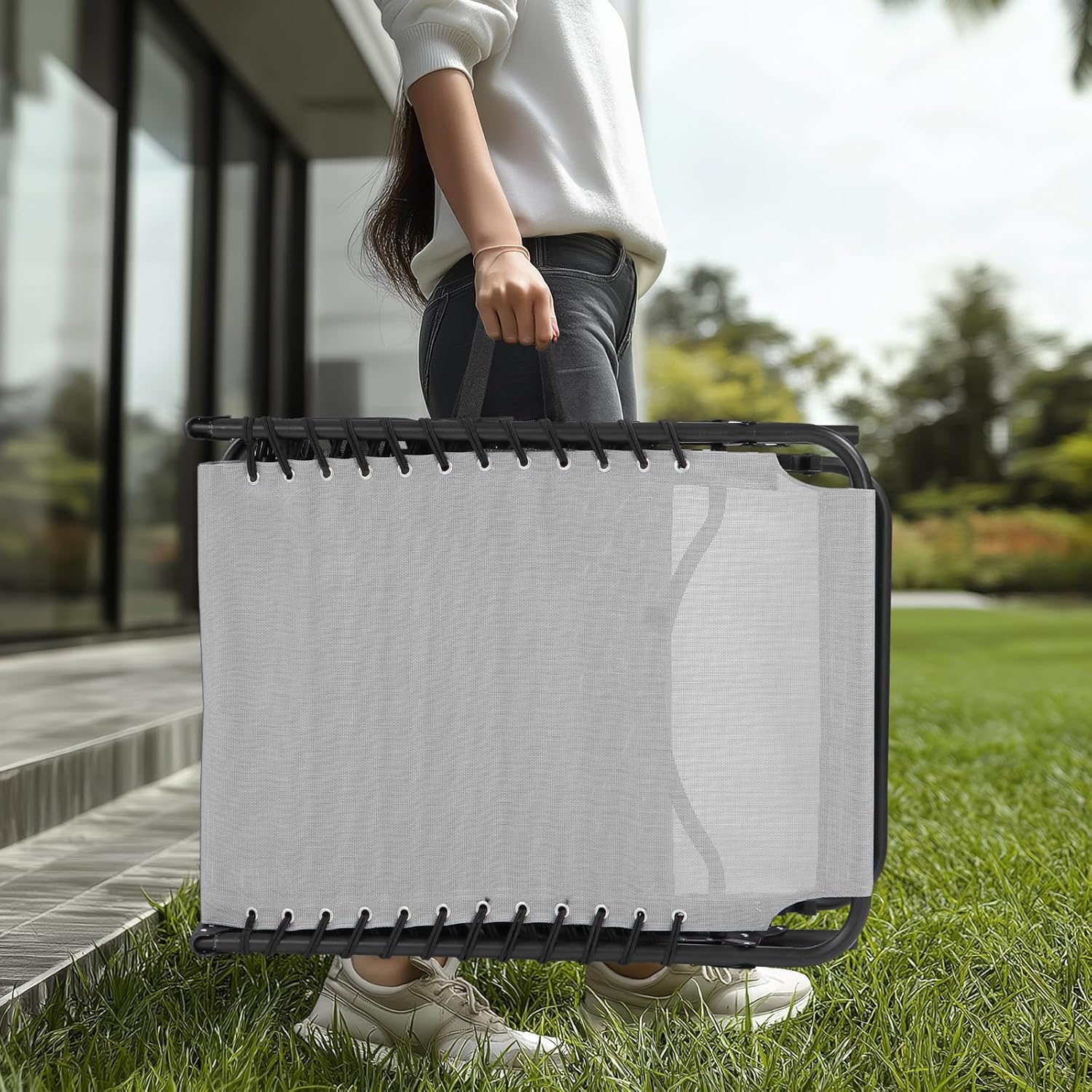 Unovivy Outdoor Chaise Lounge Chairs Set of 2, Portable Folding Pool Lounge Chair with 5-Position Reclining Back, Teslin Tanning Chair for Pool, Beach, Patio, Sunbathing