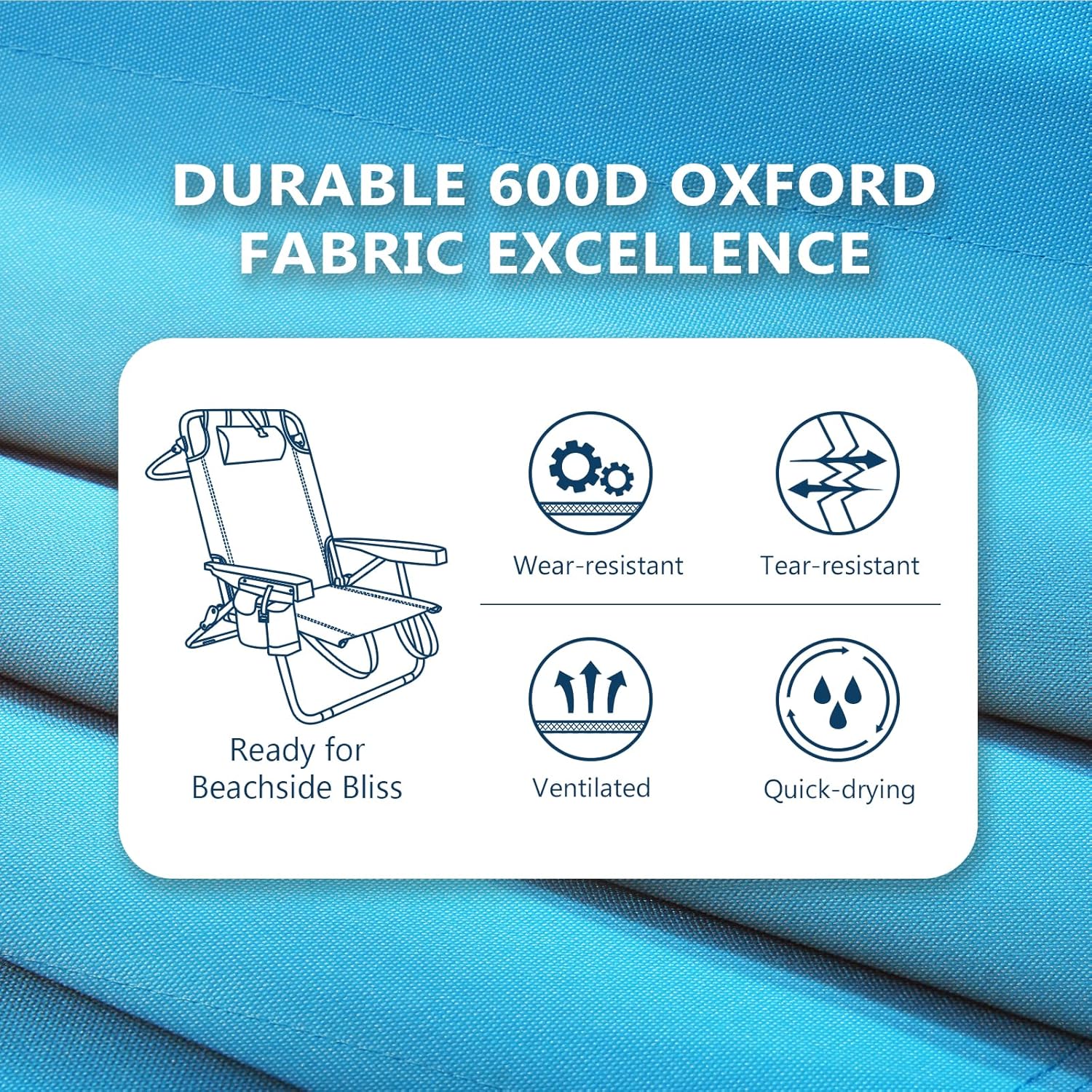 Beach Chair 2 Pack 5 Positions Textilene Folding Reclining Beach Chair with Backpack Straps Cooler Bag & Cup Holder for Outdoor Lawn Camping