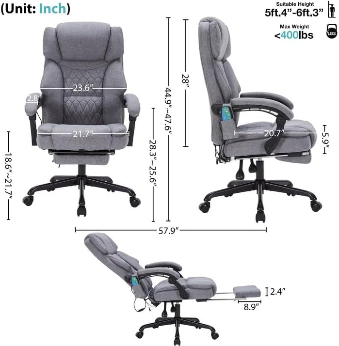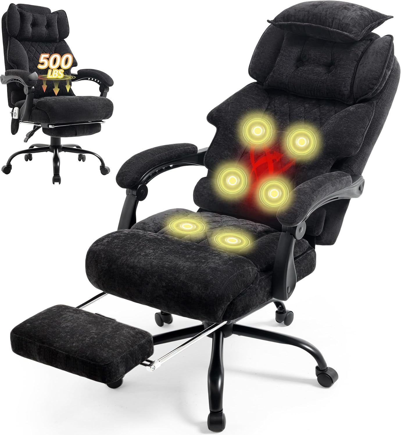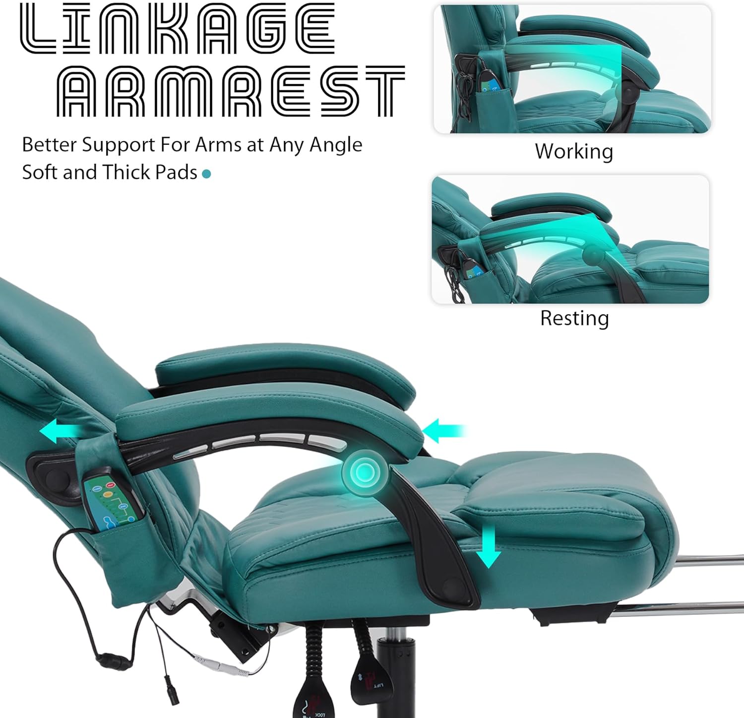 Massage Office Chair with Footrest 6 Point Vibration and Heating Home Executive Office Desk Chair