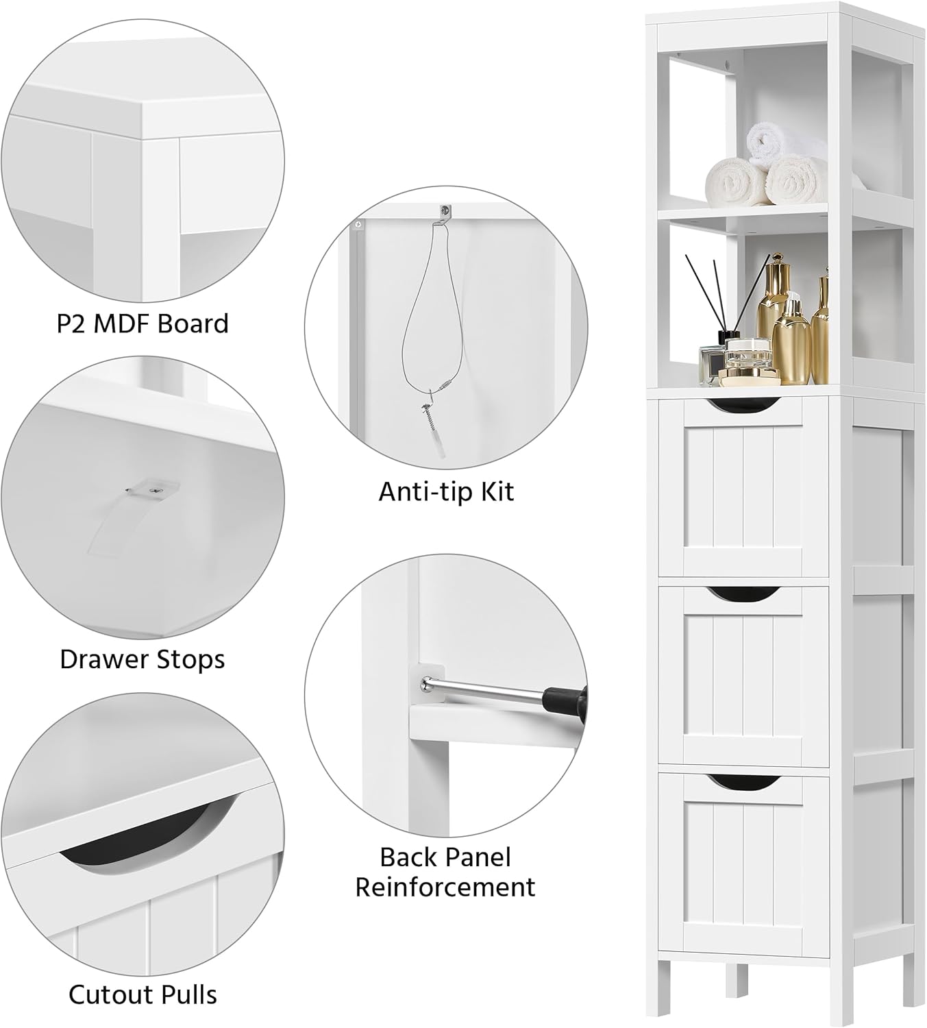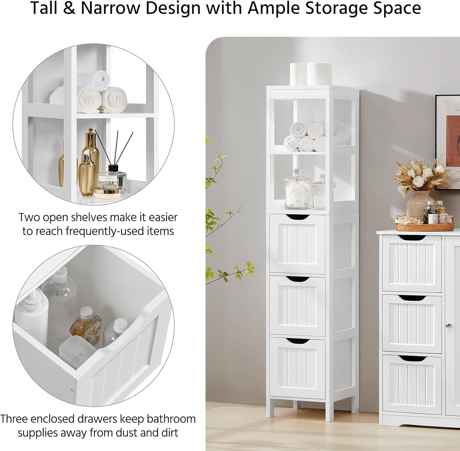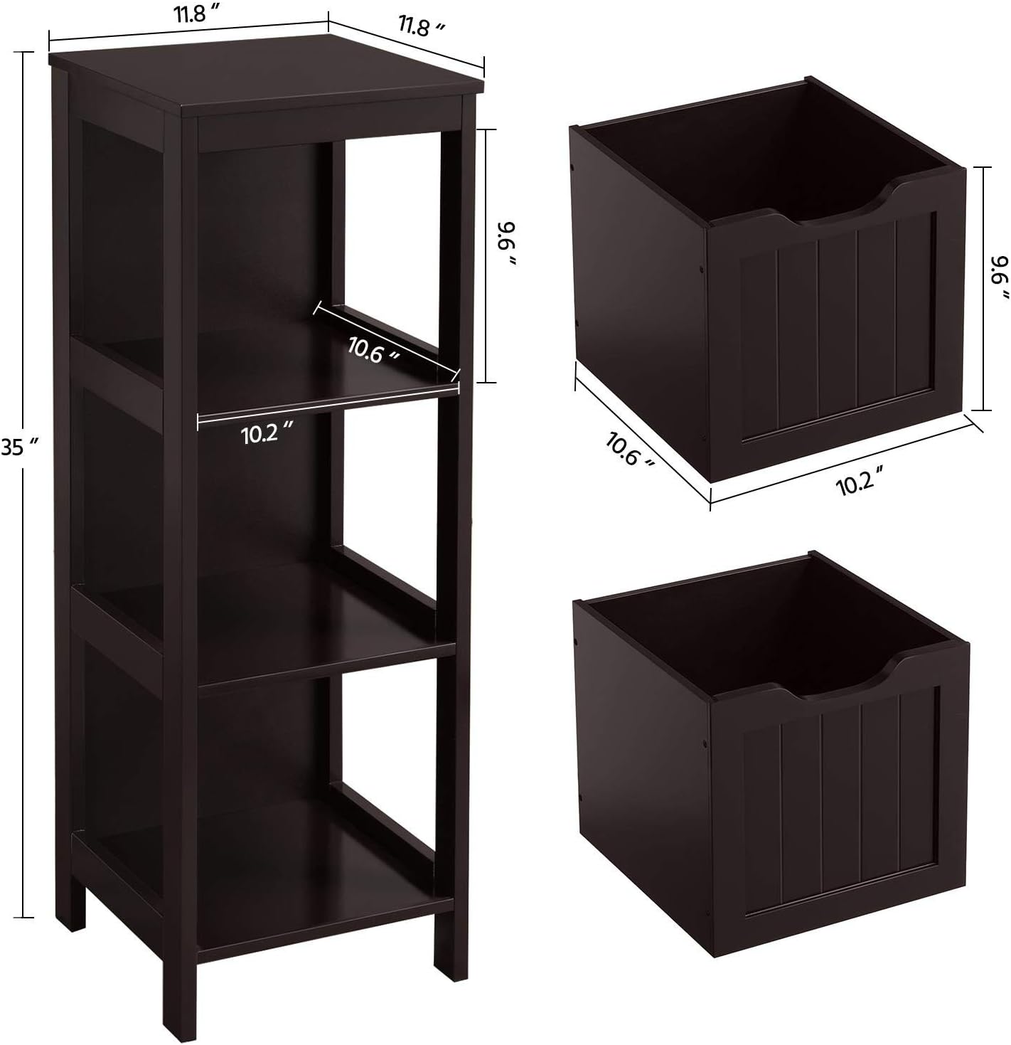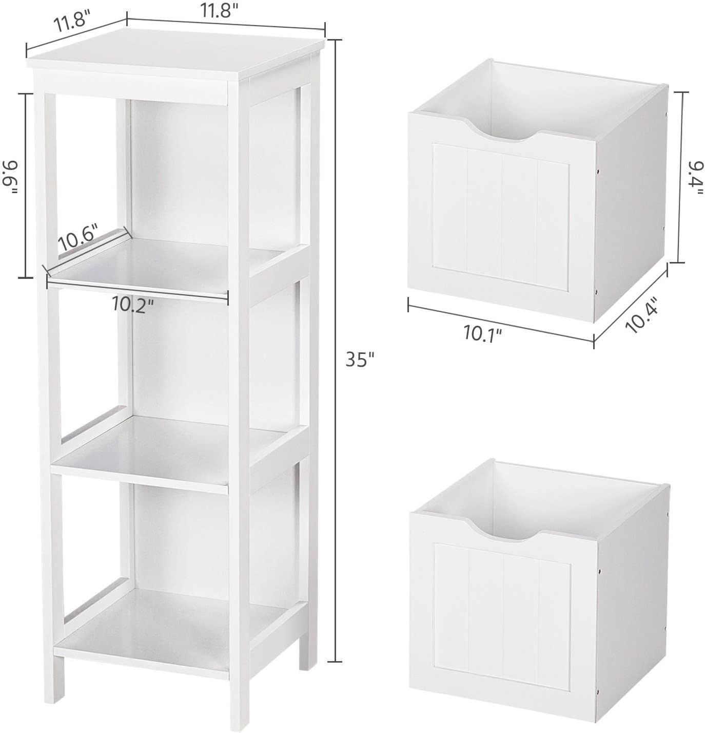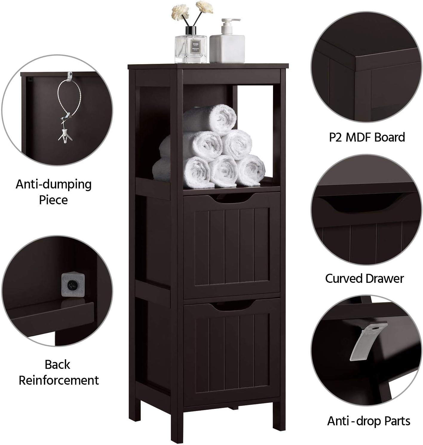 Bathroom Floor Cabinet, Wooden Storage Cabinet with 2 Drawers, Multifunctional Side Organizer Rack Stand Table