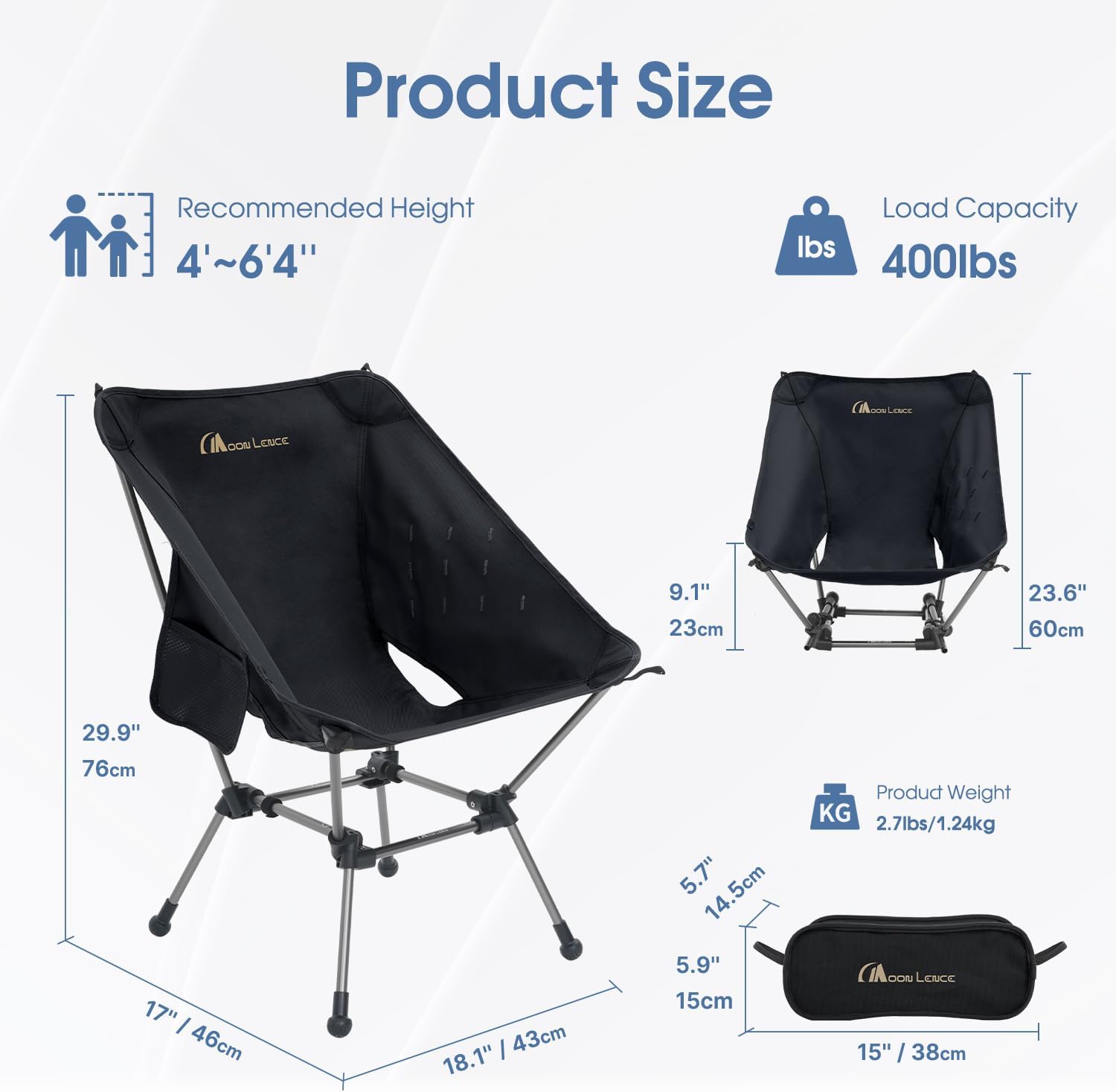 Ultralight Camping Chair 2.12 lbs Portable Backpacking Chair Folding Hiking Chair