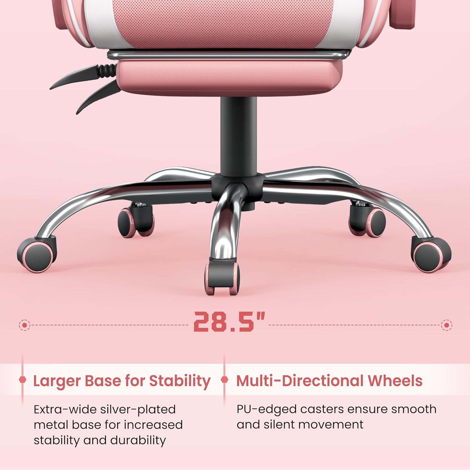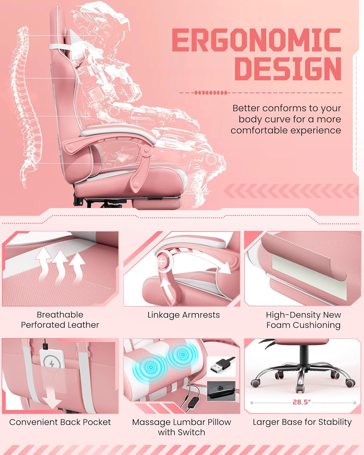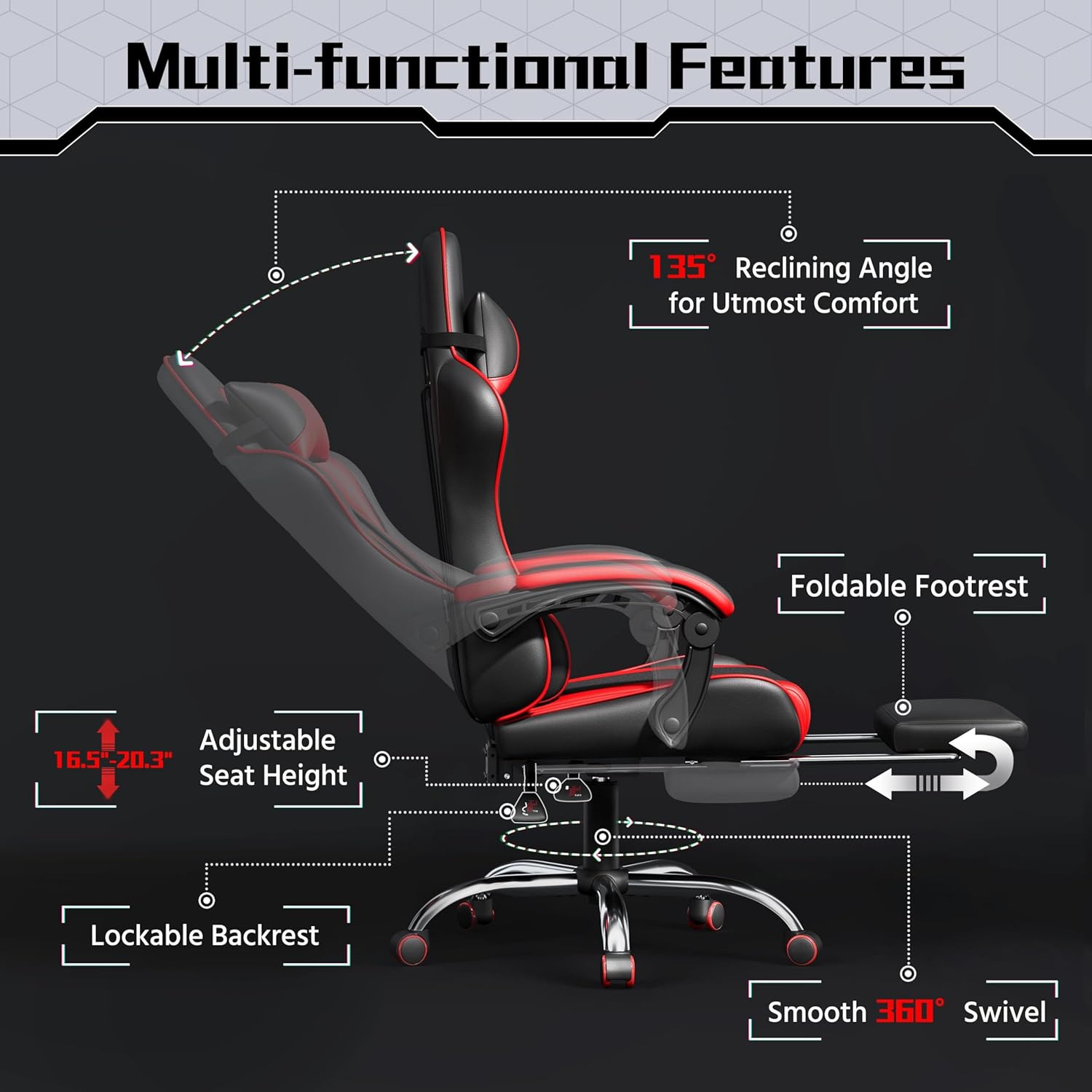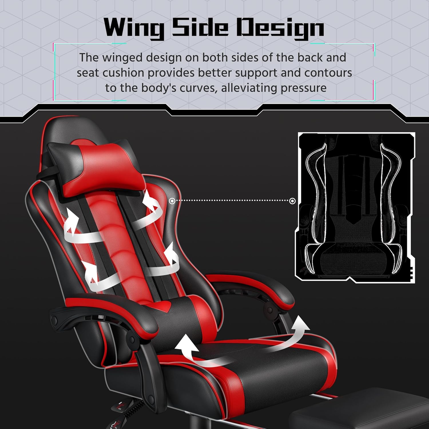 Gaming Chair with Massage Lumbar Support and Footrest Height Office Gaming Chair