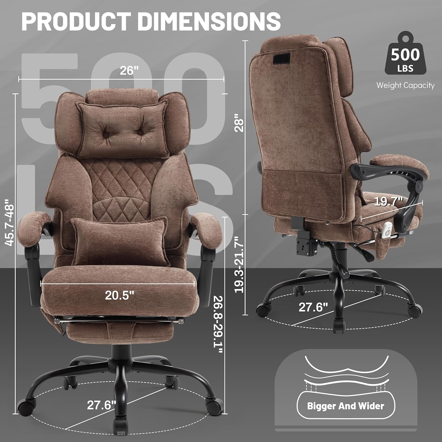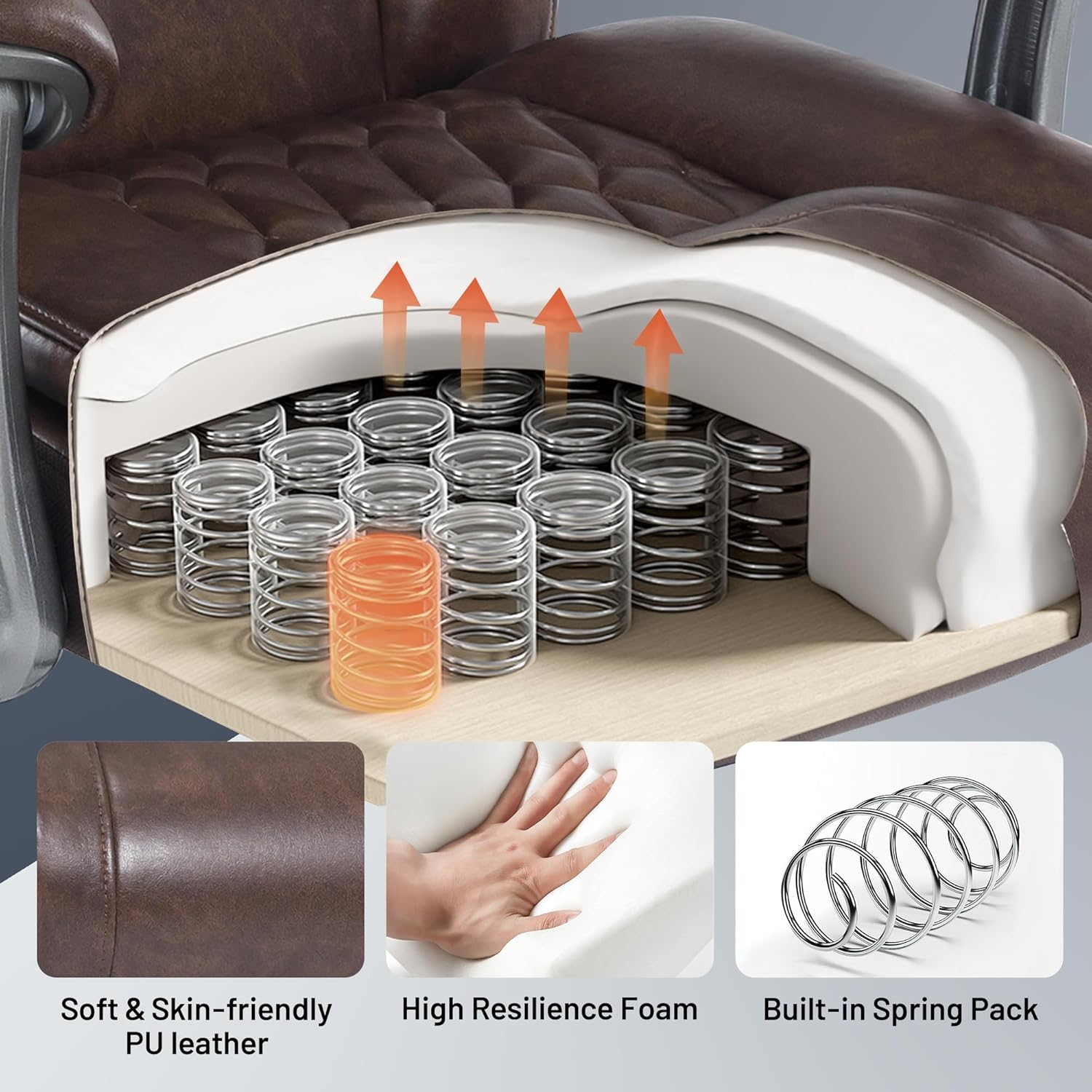 Massage Office Chair with Footrest, Large and Tall Leather Office Chair 500 lbs
