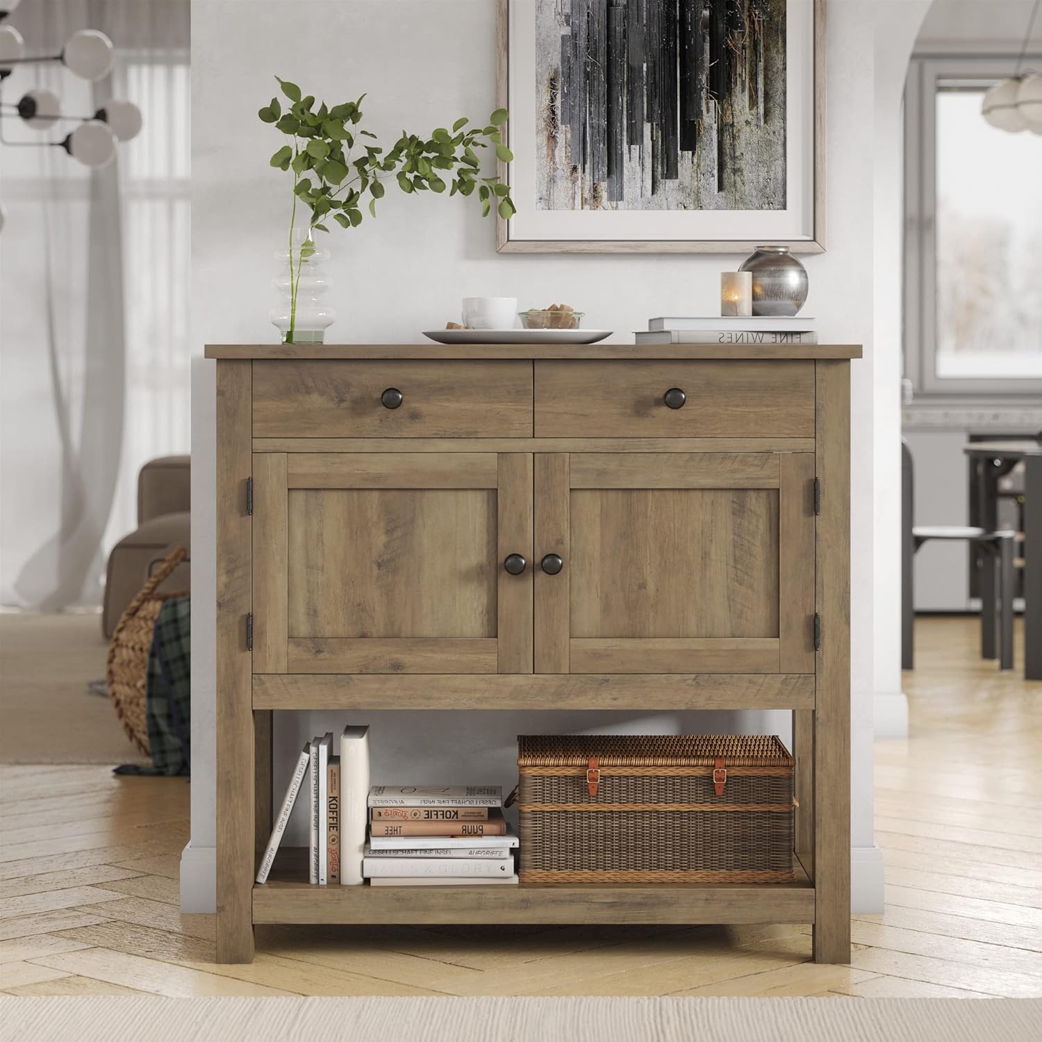 Farmhouse style console table coffee bar, entry table with storage rack, sofa table buffet sideboard