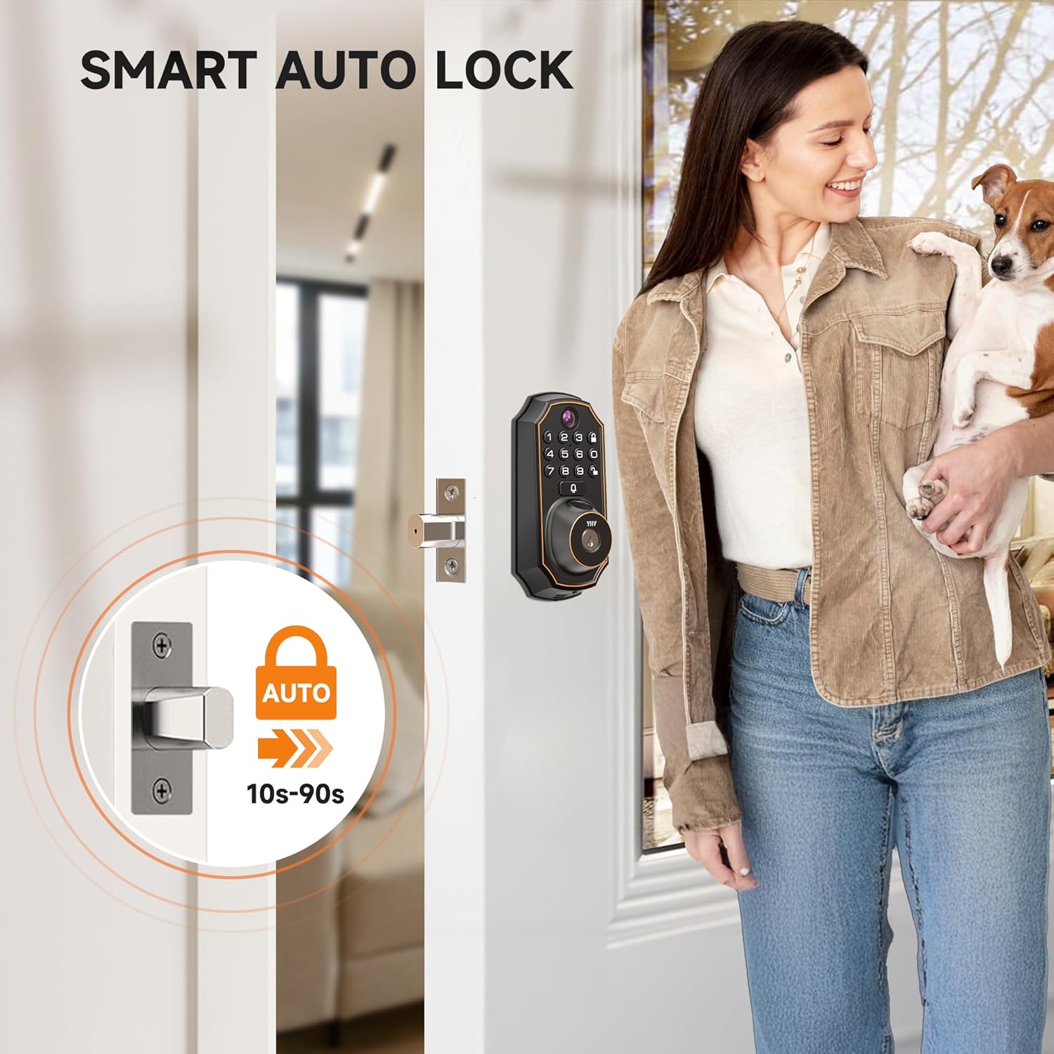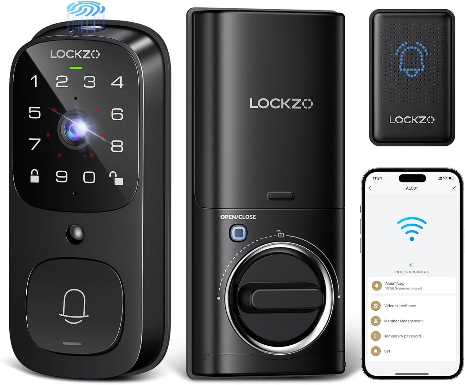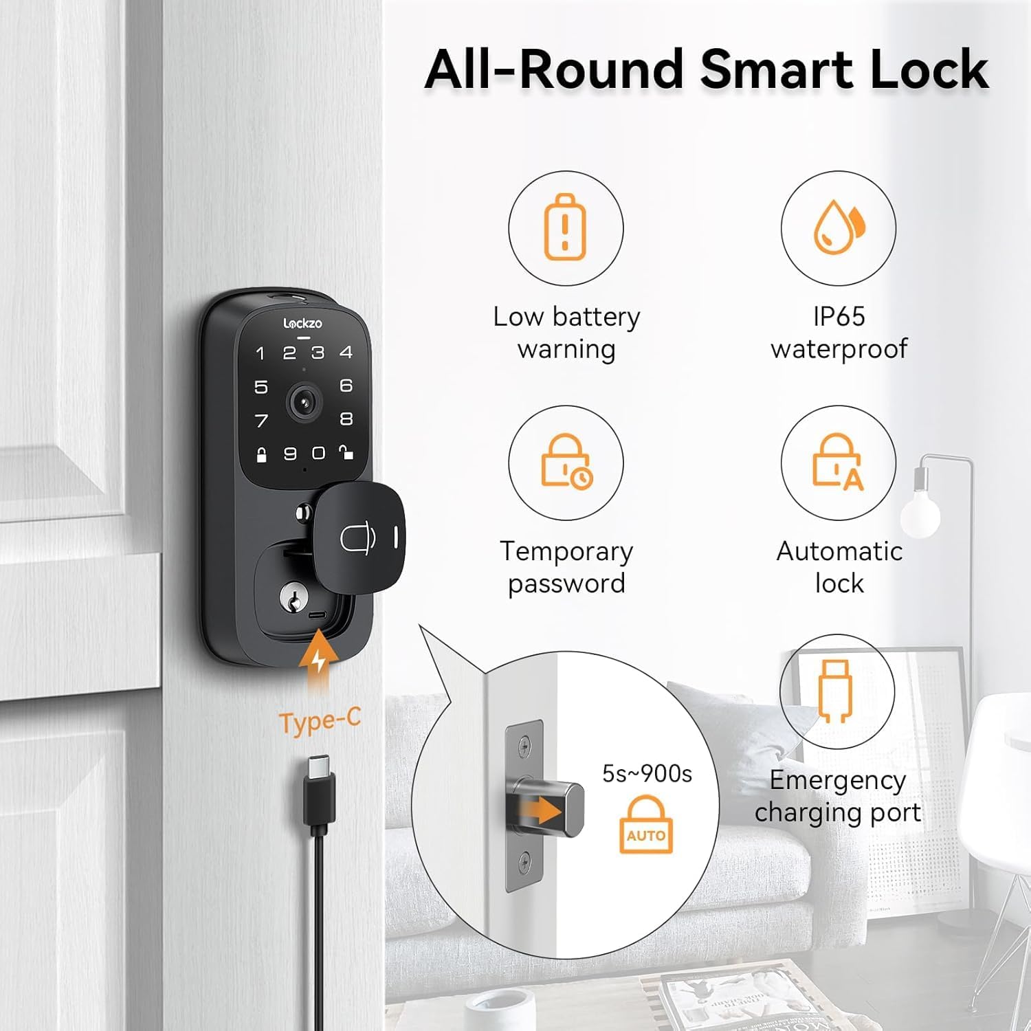 Video Smart Lock with Doorbell Keyless Entry Door Lock, Built-in WiFi Camera Front Door Deadbolt Lock, Fingerprint, Keypad Code, App Control, Voice Control, Auto-Lock, IP65, Video Call