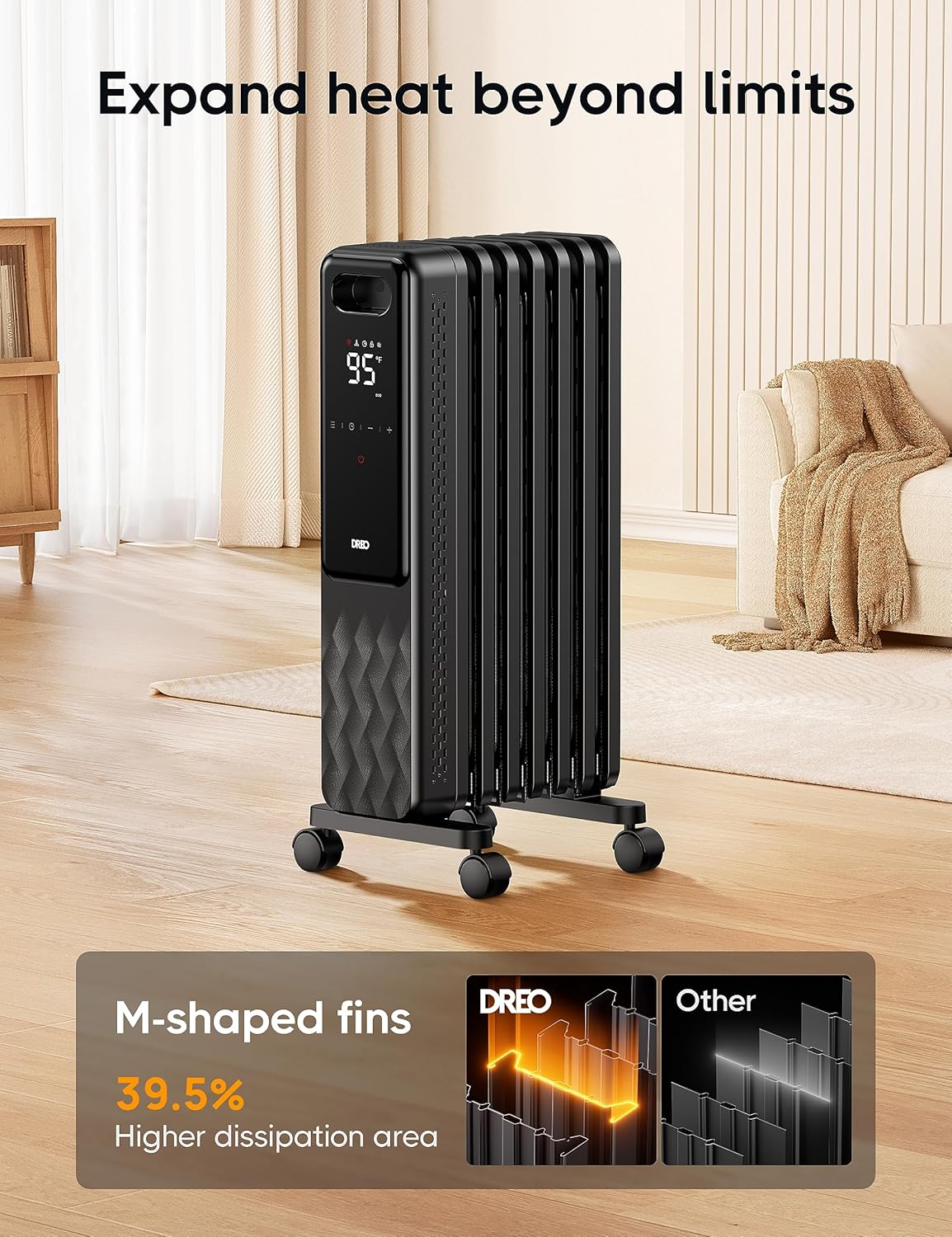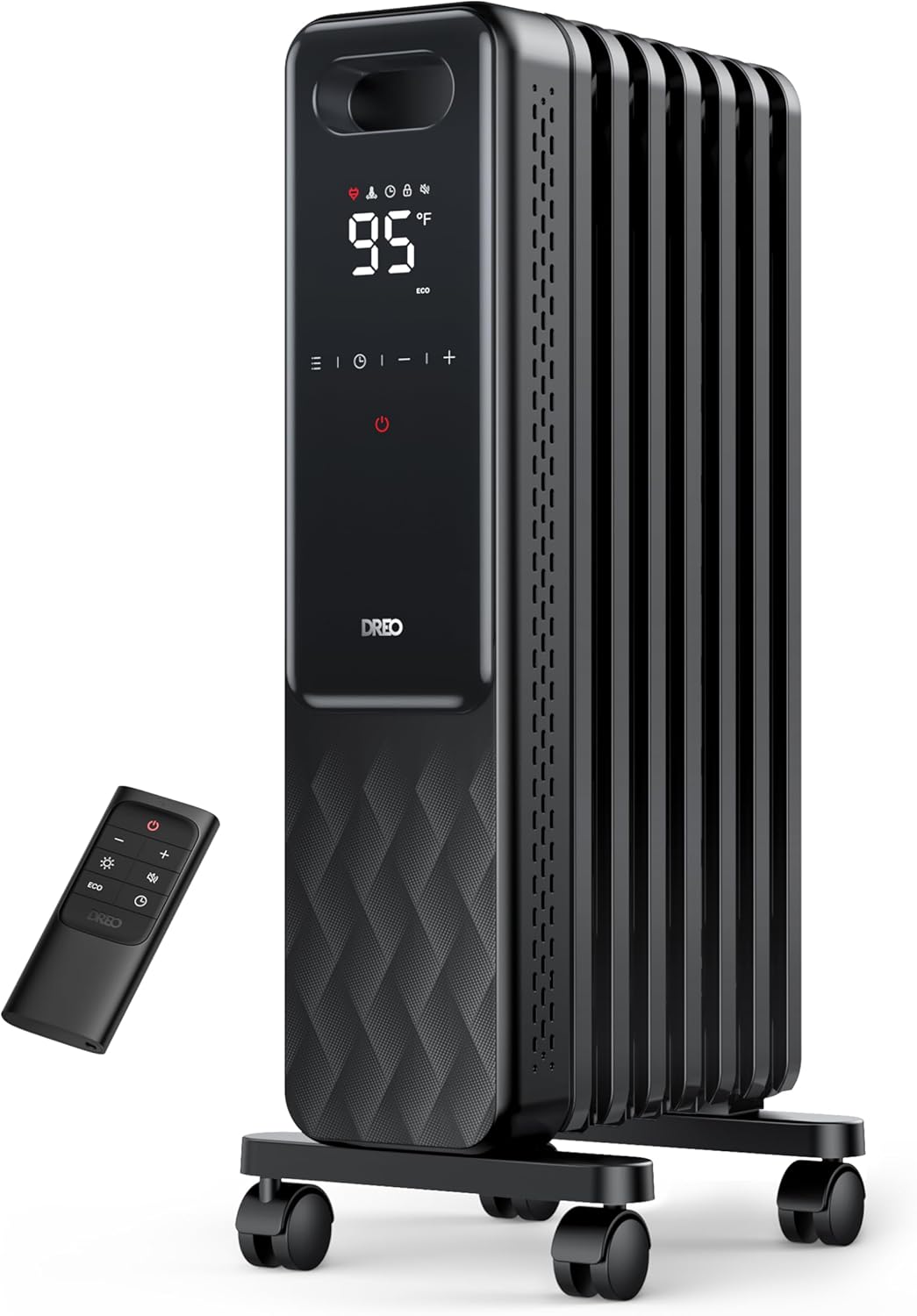 Indoor electric radiant heater with overheat and tip-over protection, digital thermostat, oil-filled radiator
