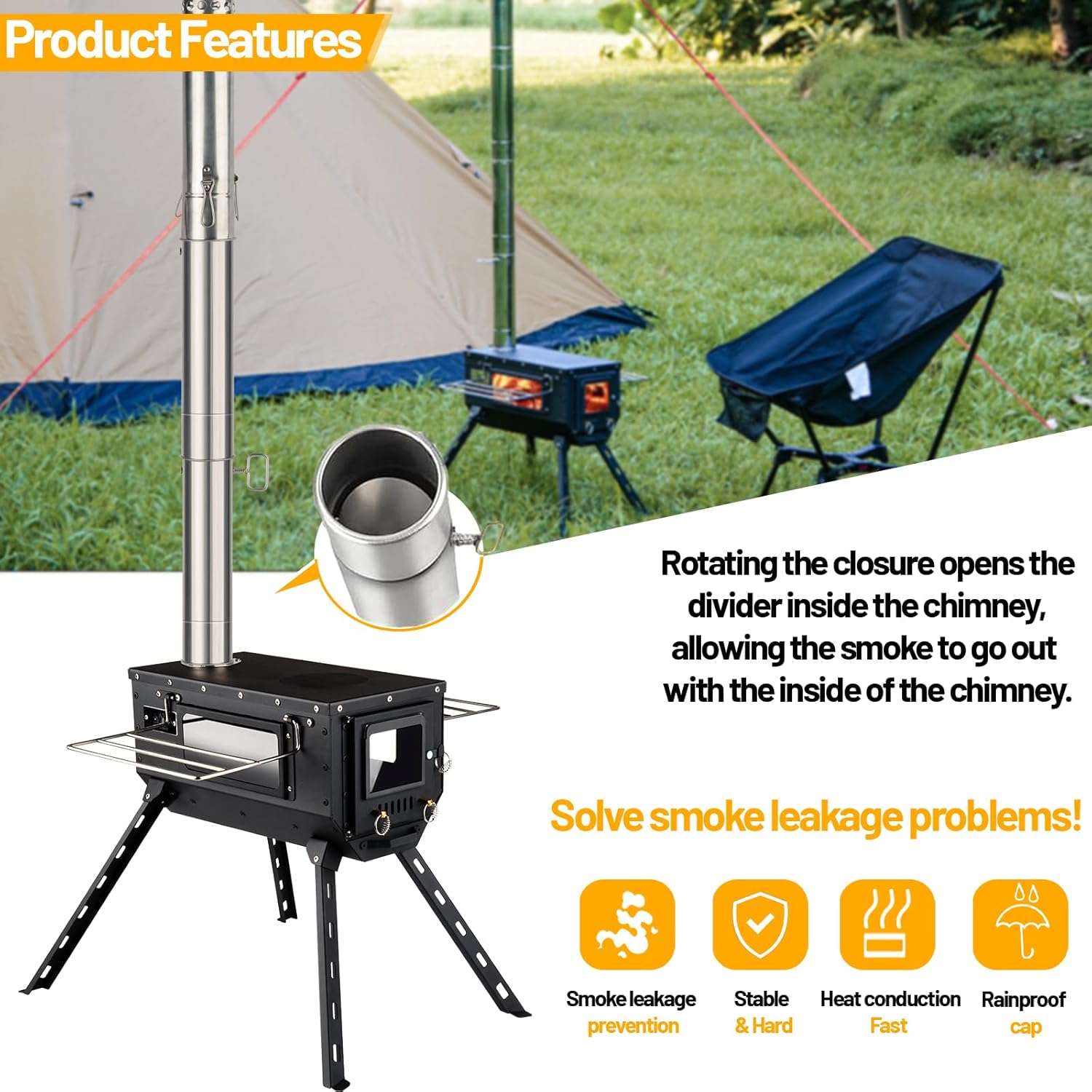 Hot Tent Stove Wood Stove, Small Wood Stove for Outdoor Heating and Cooking, Ice Fishing, Hunting