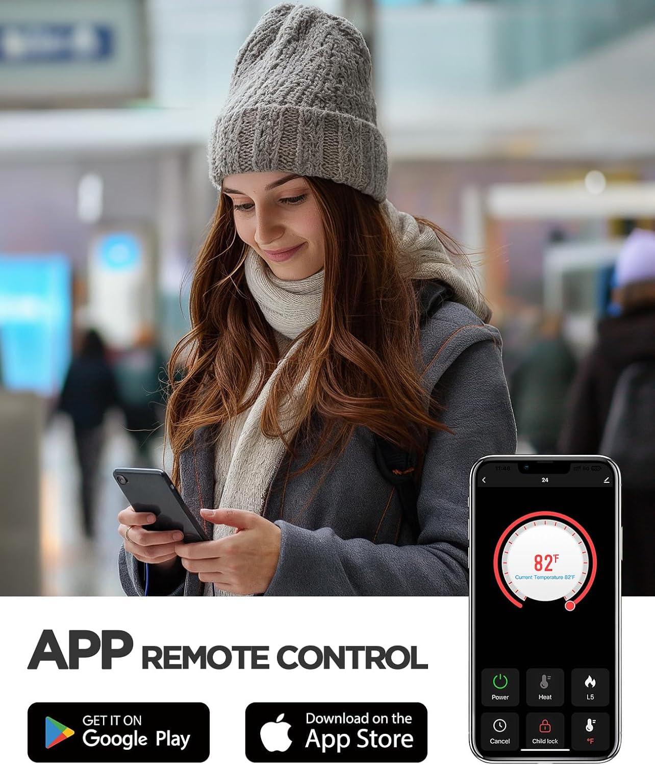 Smart wall-mounted heater for indoor use with adjustable thermostat and remote control