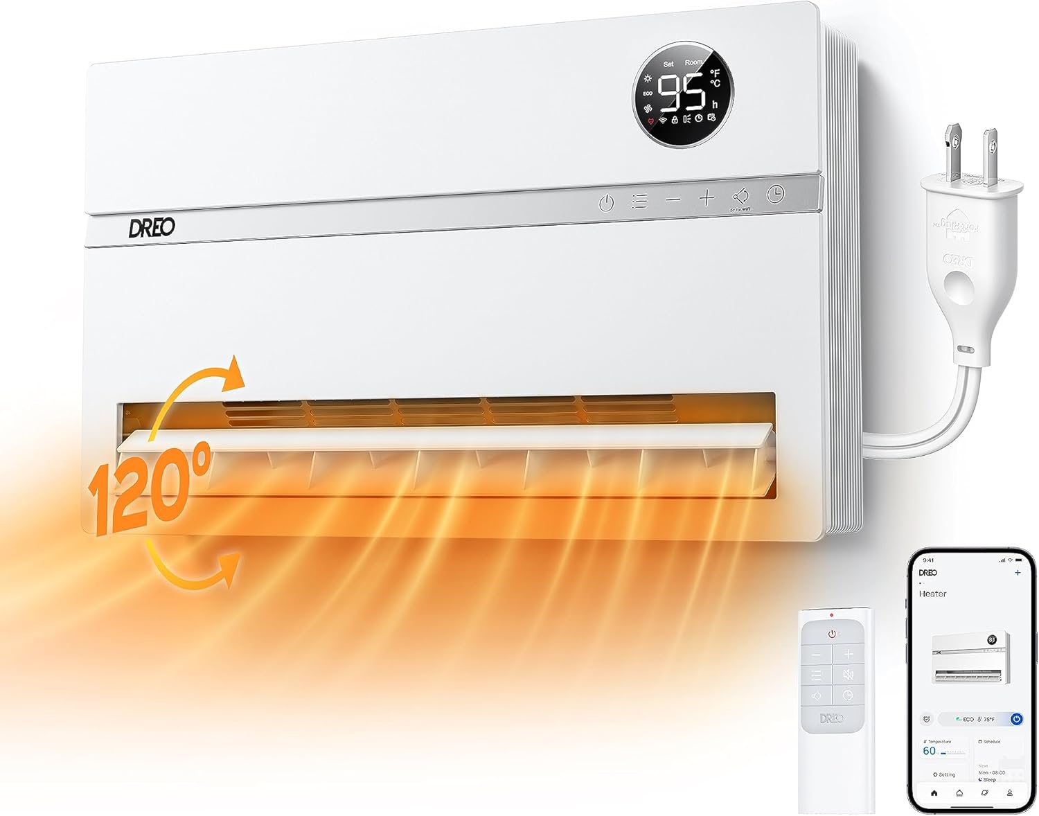 Smart wall mounted heater, bedroom electric heater, 1500W adjustable thermostat 24-hour timer easy to install indoor heater