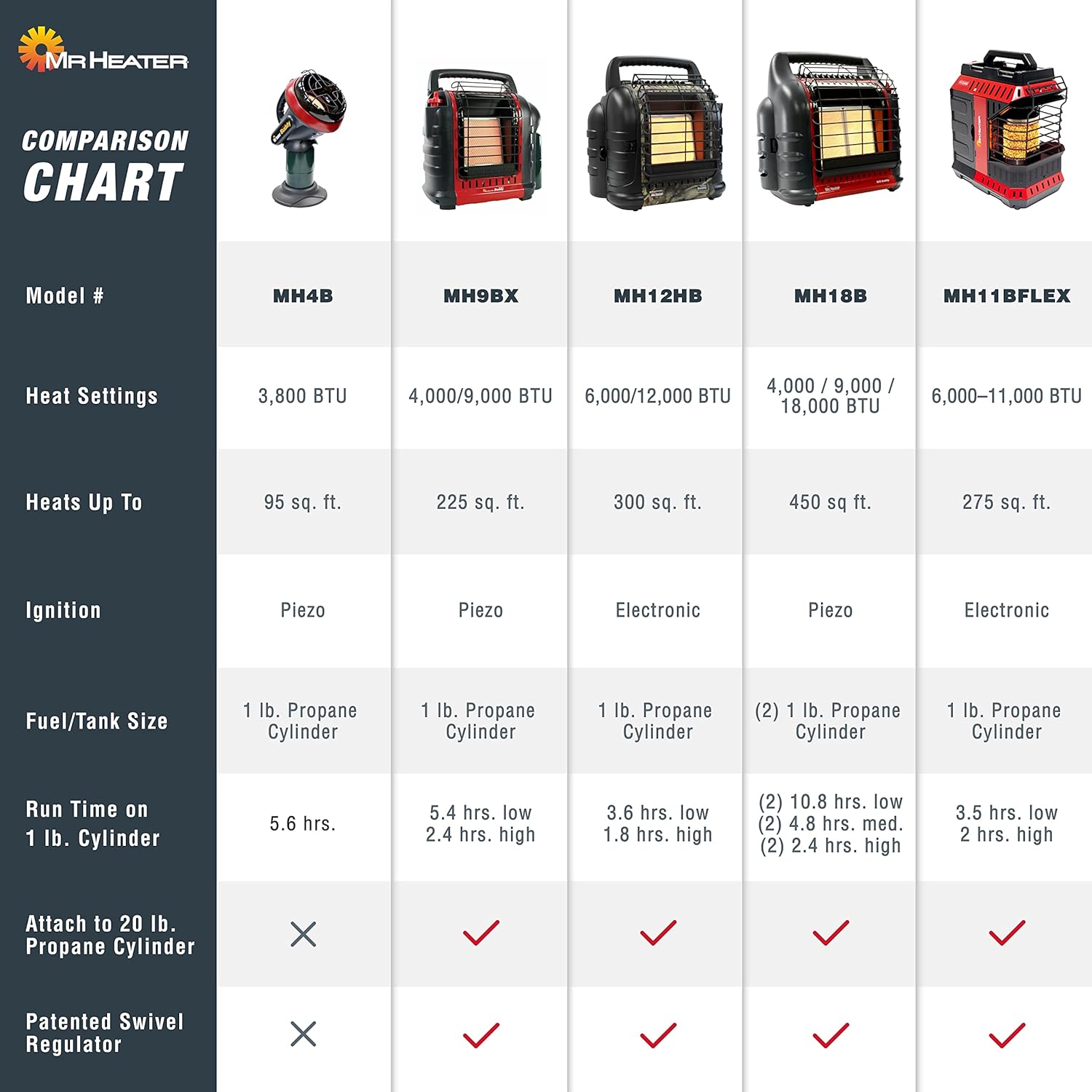 Portable Propane Radiant Heater, 4,000-9,000 BTU, for campers, workshops, patios, and more