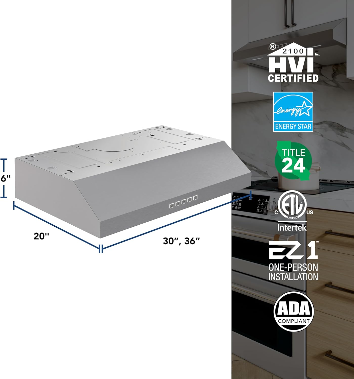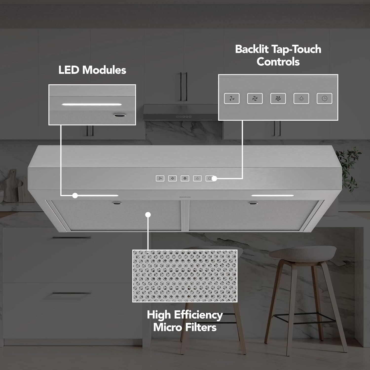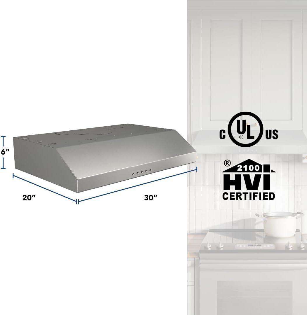 Comfee 30" Under Cabinet Ducted/Ductless Convertible Slim Vent Durable Stainless Steel Kitchen Reusable Filter