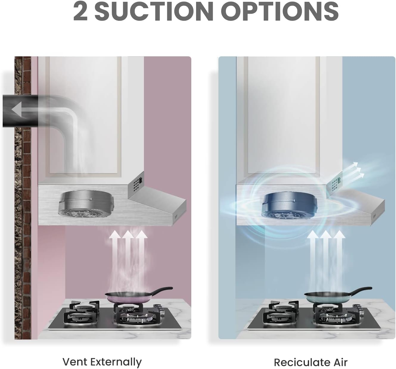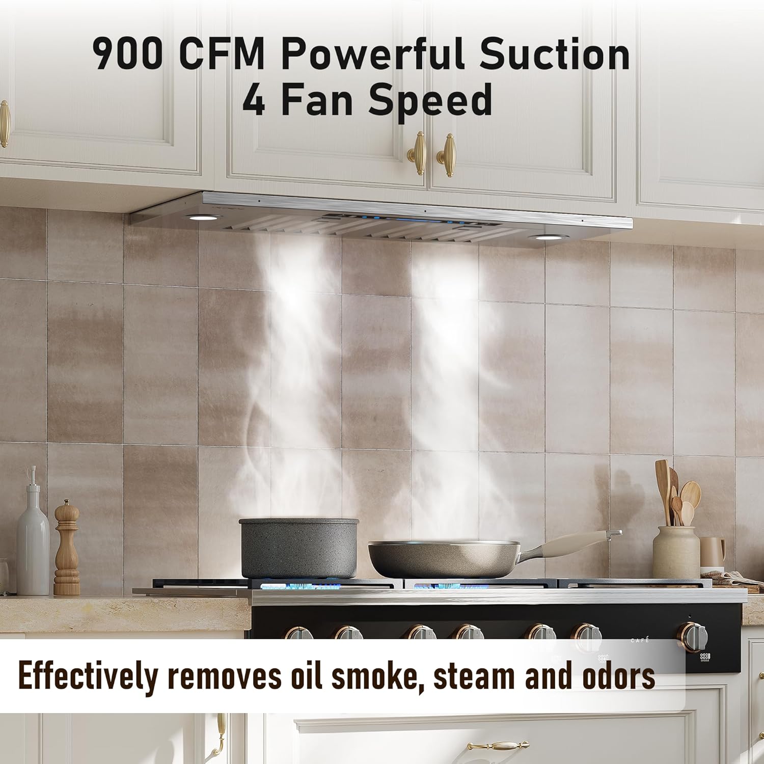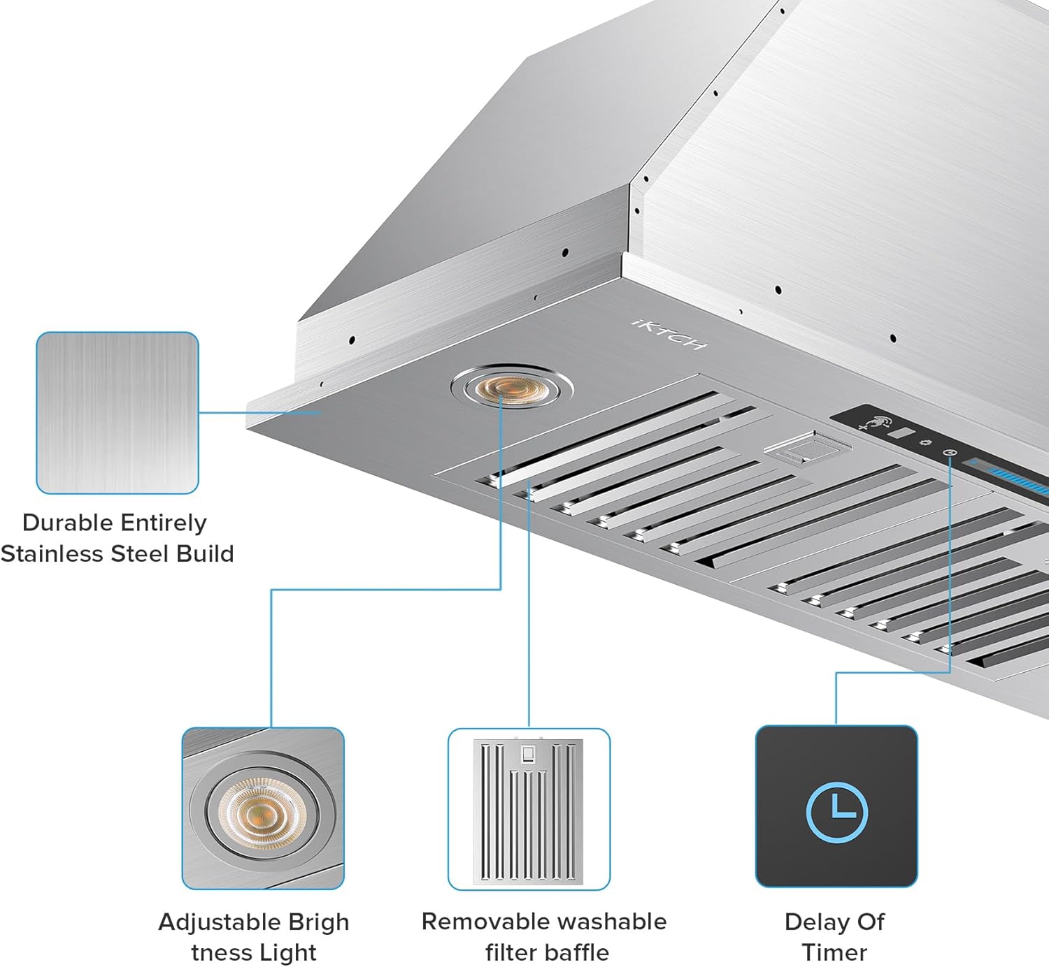 IKTCH 30" Built-in/Plug-in Range Hood 900 CFM, Ducted/Ductless Convertible Ducted, Stainless Steel Kitchen Range Hood