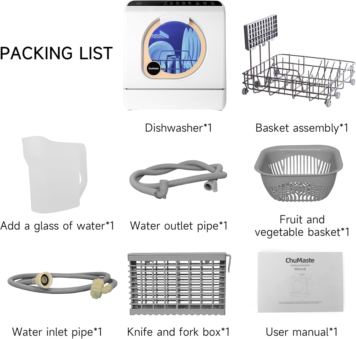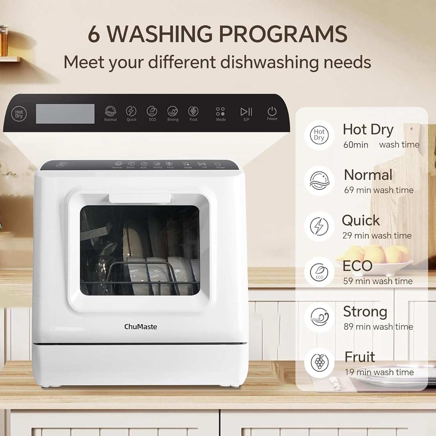 HAVA tabletop dishwasher, 6-program portable dishwasher with built-in 5-liter water tank