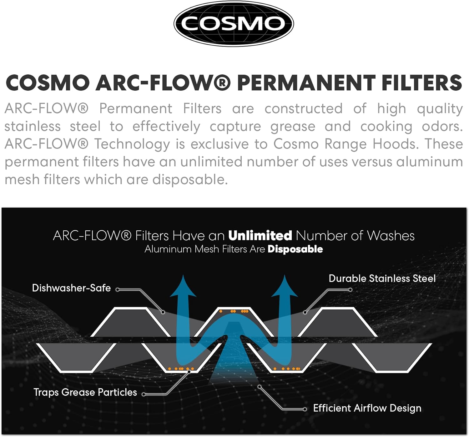 COSMO 30" Vista Series 380 CFM Ducted Wall-Mount Range Hood