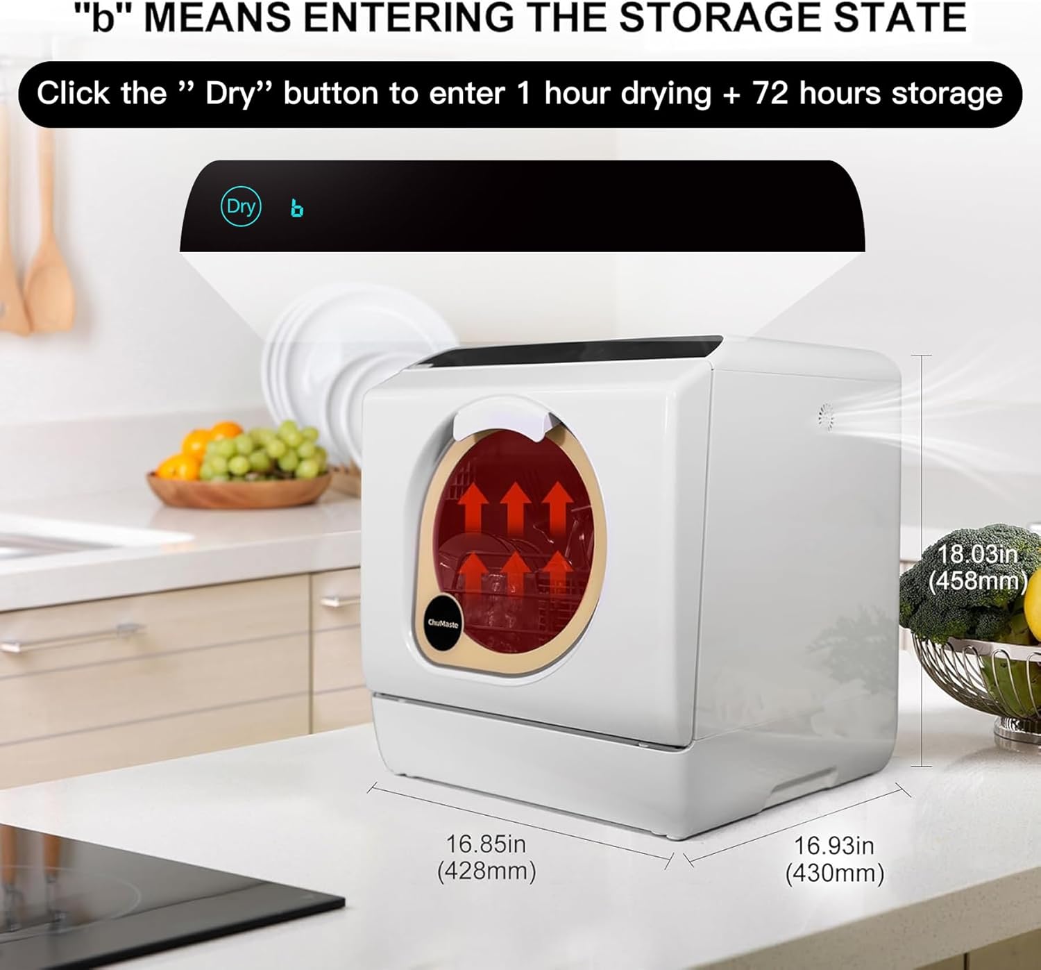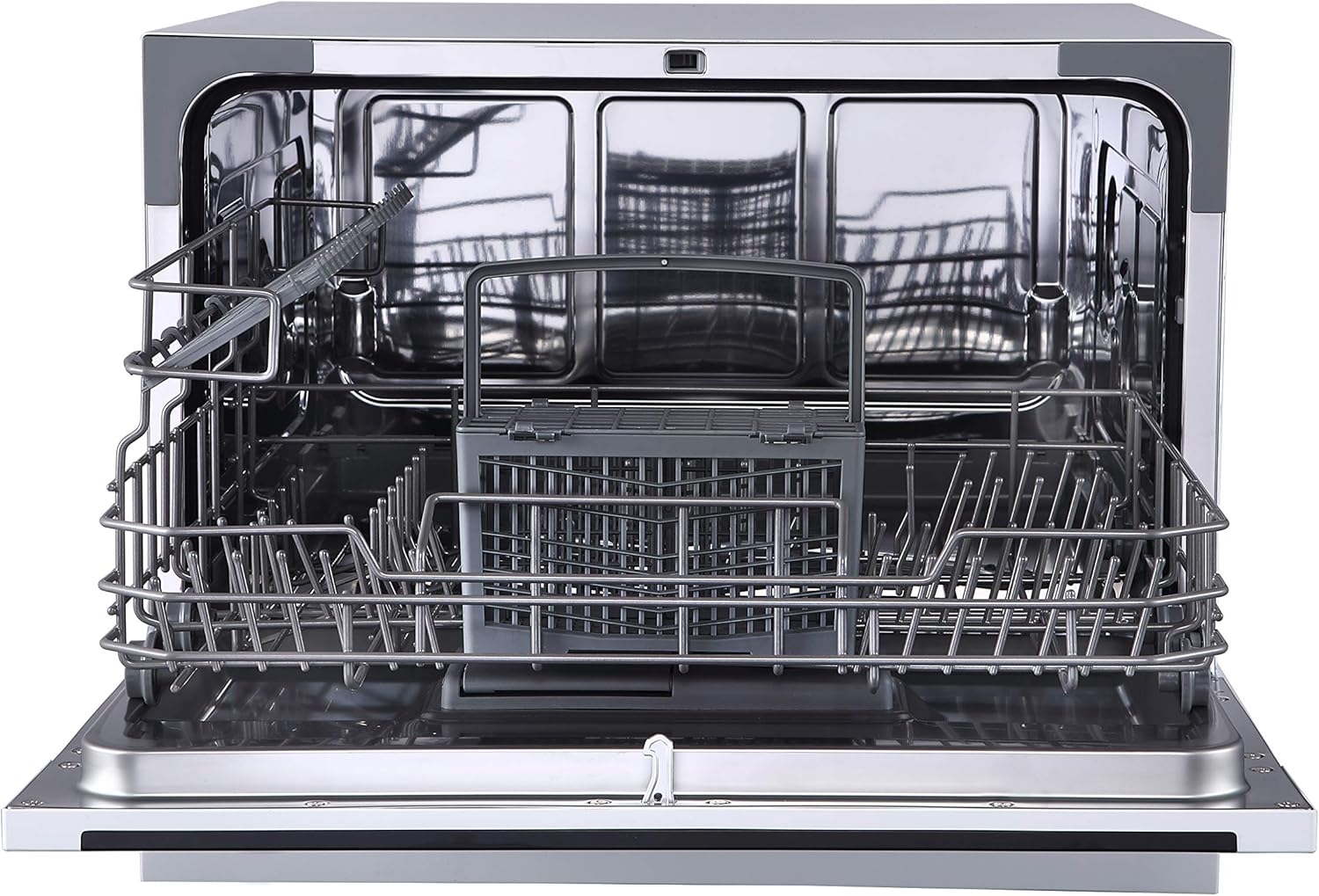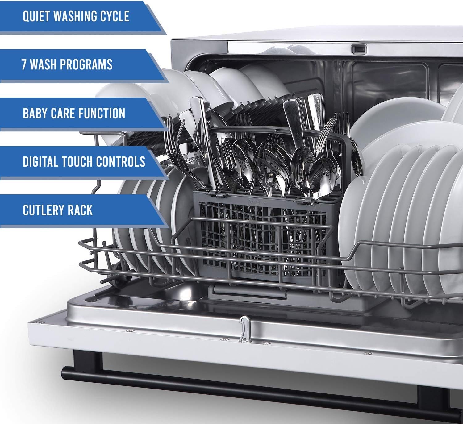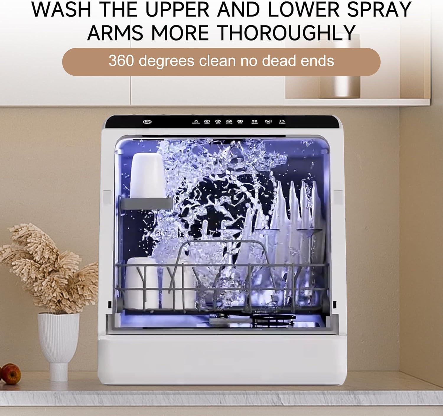 Mini countertop dishwasher. Compact dishwasher with drying function. Double spray arms. Portable countertop dishwasher