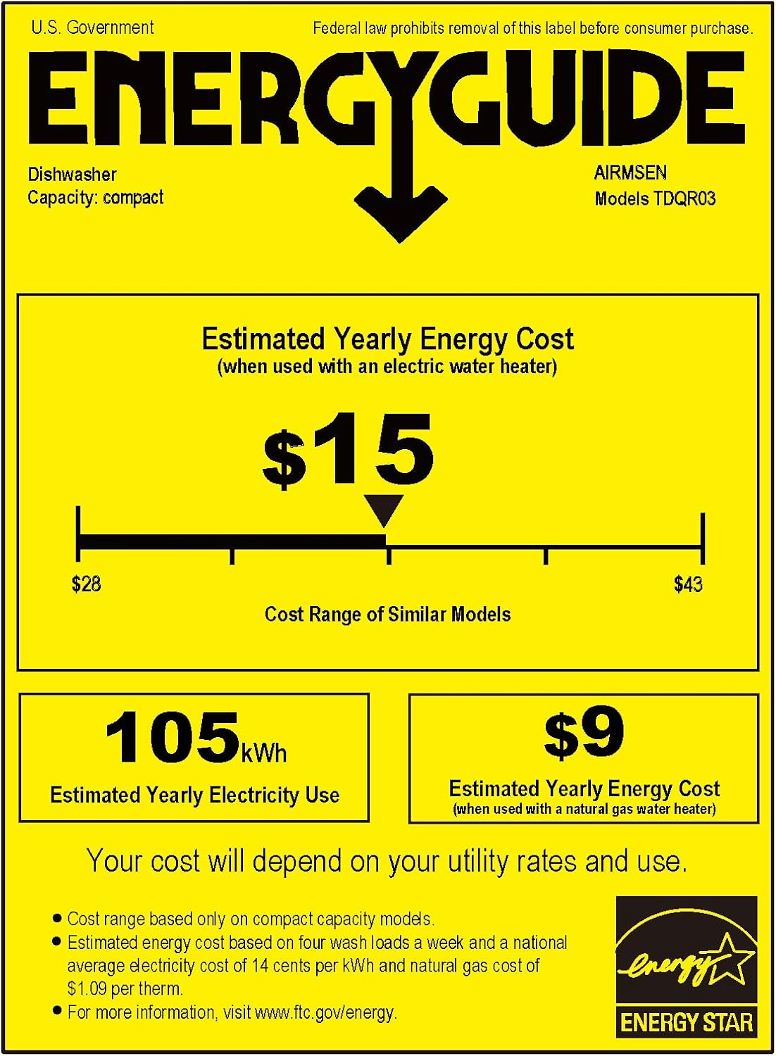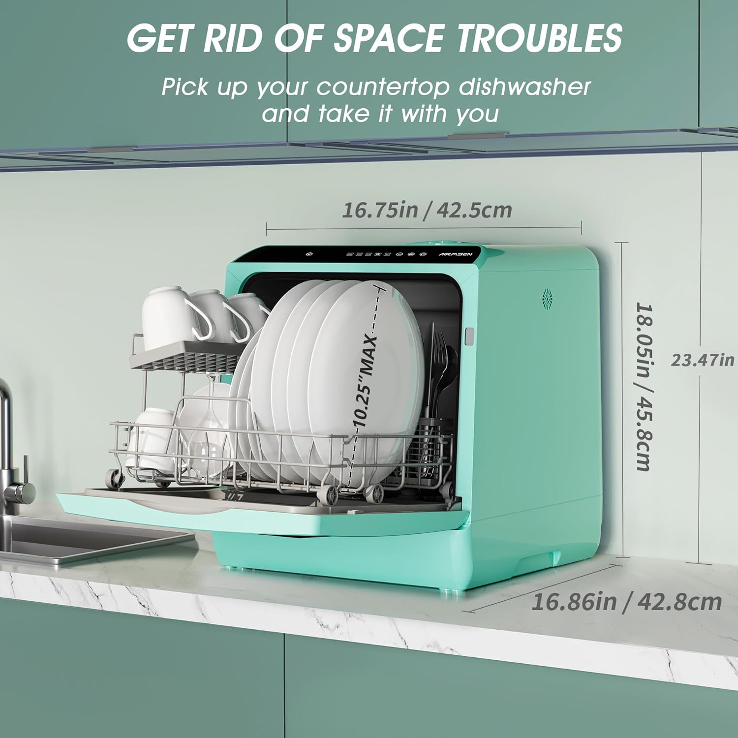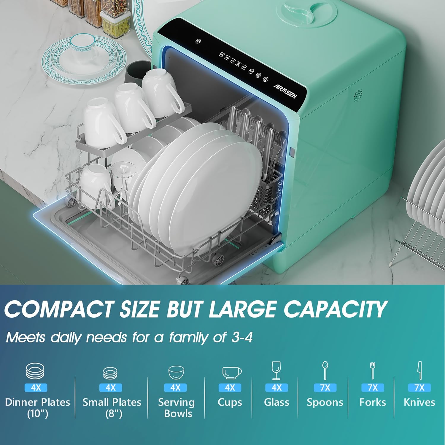 AIRMSEN portable tabletop dishwasher, 5 washing programs mini dishwasher
