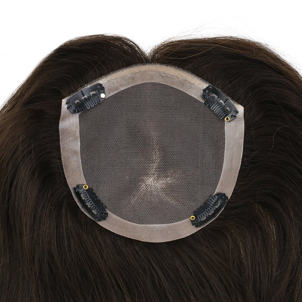 A Hair Top is a transformative hair accessory that is crafted to address thinning hair and provide voluminous coverage. It blends seamlessly with your existing hair while enhancing volume and texture. Our Hair Top features a breathable single-ply hair base to ensure a comfortable, natural look, while the 150% density creates a voluminous, fuller look. The unnoticeable hairline blends easily with your natural hair, ensuring seamless results. Our Hair Top is crafted to be the ultimate solution for those seeking to regain their confidence and achieve a perfectly natural look.