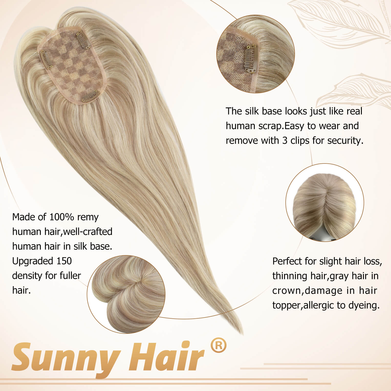 Highlighted blonde single top hair piece with light pink blonde clips