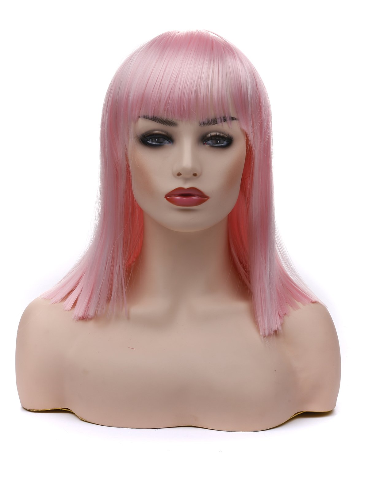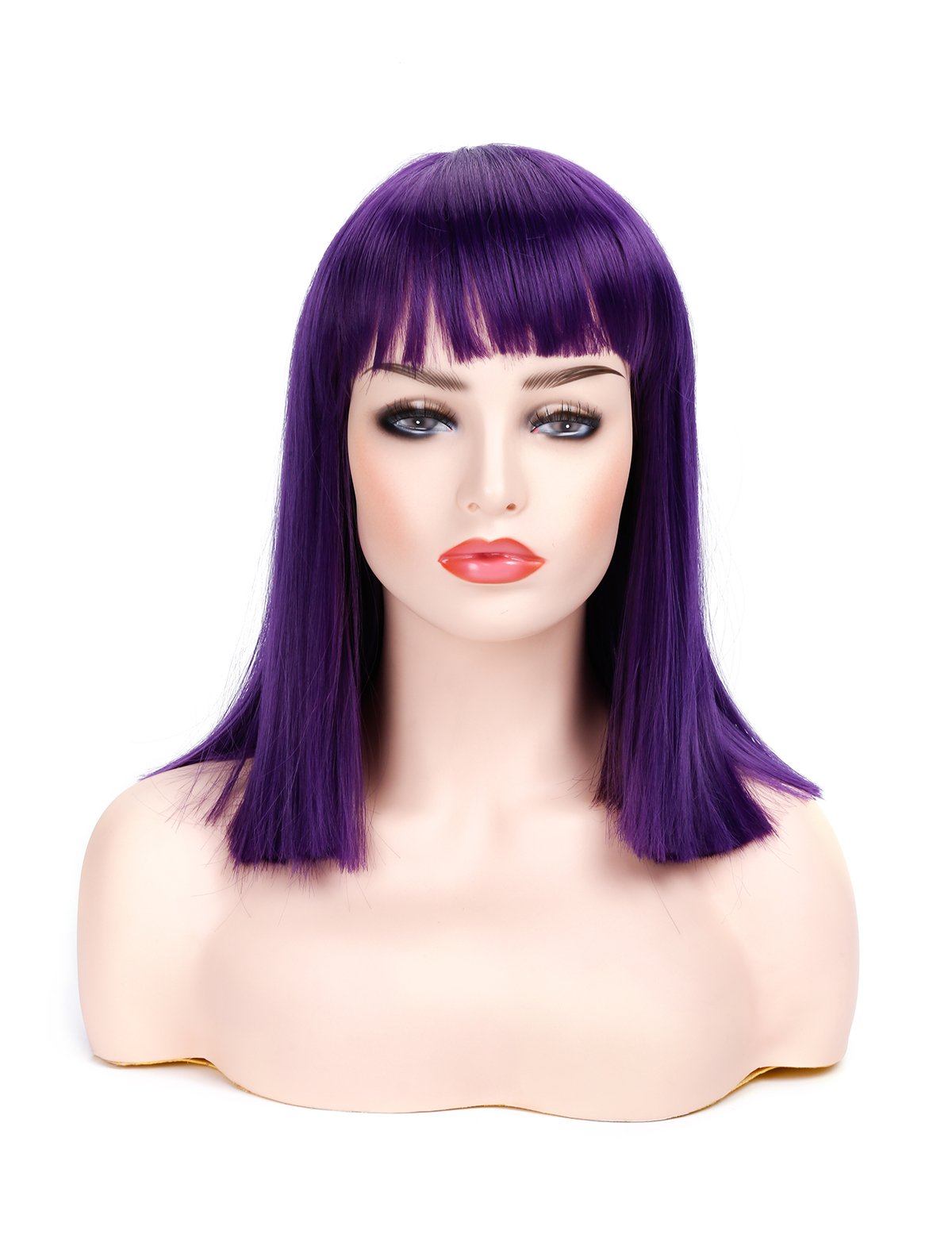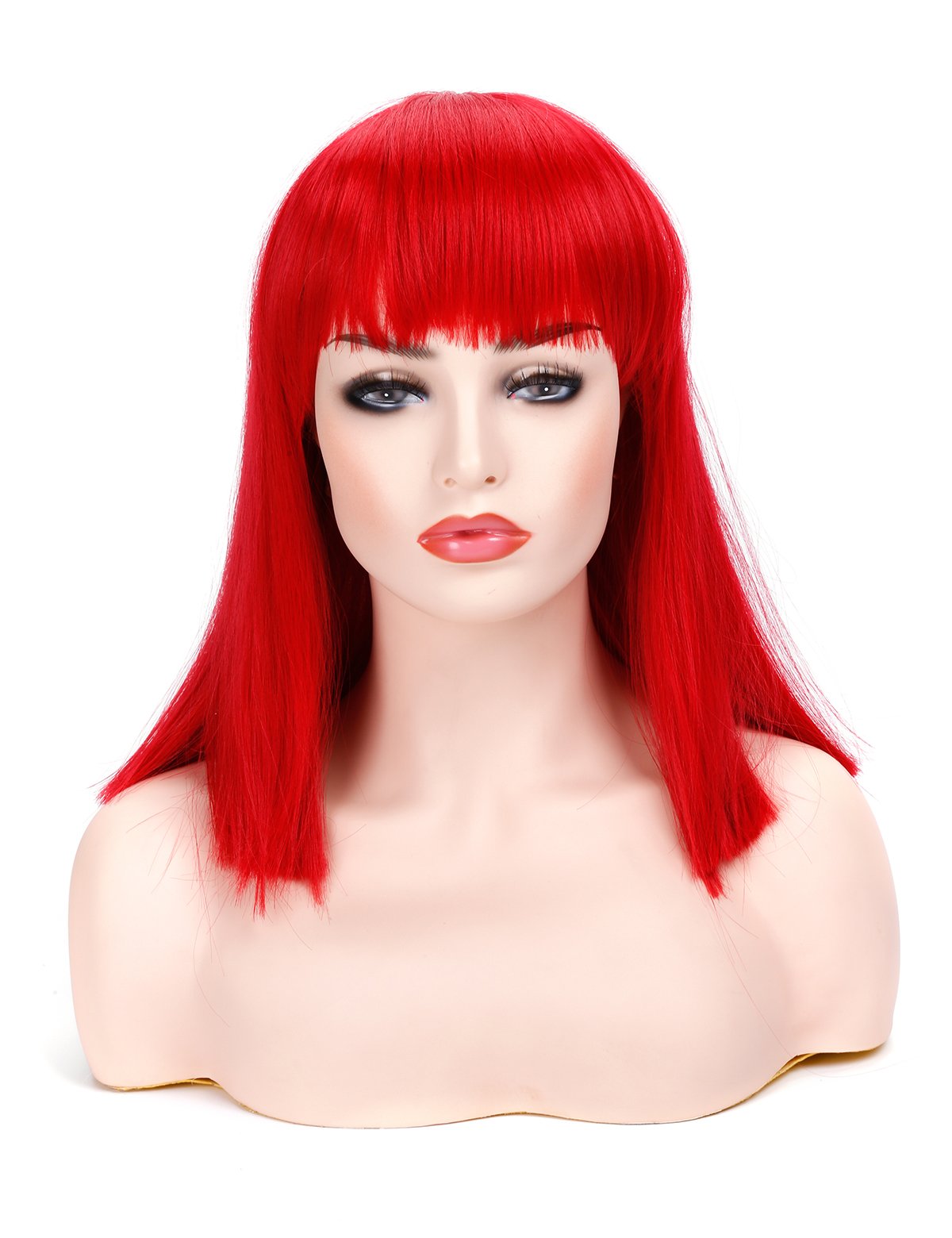 Short Straight Black Wig with Bangs Natural Looking Heat Resistant Hair Cosplay Costume Wigs