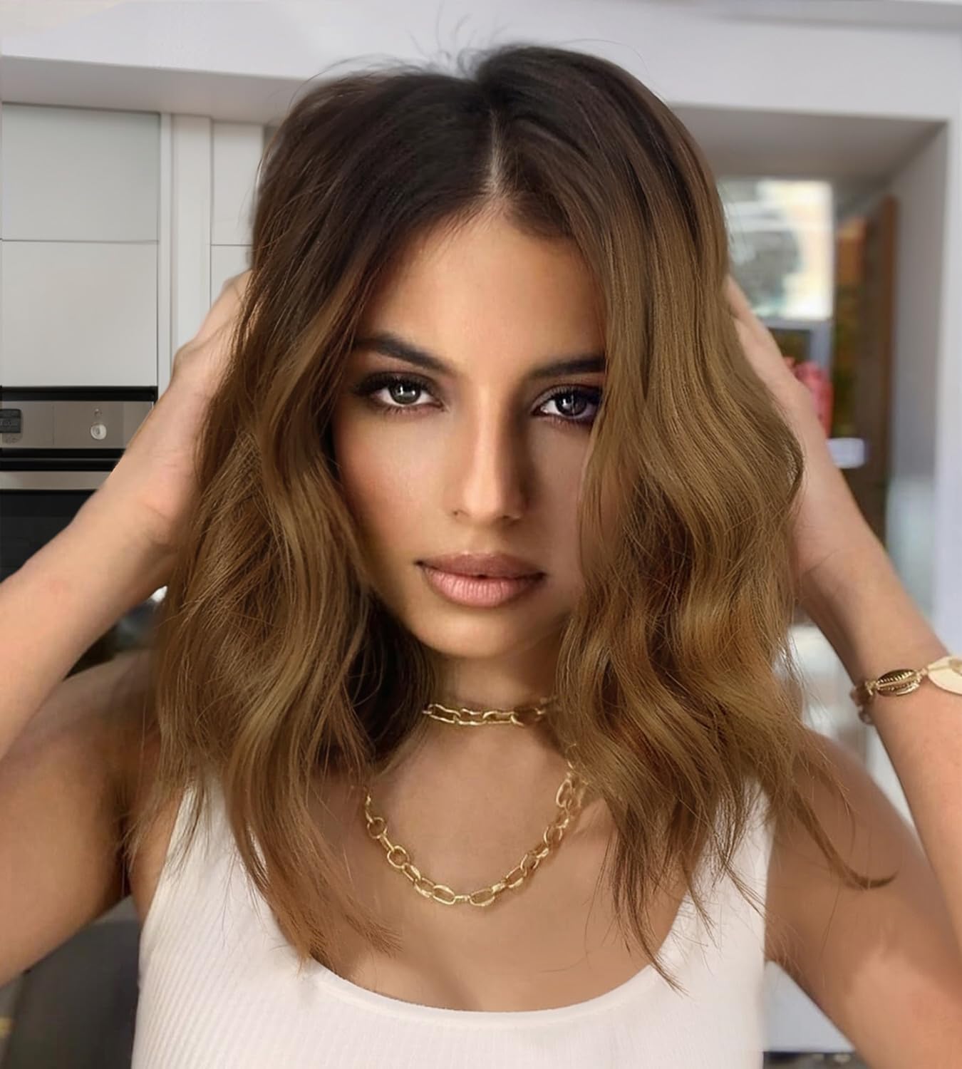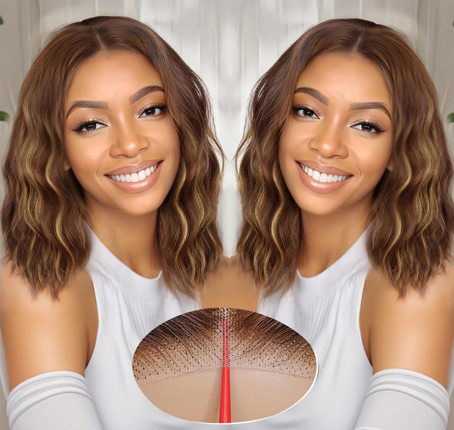 HD Lace Brown Highlights Short Bob Wig 14-inch Curly Wig Synthetic Wig