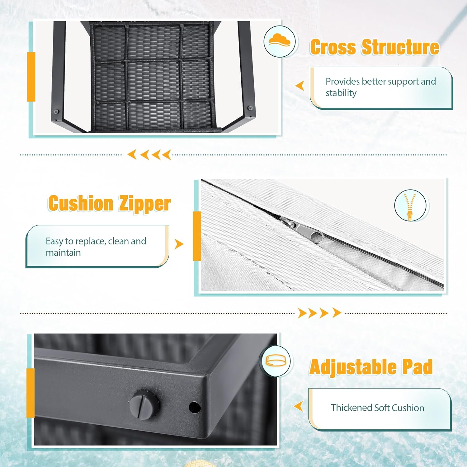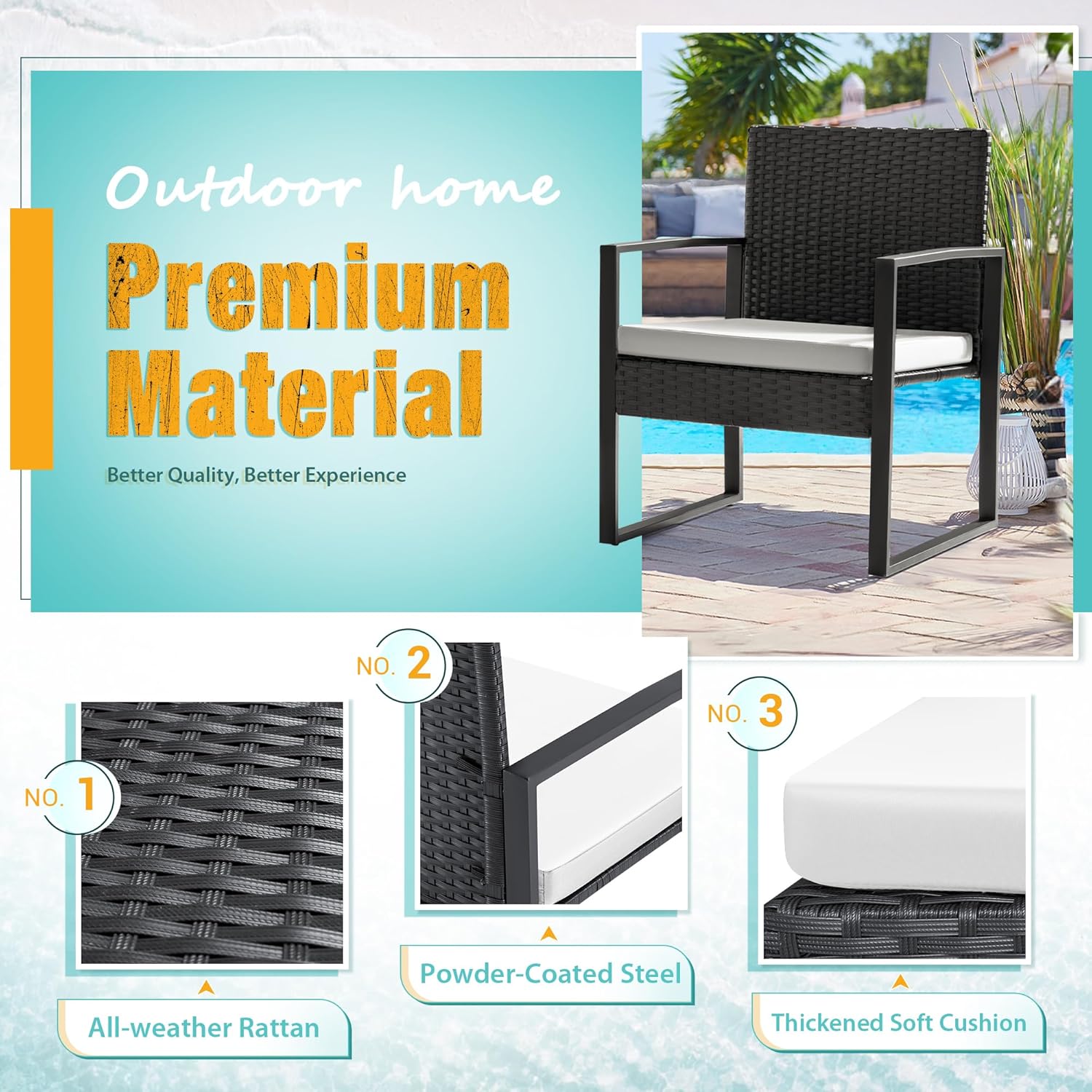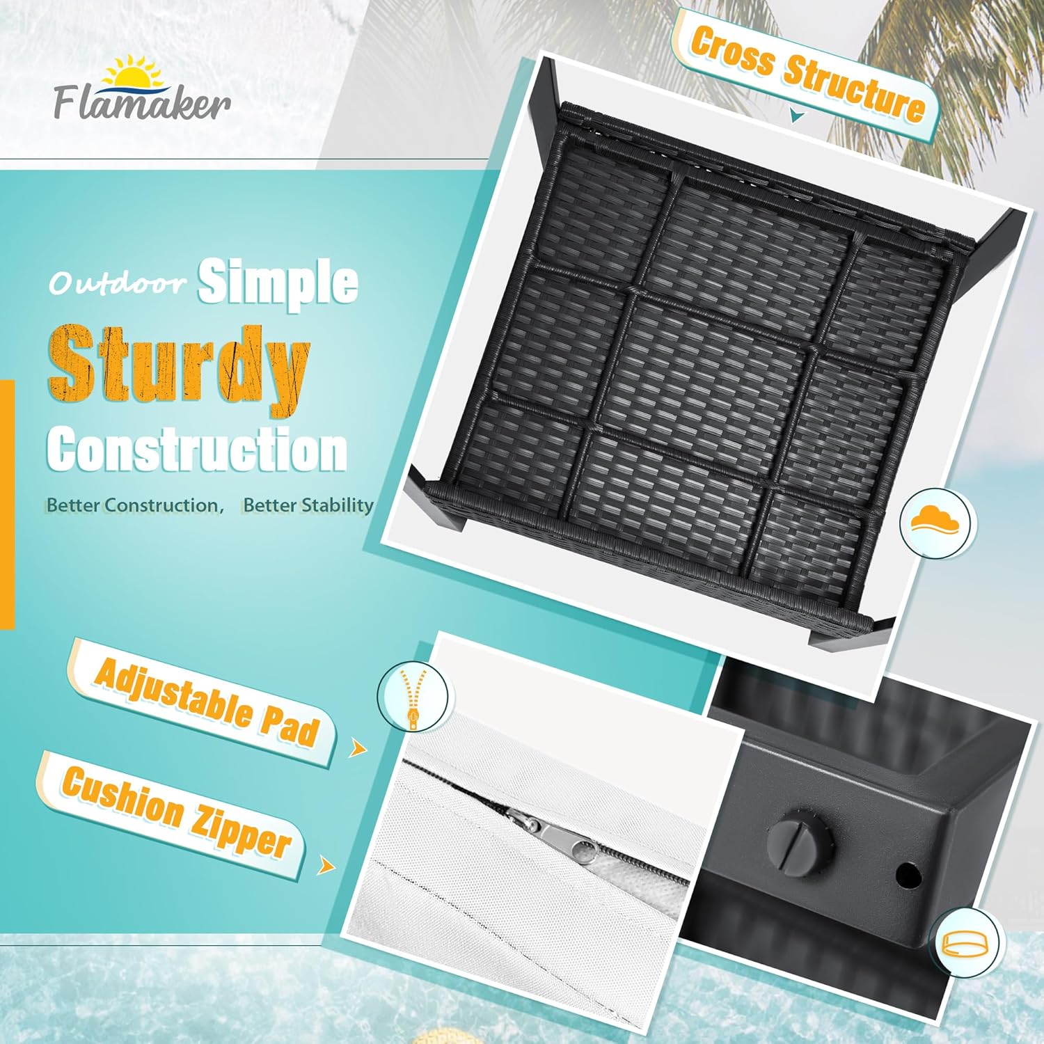 Flamaker 3 Pieces Patio Set Outdoor Wicker Furniture Sets Modern Rattan Chair Conversation Sets with Coffee Table for Yard and Bistro (Black)