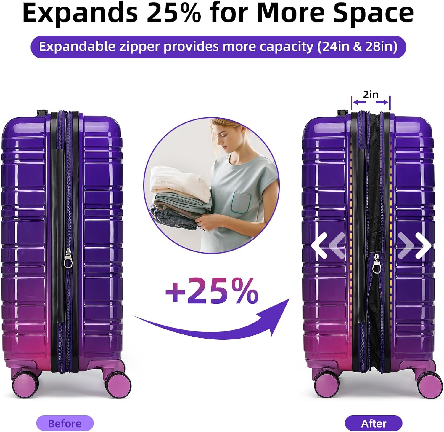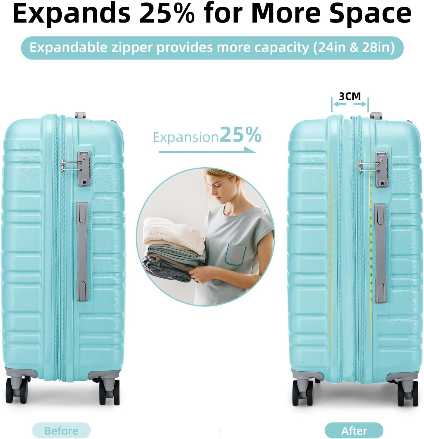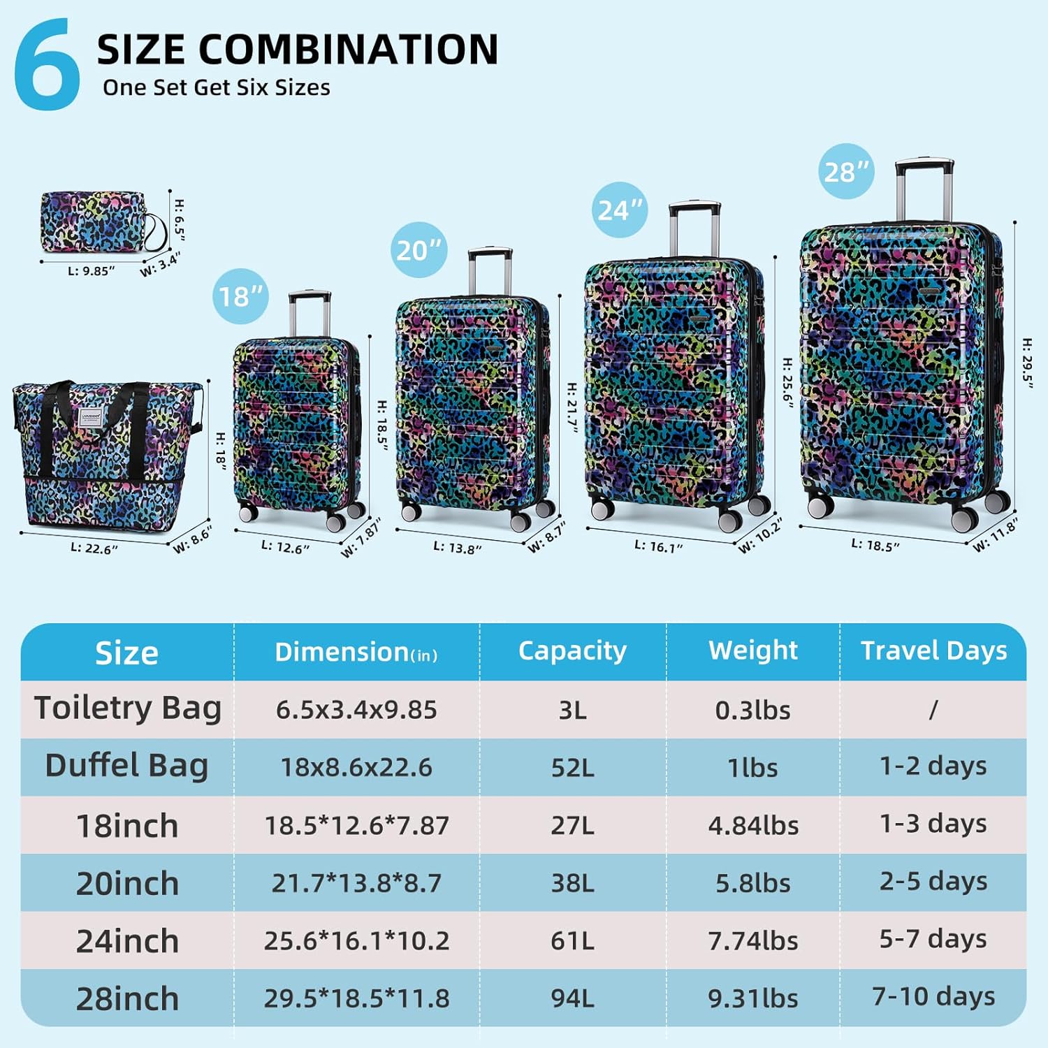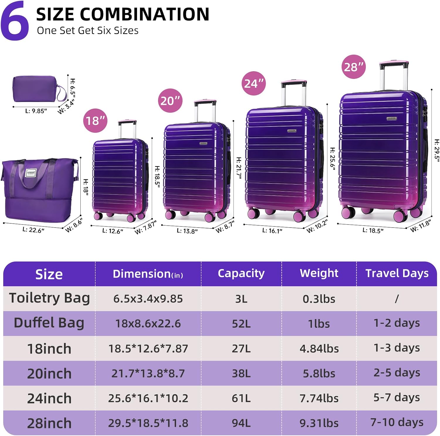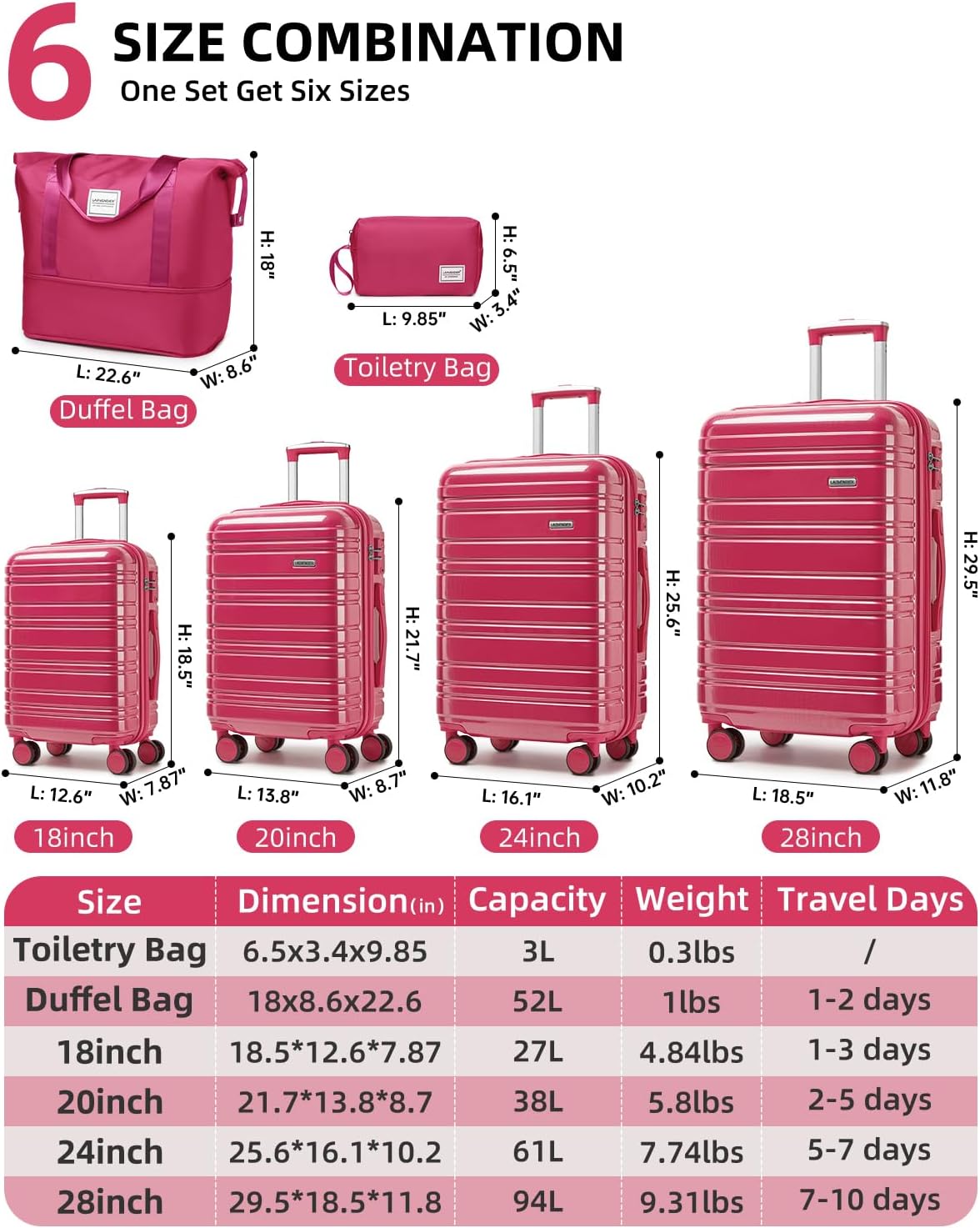 6-piece luggage set, expandable hardshell suitcase set with spinner wheels, lightweight rolling luggage set