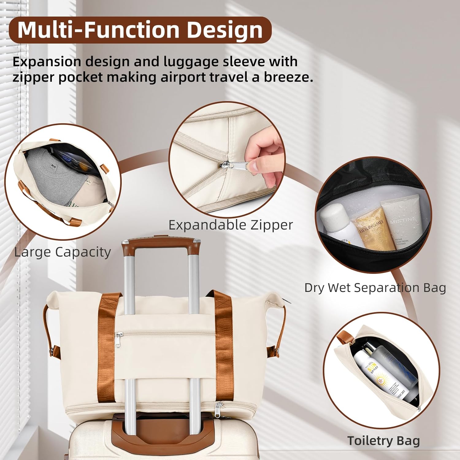 This duffle bag and small makeup bag deliver roomy main compartment to store your clothes and items.