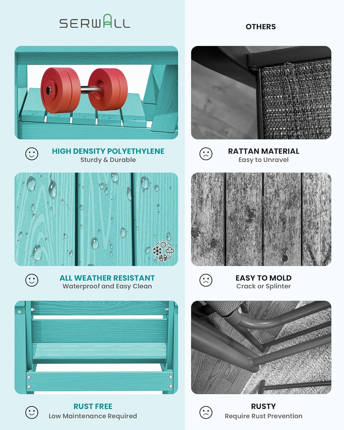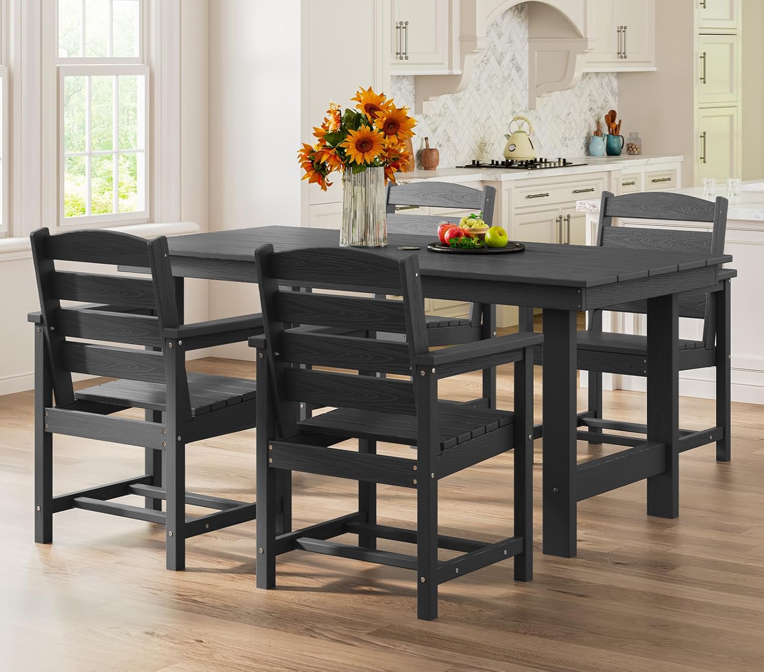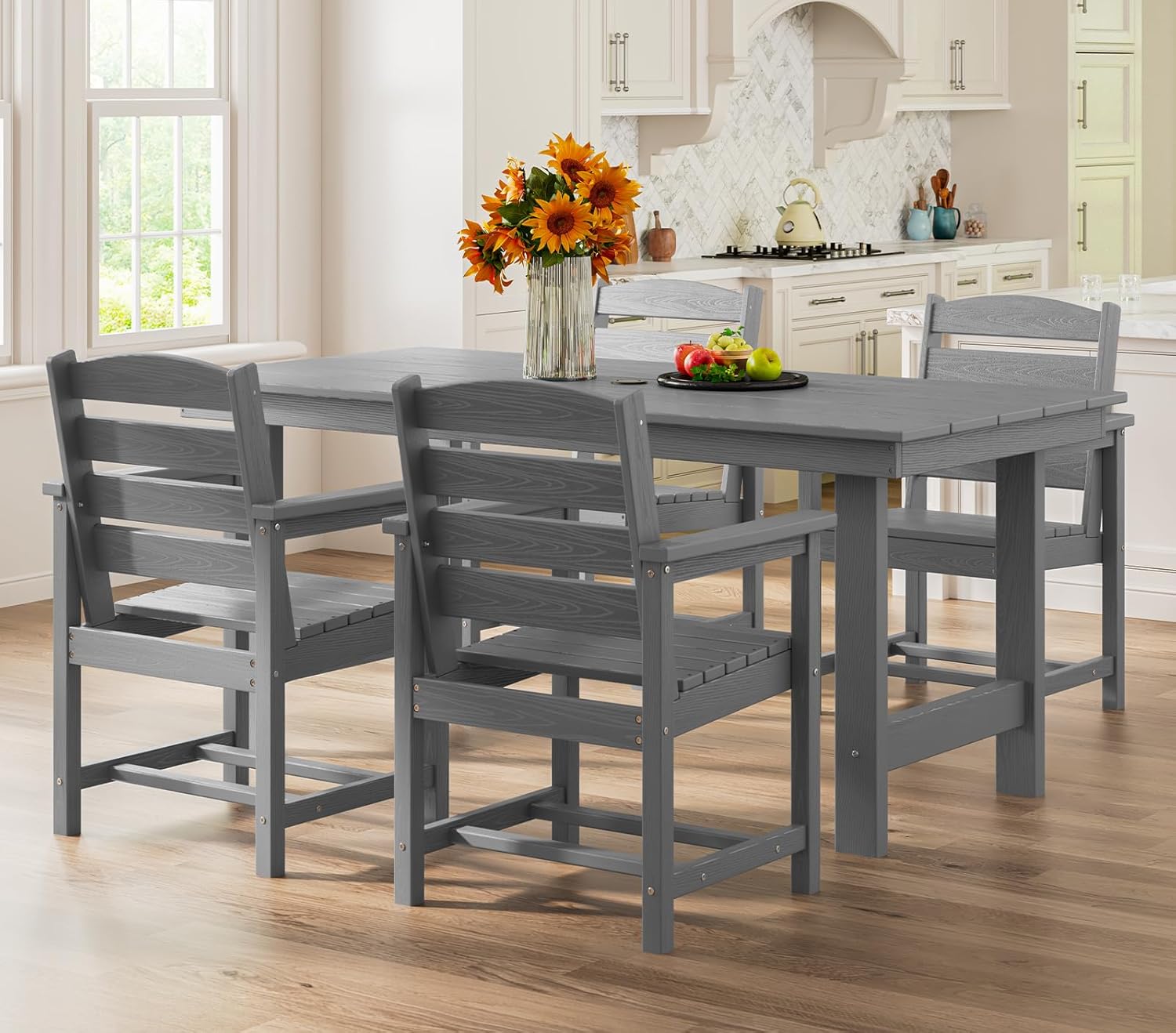 Outdoor HDPE Dining Table Set, 7-Piece Outdoor Dining Table Sets with Umbrella Hole Cut-Out Table and 6 Chairs