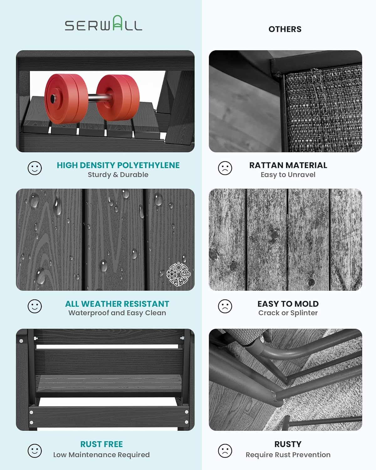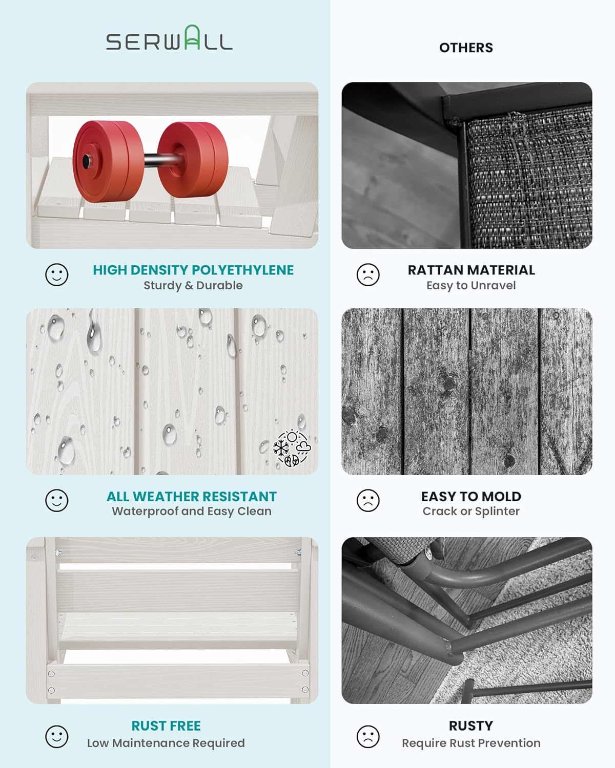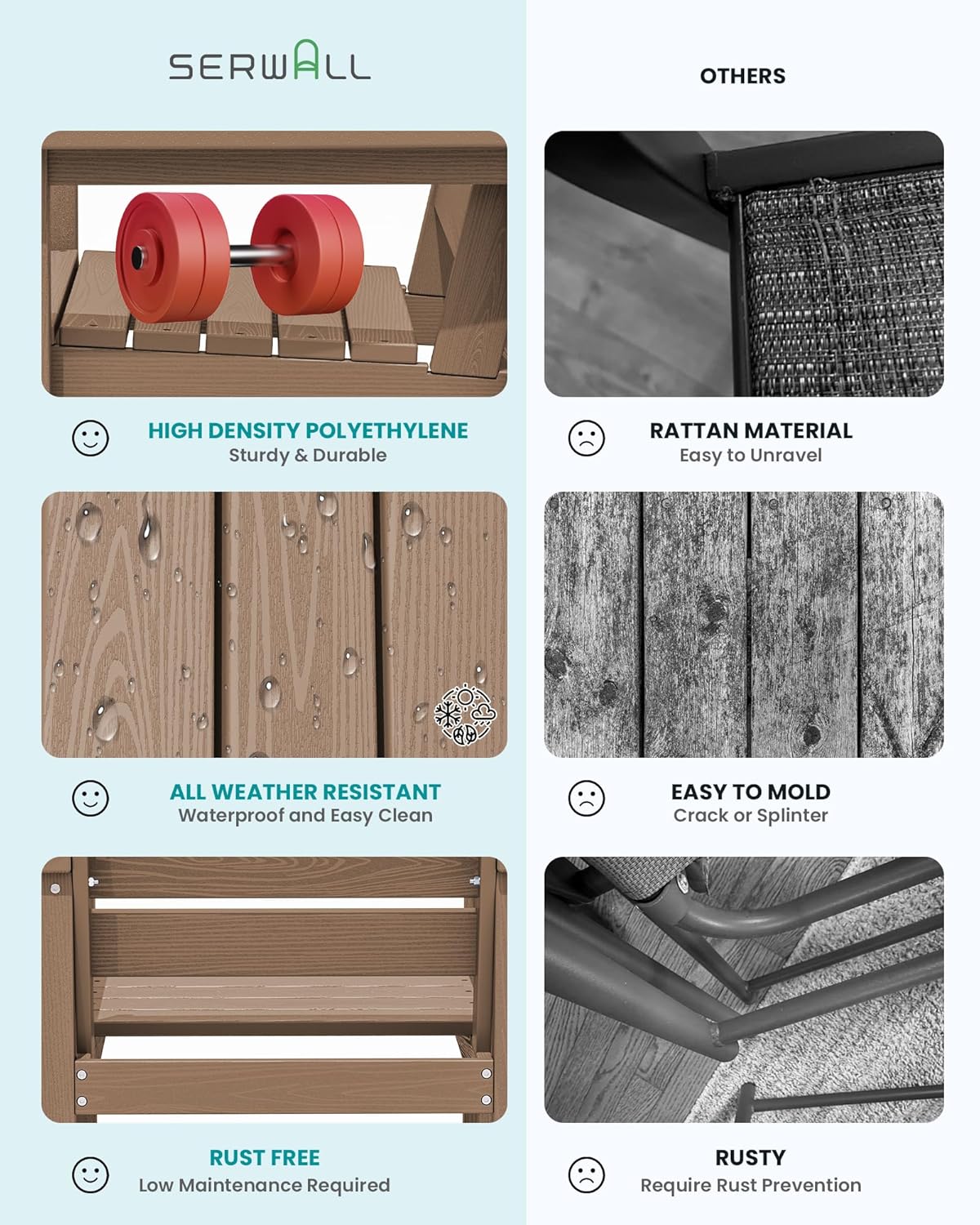 Outdoor HDPE Dining Table Set, 7-Piece Outdoor Dining Table Sets with Umbrella Hole Cut-Out Table and 6 Chairs