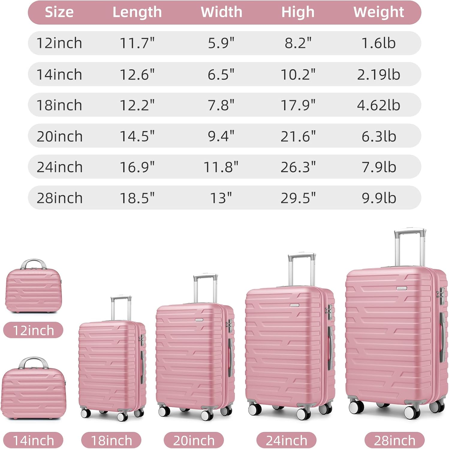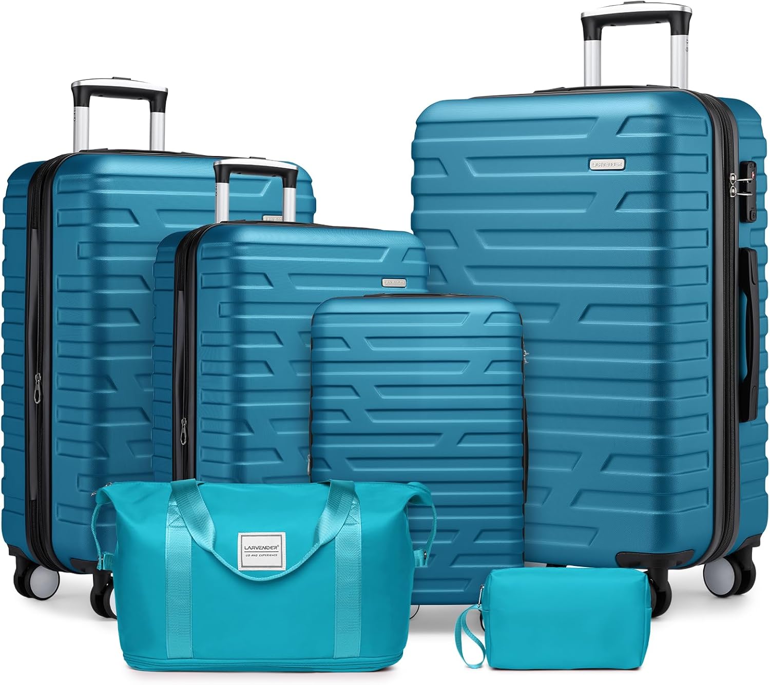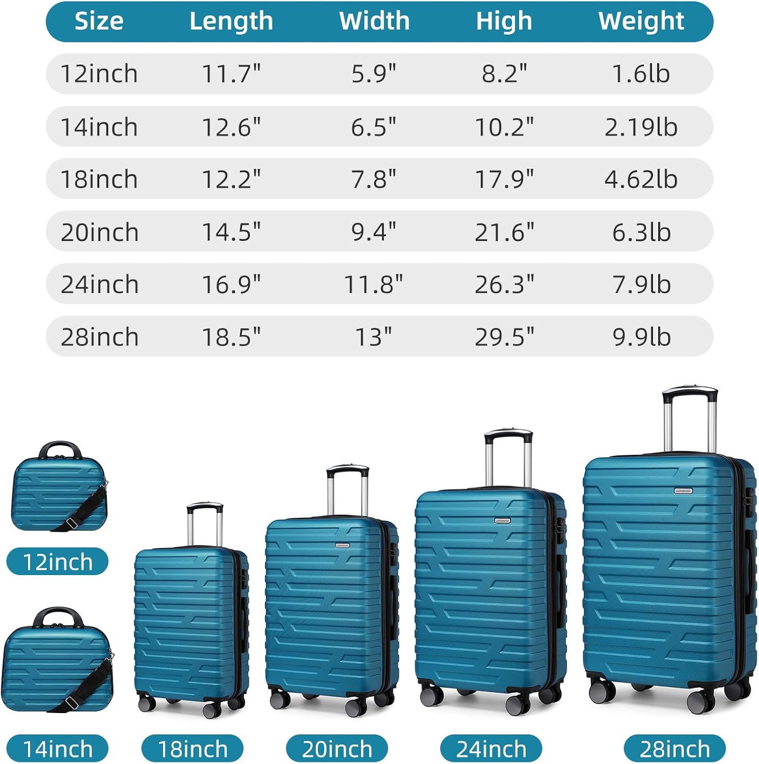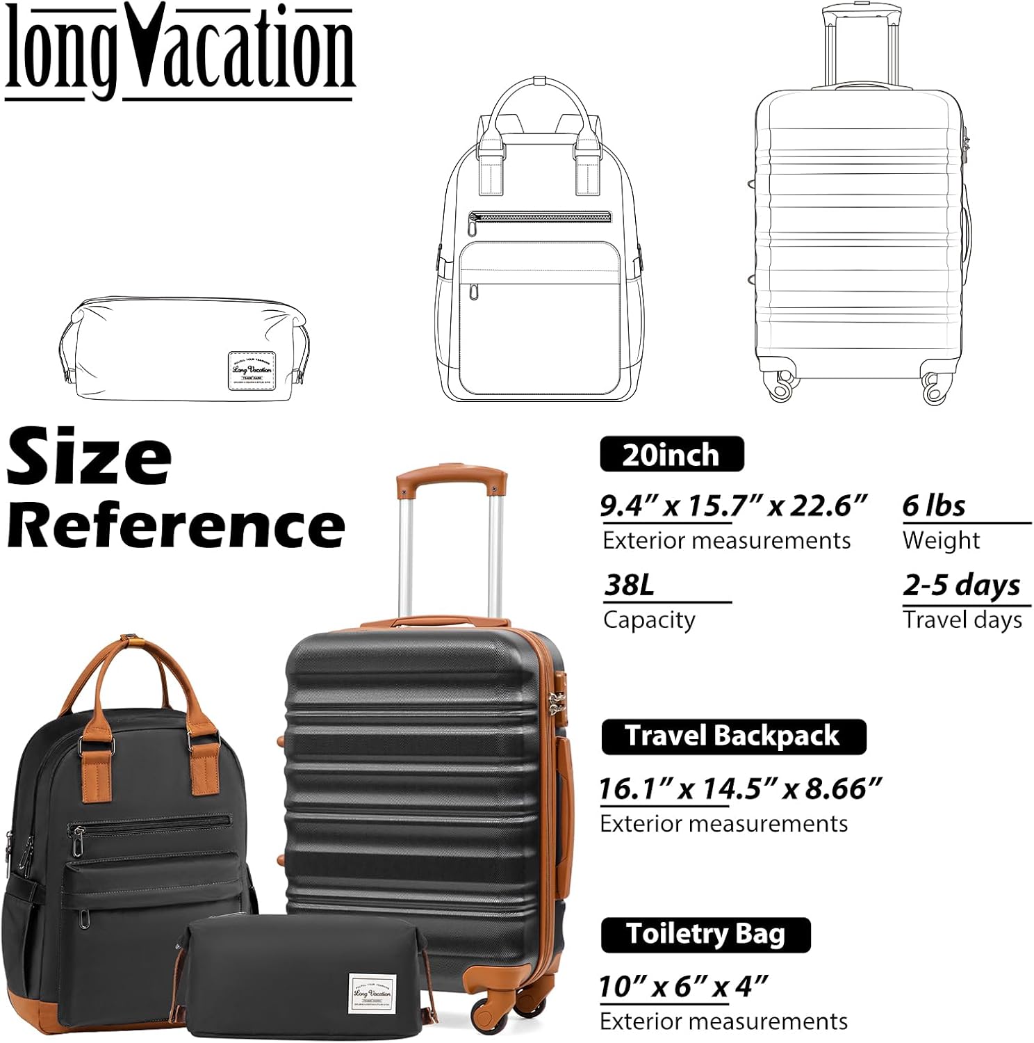 LONG VACATION 6 Piece Luggage Set Carry on Suitcase with ABS+PC hardshell, Spinner Wheels & YKK Zipper TSA Lock