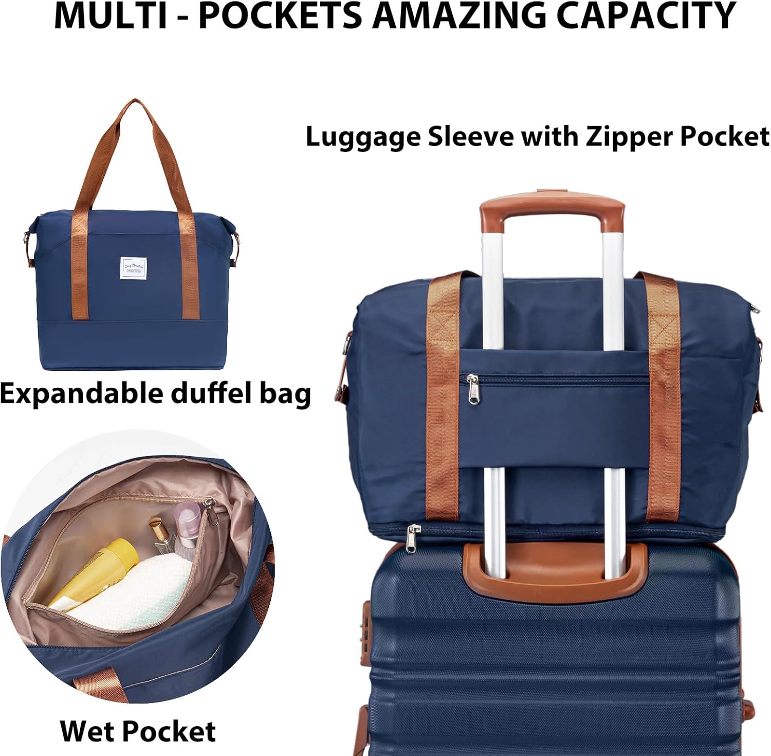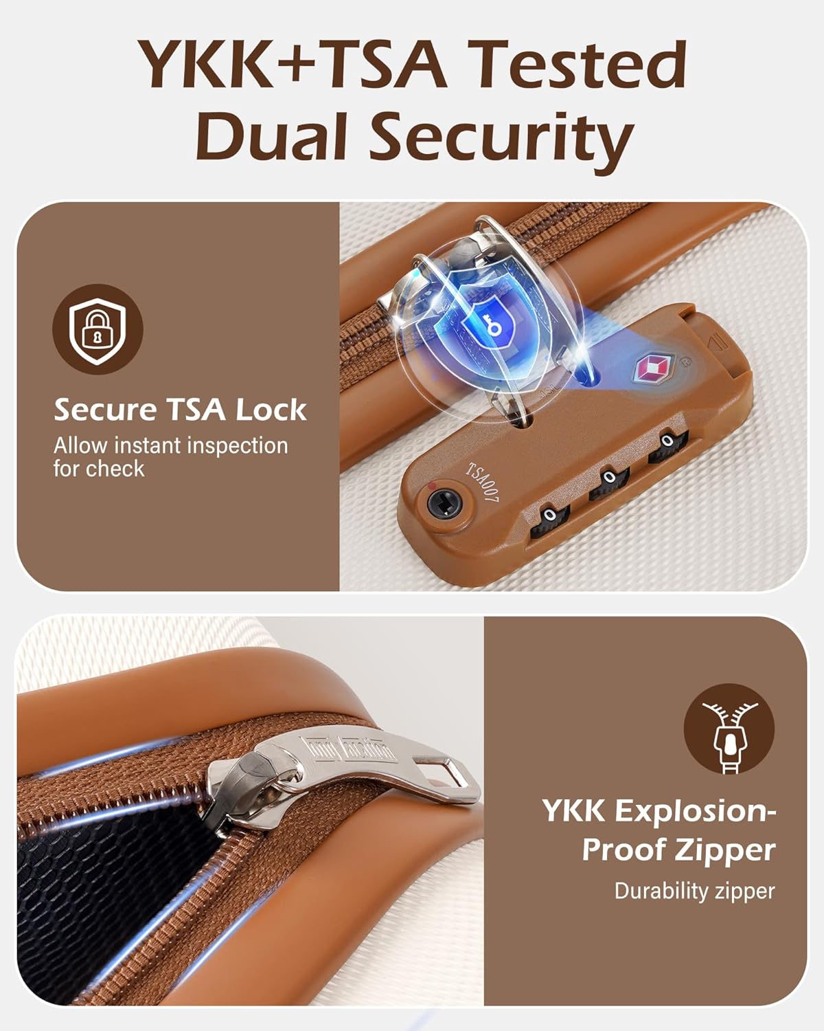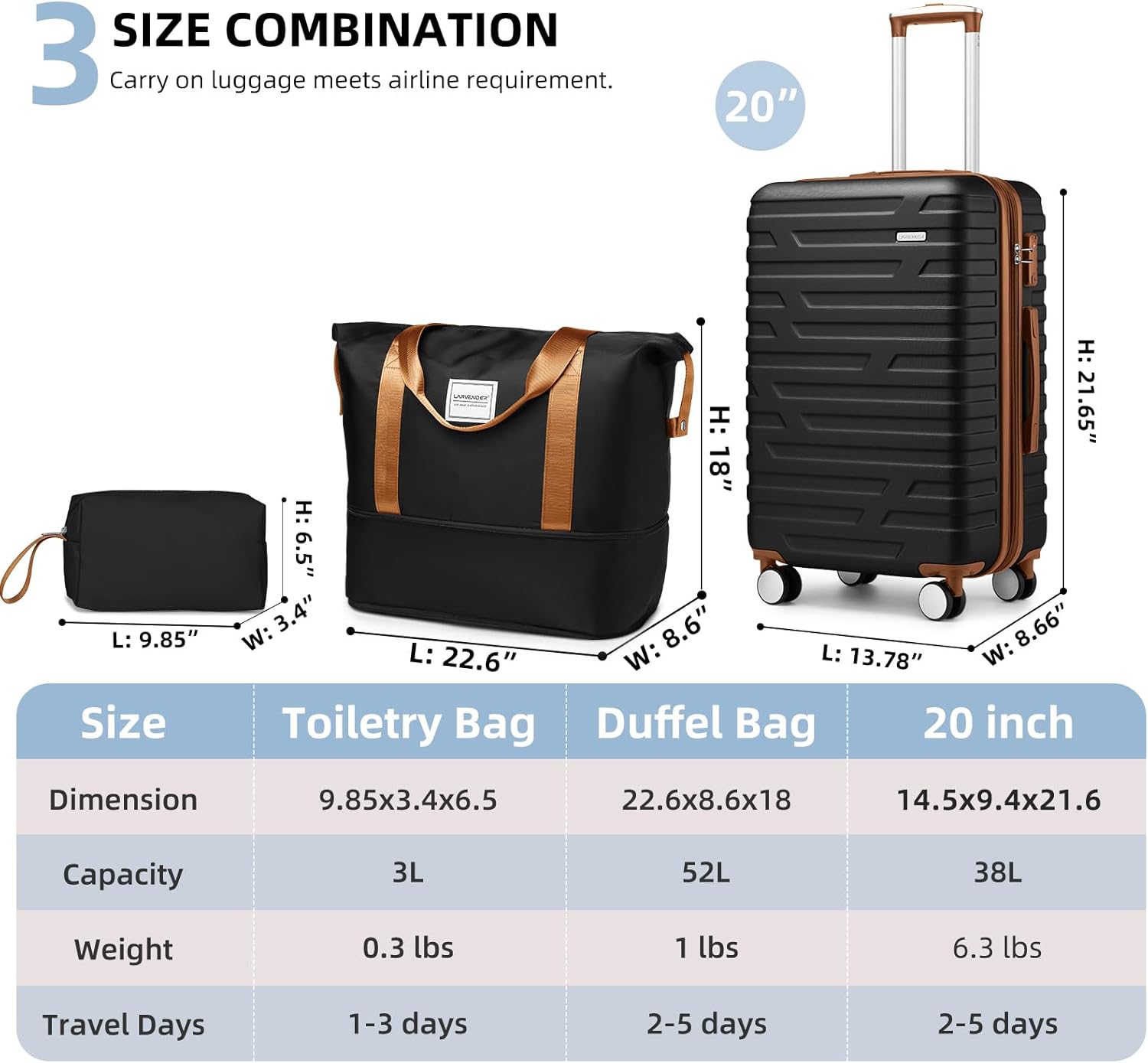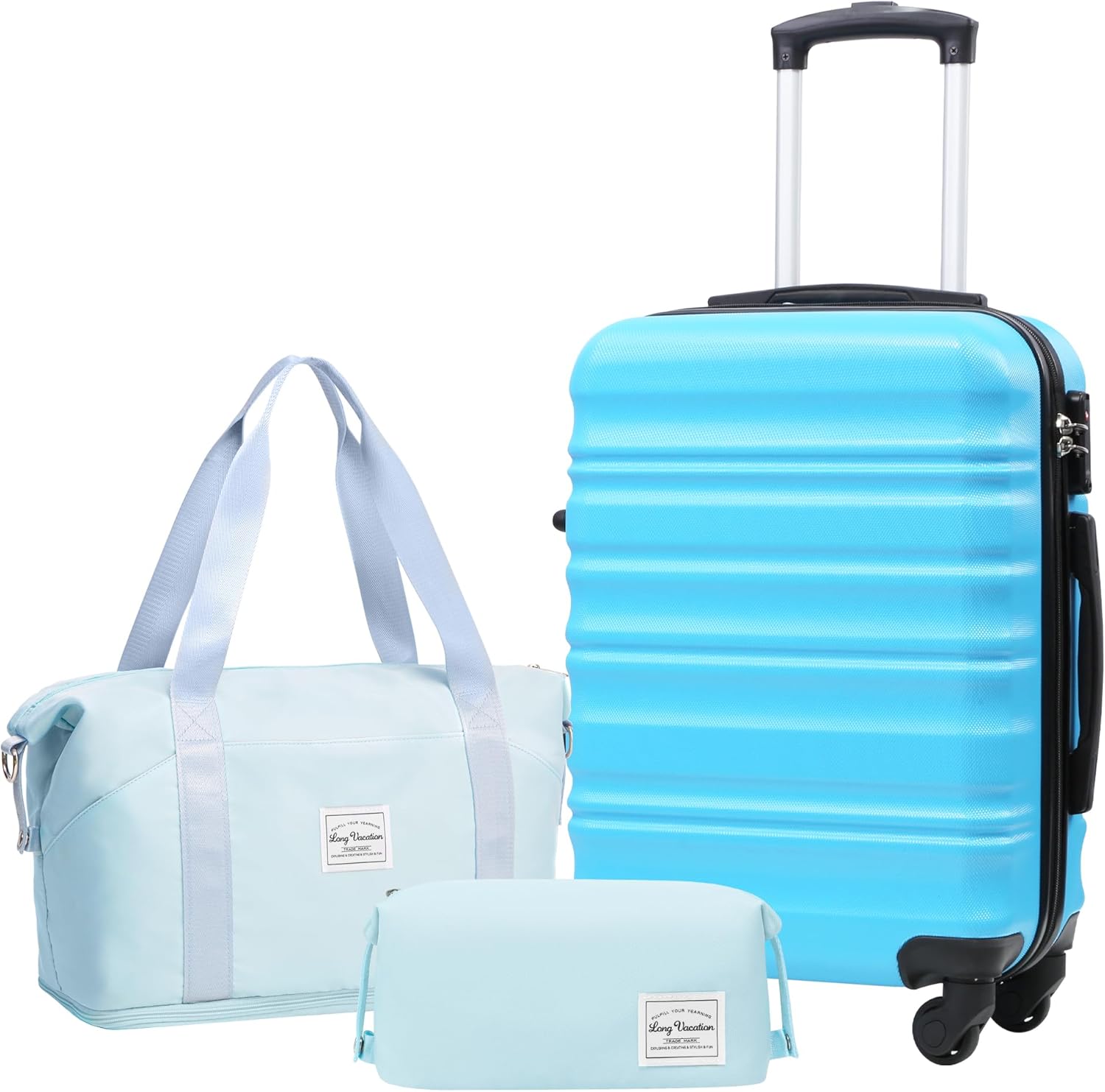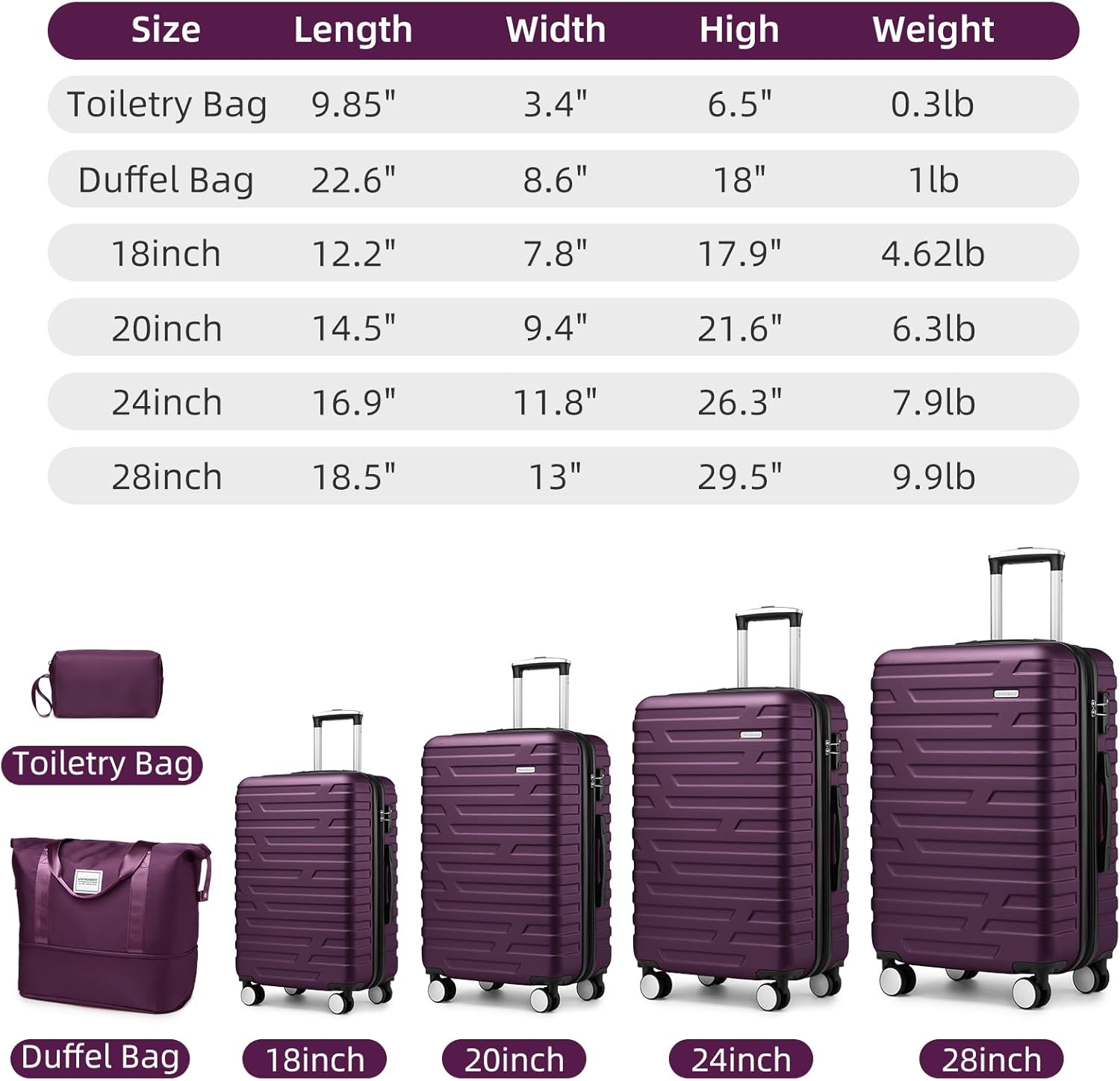 LONG VACATION 6 Piece Luggage Set Carry on Suitcase with ABS+PC hardshell, Spinner Wheels & YKK Zipper TSA Lock