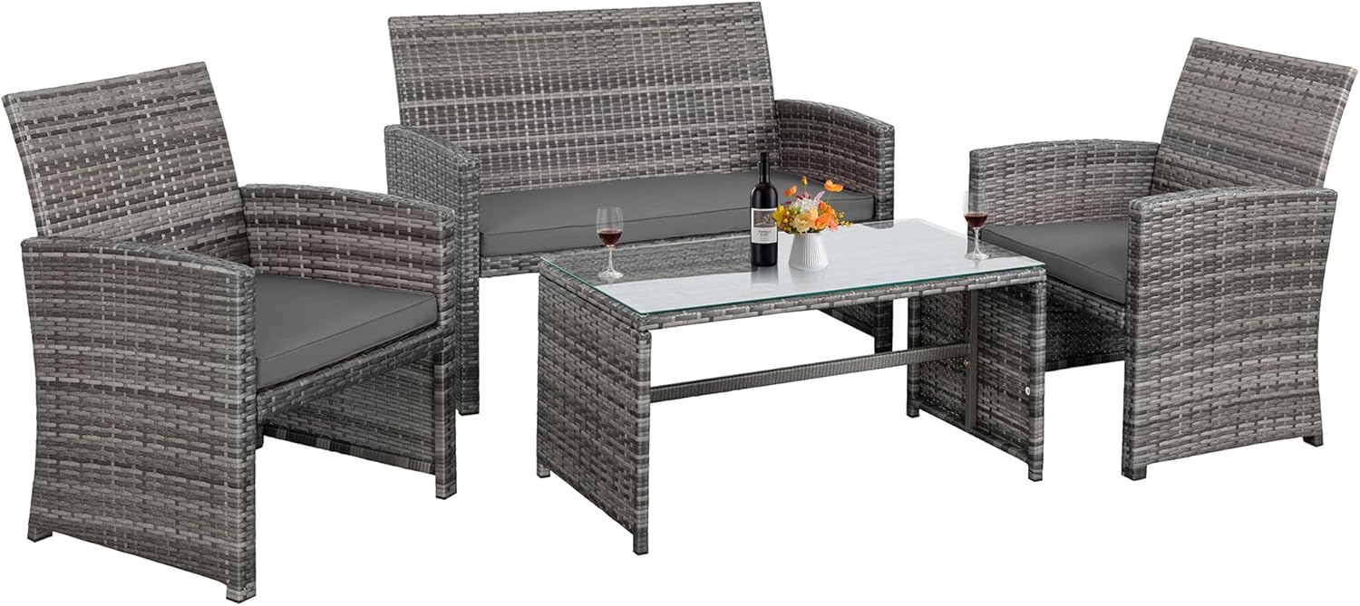 Homall 4-piece outdoor patio furniture set rattan chair wicker set