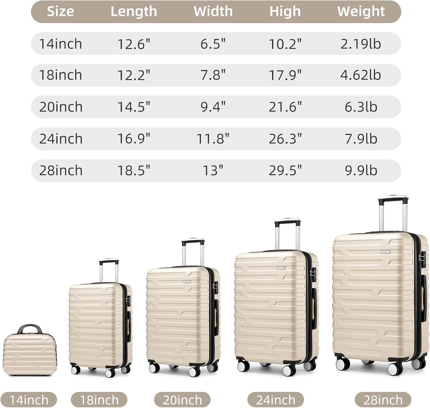 Luggage Sets 5 Piece Suitcases with Wheels, Suitcase Set ABS Hard Case Luggage