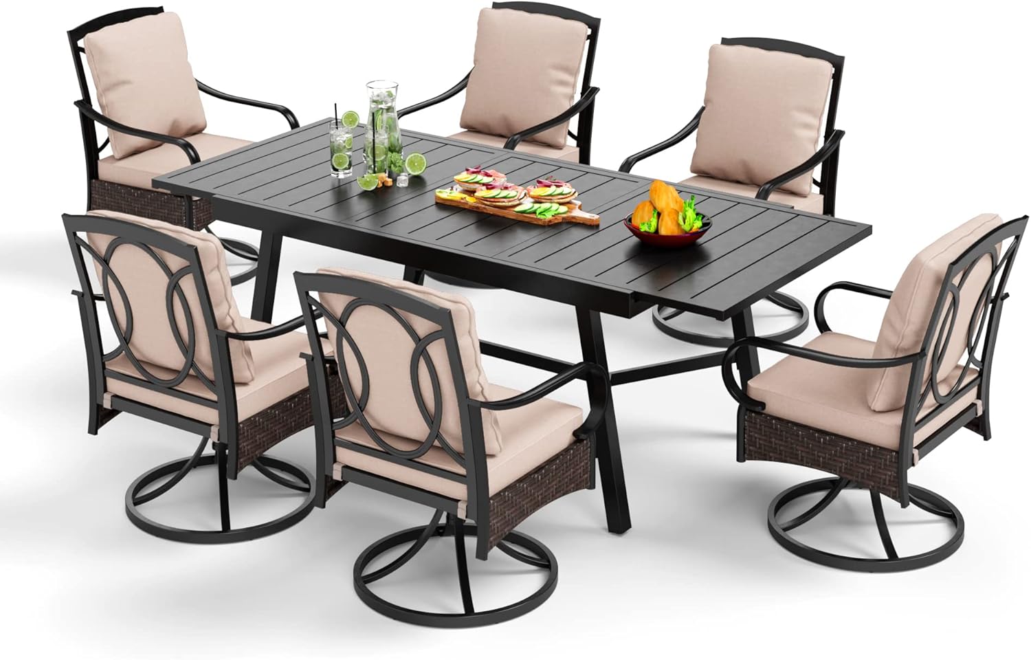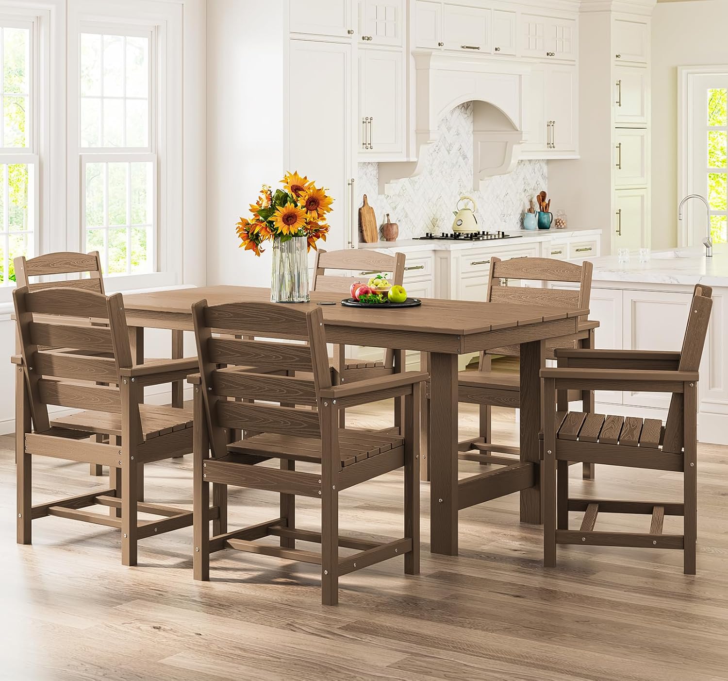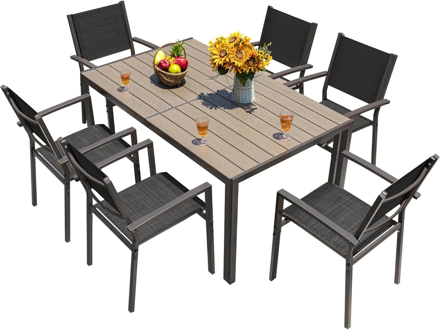 Homall Patio Dining Set 7 Pieces Outdoor Furniture with Large Table and 6 Textilene Chairs for Porch, Brown