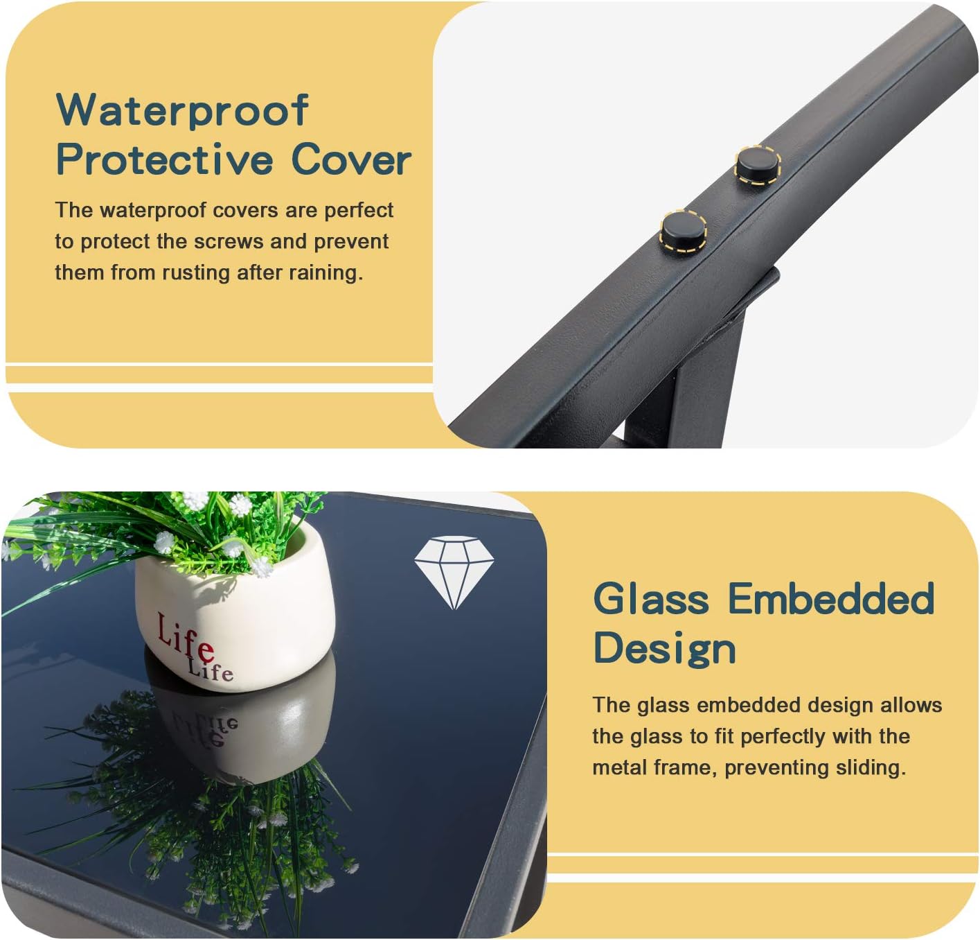Sweetcripy Patio Furniture Set 3 Pieces, Outdoor Furniture with Soft Cushion and Glass Table, All Weather Manual Weaving Wicker Rattan Patio Chairs for Garden, Terrace, Porch(Black and Beige)