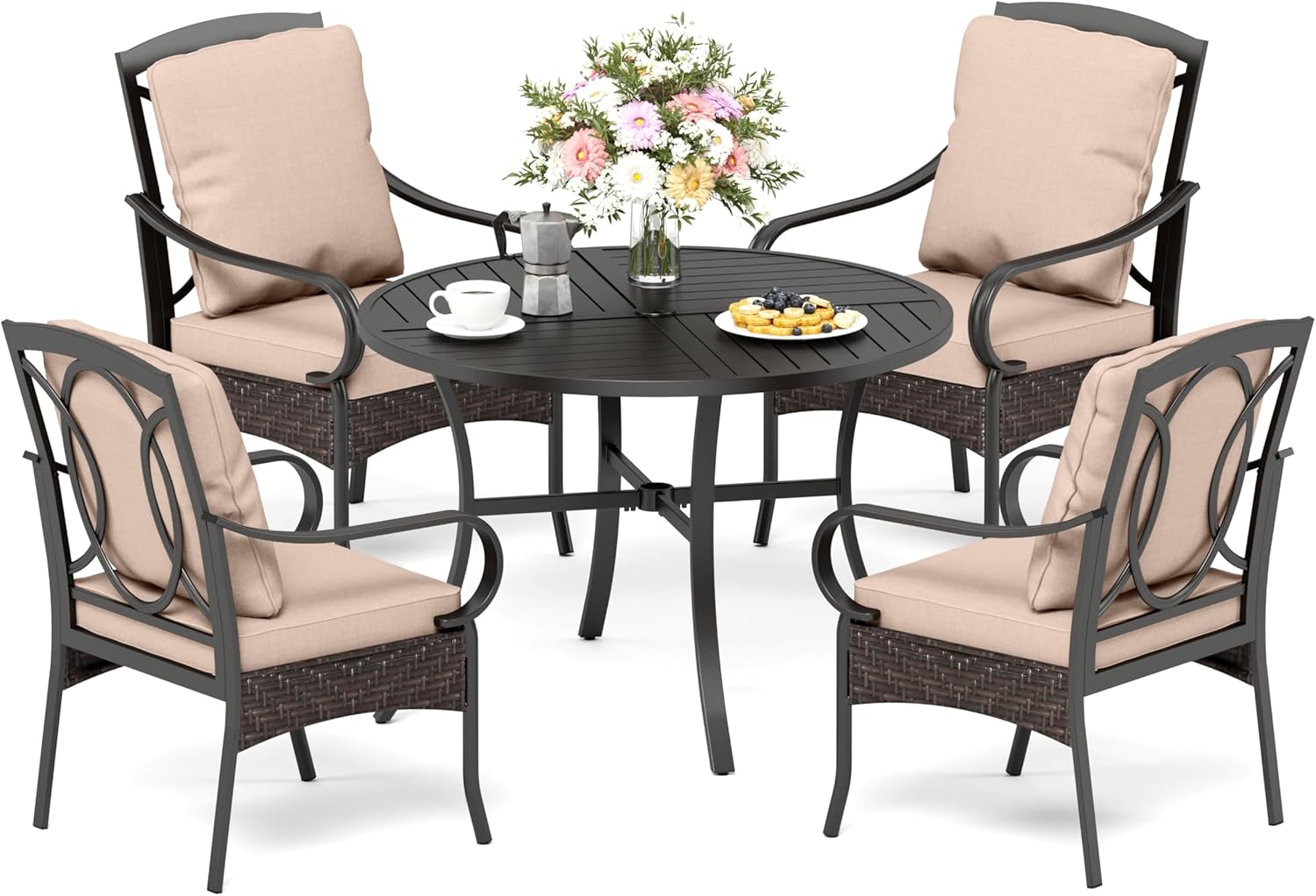 NATURAL EXPRESSIONS 5-Piece Outdoor Patio Dining Set, 4pcs Patio Swivel Rocking Chairs and 38’’ Round Dining Table with 1.65’’ Umbrella Hole
