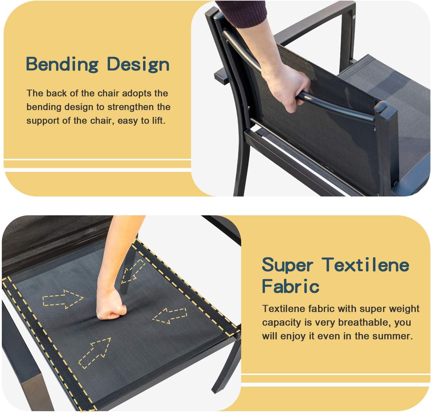 Shintenchi 3 Pieces Patio Bistro Sets, Outdoor Textilene Fabric Conversation Bistro Set, Textilene Fabric Front Porch Chairs Small Patio Furniture Set with Table for Lawn,Garden,Balcony (Black)