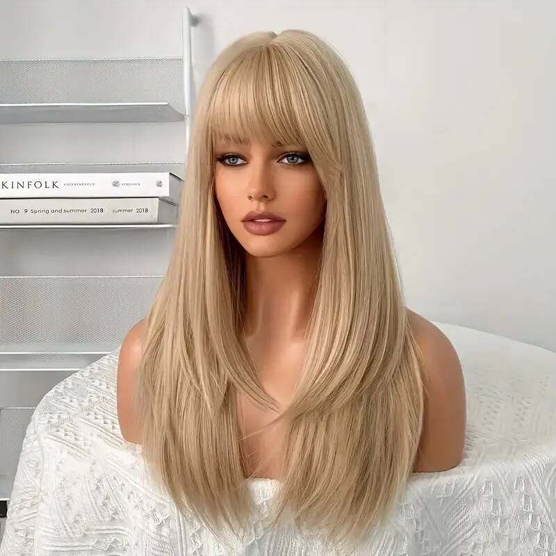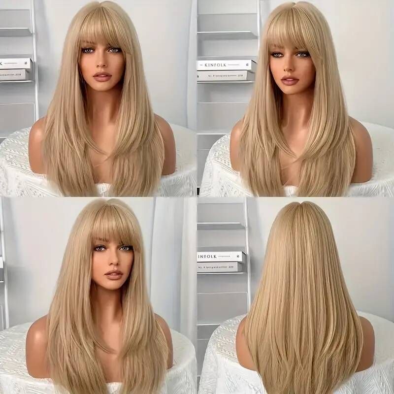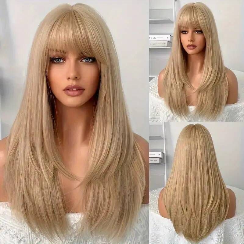 Layered Cut Straight Hair Lace Front Wig with Bangs