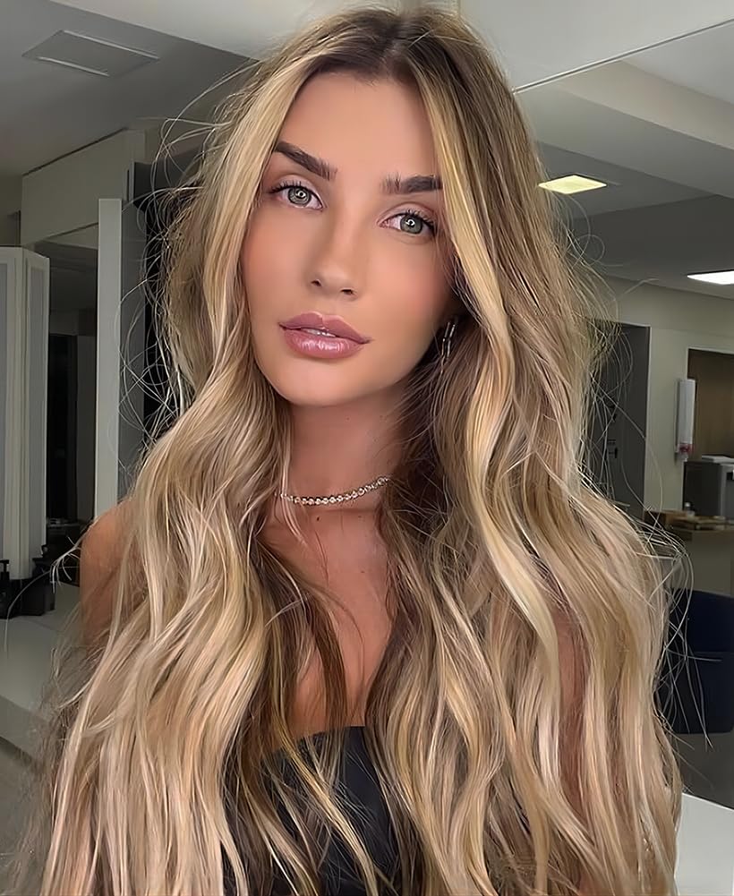 #27/60 Clip Hair Extensions(Honey Blonde Balayage Platinum Blonde Highlights)