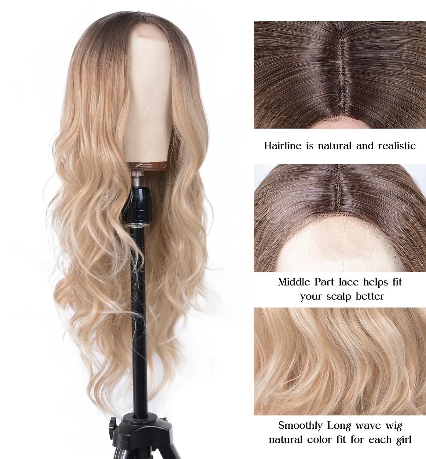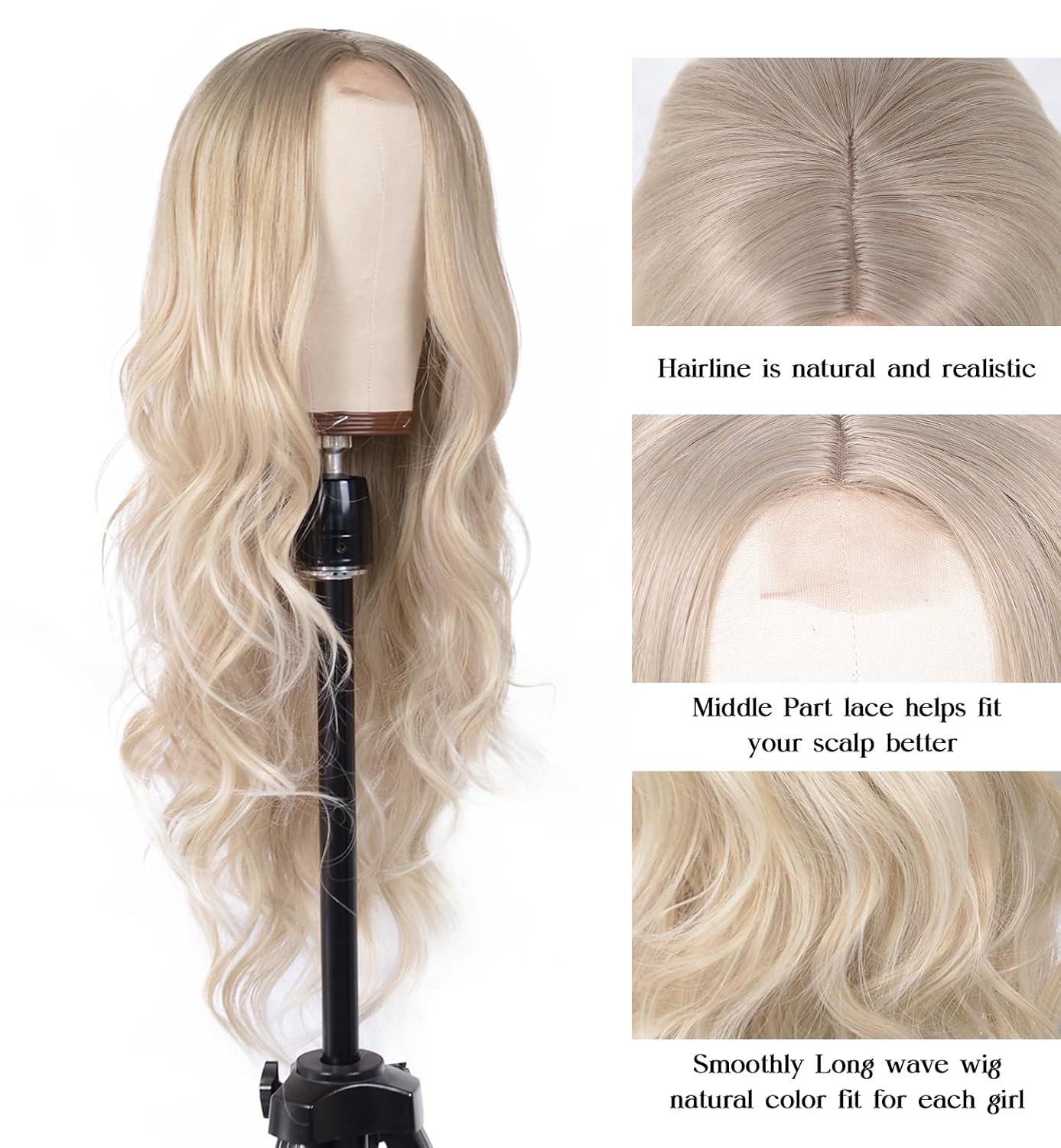 Mixed Blonde Long Wavy Wig 26 Inch Heat Resistant Synthetic Wig
