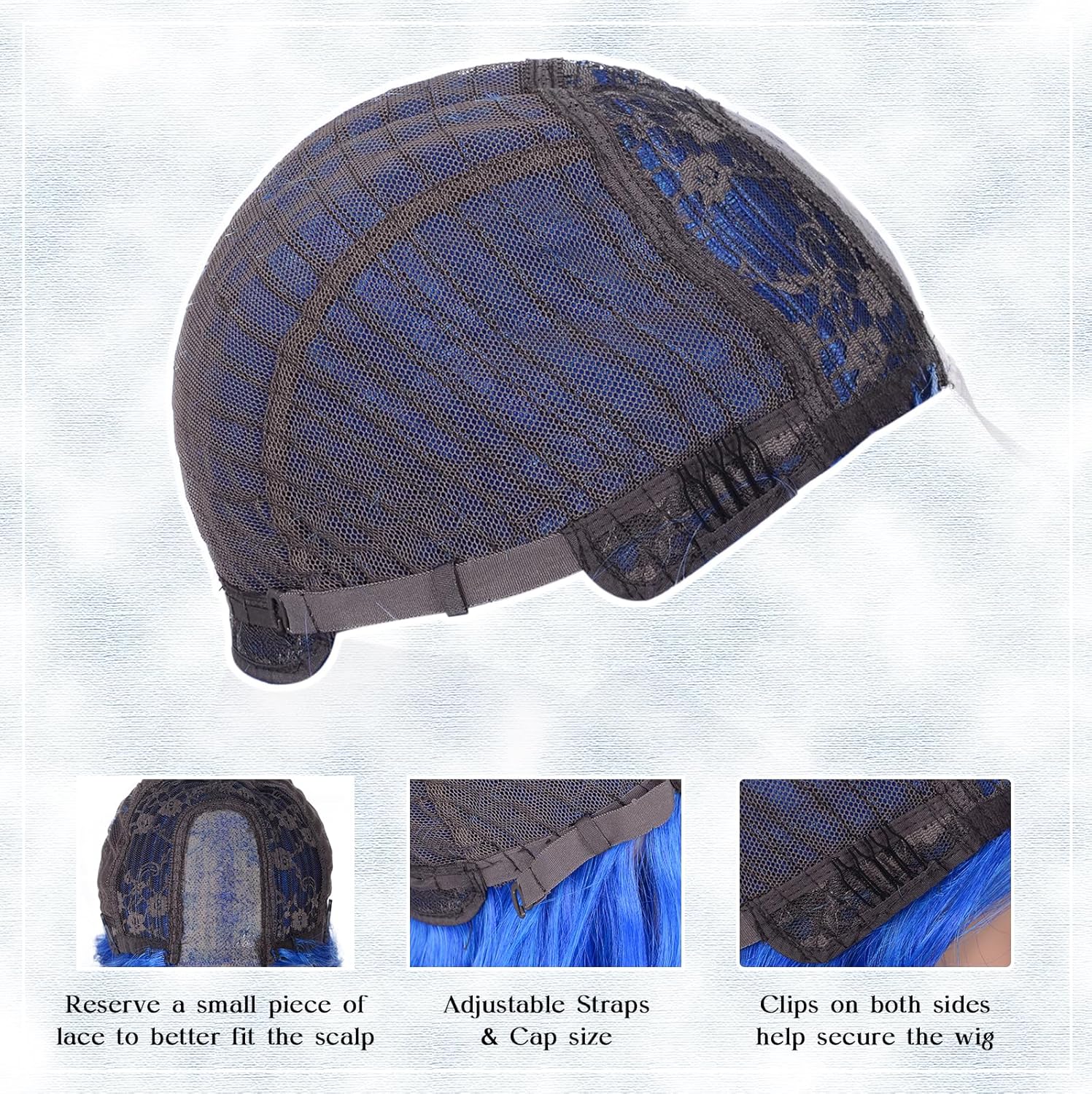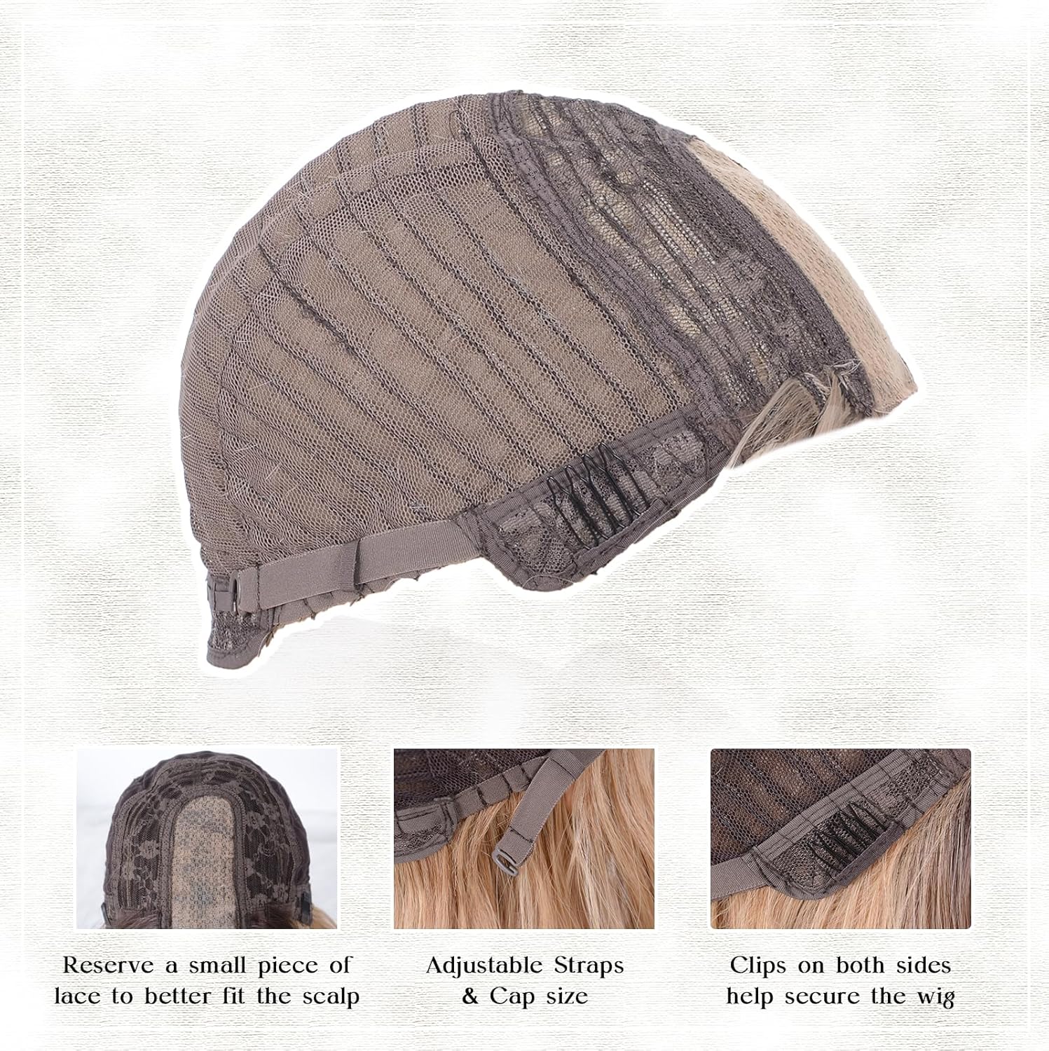 Brown Highlights Short Wavy Curly Bob Wig 14 Inch Synthetic Wig